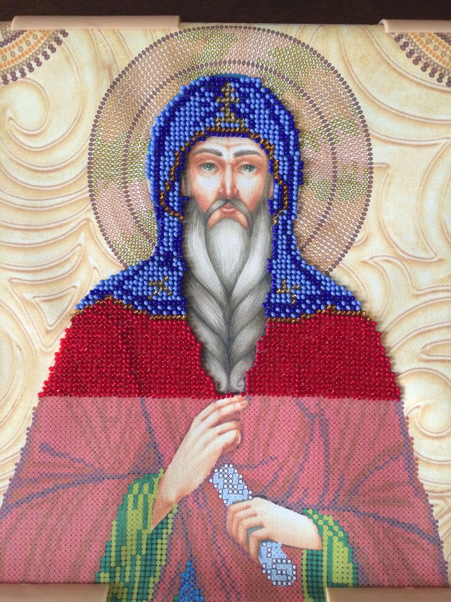 8 июля 2016 Всем доброго дня сутокмилые рукодельницы!!! Покажу вам небольшой отчёт , особо нечем похвастаться. Небольшие продвижения иконы "Св. Геннадий Костромской" от Абрис- Арт. было и стало. В основно вышивала 3 мя цветами это красные оттеночки. Вчера добралась и до зеленого бисера. Цвета переливаются здорово, на фото этого не видать. А также заключительные штрихи от Panna "Новогоднее гуляние" вот такая получилось красота!!! Все времени ни как не было довышивать последние бисеринки и французики. Девочки не судите строго французики у меня конечно не фонтан получились, но как то так!!! на днях отдала работу в багет так что жду оформленную работу!!! Всем спасибо кто посмотрел отчётик !!!! olkin0107, Камма80, Алёна Дьяченко и 8 других сказали спасибо Поделиться сообщением Ссылка на сообщение