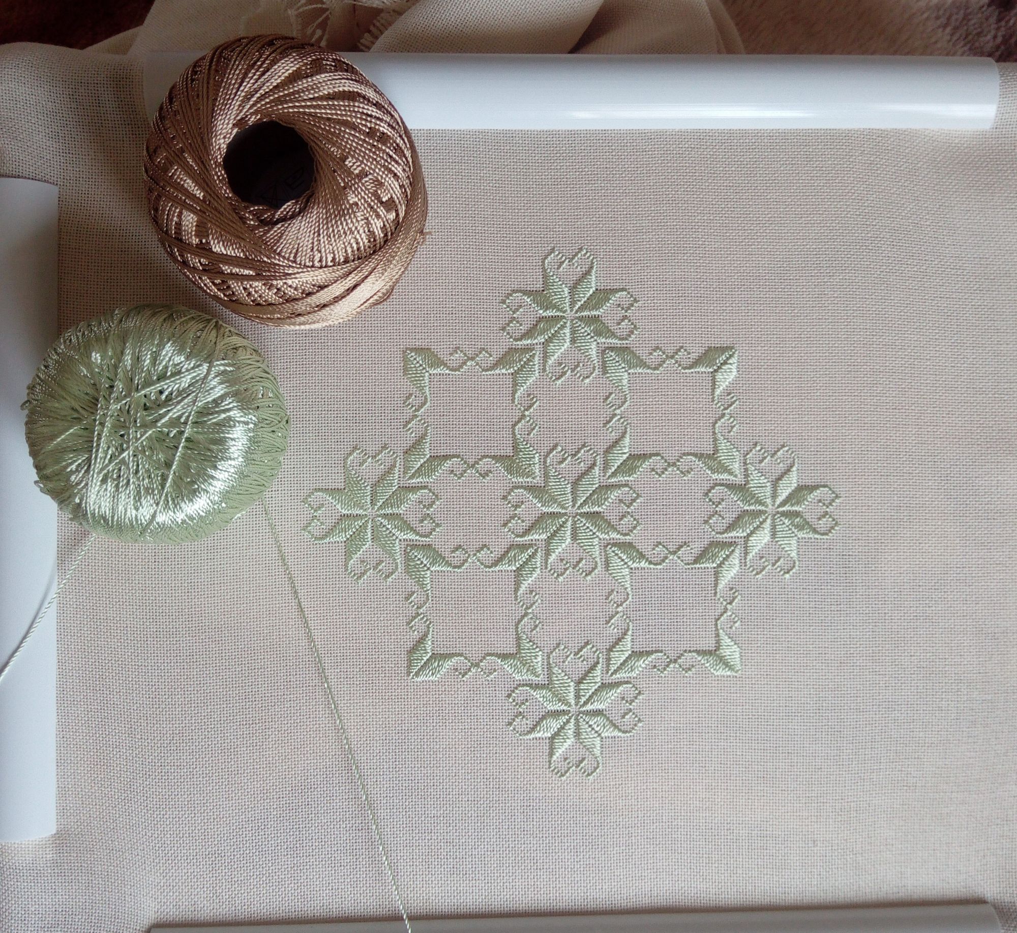 19 сентября 2017 В 12.09.2017 в 16:03, Mizeri сказал: Ольга, какой цвет нежный! А как все аккуратно, как блестит! Очень красиво получается, а скорость - это не главное! Спасибо, Маша! Да уж, скорость, конечно, не главное. Но что-то этот процесс у меня стабильно неправильно заколдованный получается. Распускаю километрами. Ни один элемент не обходится без этого. Да еще и ошибочка поначалу вышла, вот и не сходился периметр. На сегодня пыхтя, обливаясь потом и слезами вышила вот столько. Подходящего голубого не нашлось для красивостей. Домашние единогласно проголосовали за розовый. Думаю, делать ли решетку внутри блоков или так оставить? Mizeri, Г@лина, mamatata и 8 других сказали спасибо Поделиться сообщением Ссылка на сообщение