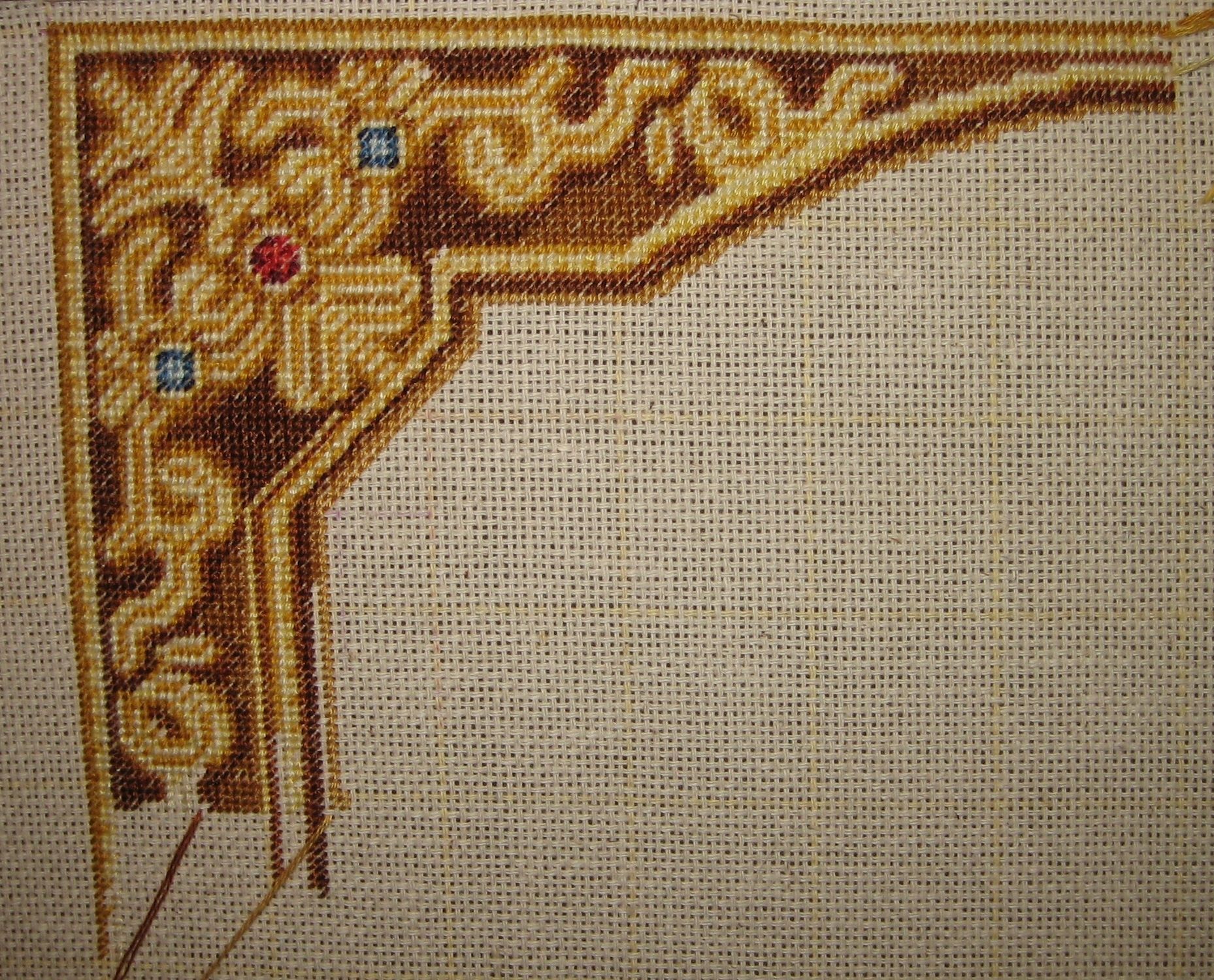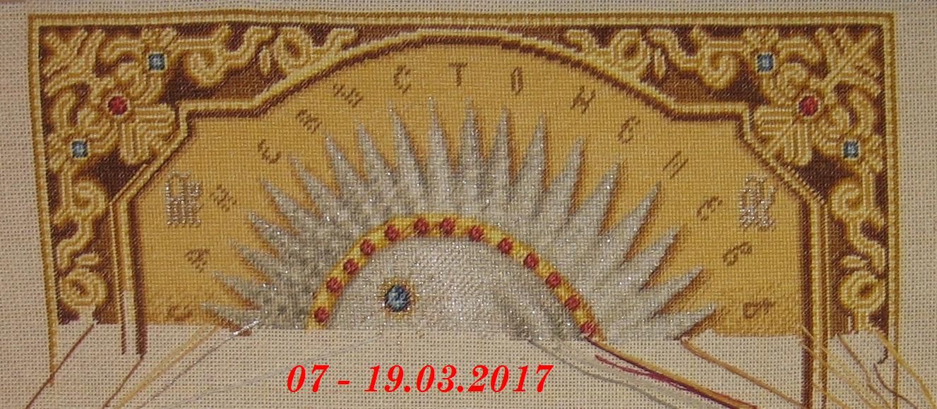 22 марта 2017 Людмила, у меня столько впечатлений от вышивки гобеленовым стежком, я же боялась начинать не знаю, как!))) и первое время фоткала чуть-ли не каждый фрагмент отшитого.. Петиты "пошли" сразу, полукрестики даже не просятся. Но больше всего я сначала "парилась" по поводу изнанки. Конечно, я рассматривала изнанки гобеленов, которые мне попадались на разных форумах, а когда до своей дошла.. Представляете, когда сделала первые стежки и перевернула, то сначала подумала, что я неправльно шью - мне изнаночные "жгутики" понравились больше, чем стежки на лицевой стороне. Вот они, первые: на "графике" оклада уже пошли протяжки(( - а когда дошла до нимба, то пыталсь шить парковкой, в итоге, вроде и ниток одного цвета рядом несколько, но на изнанке протяжки стали длиннее и, уходя в одну сторону, приходилось за ненадобностью убирать ненужную нитку, а , значит, появлялись лишние закрепки начала и конца ниток. Вот "лицо" и почти махровая изнанка нимба: В общем, со стереометрией в вишивке у меня никак и вернулясь я к вышивке по цветам: какая разница, что там на изнанке, её после меня только багетчик видит, а выделываться с идеальной - так никакого удовольствия от вышивки не будет)). А вот и фото 1/4 части, это было в воскресенье вечером: 17 часов назад, ЛюдмилаЕр сказал: ну, про скорость уже молчу... Кстати, о сокрости. Я бы не сказала, что вышивается быстрее, чем крестиком. На самом деле работа небольшая, я ещё не замеряла вышитую шчасть, но заявлено всего 27х36 см, т.е. на фото примерно - 27х9 см, т.е. по "площади" вышито мало. А вот в петитах это 240 х 80, тогда, да много, 240 крестиков я бы вышивала ого, сколько!)) Отдельная "песня"про одиночки в этой работе. На нимбе их несметное количество!)) Это песчинки из 10 - 12 цветов (надо мне всё-таки посчитать) серо-голубого-белого-оливкового (даже этот цвет в 2 оттенках) + серебристый металлик (и даже нити золотого металика вокруг украшения) рассыпаны в хаотичном порядке. Kustom Krafts с его бесконечными одиночками на этом фоне даже "рядом не стоял)), после этого нимба на КК вообще отдыхать можно! ВСЕ фото - НЕ ДЛЯ процесса! FEDORMaзиус, Selinta, ЛАДОМИРА и 6 других сказали спасибо Поделиться сообщением Ссылка на сообщение