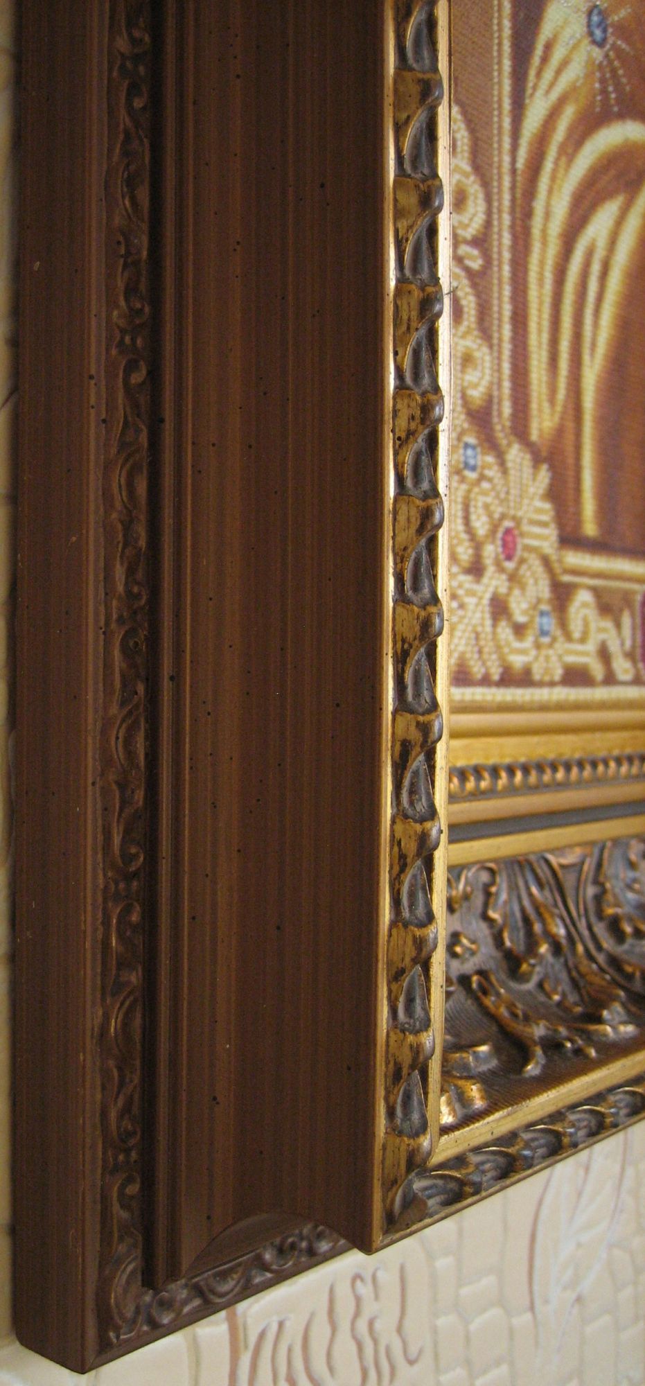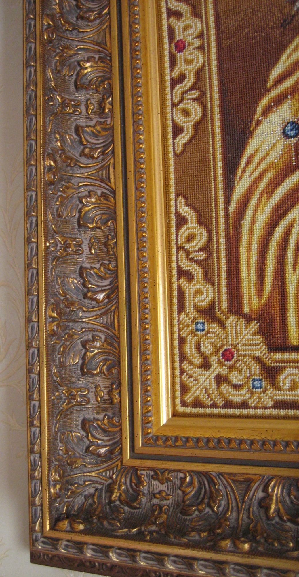23 мая 2017 Всем-всем доброго дня!!! Как и обещала, сделала фото иконы у себя дома. Удивительно, но впервые все штук 35-40 снимков с разных ракурсов и во всех комнатах, и даже там с разных точек, получились удачными, хотя все вышивки на этих местах и фоткаю, но всегда или вспышка отражается, или свет из окон плюс моё отражение, или фото затемнённые (или вообще всё это вместе), а теперь у меня другой выбор - какое одно выложить в альбом?)) Покажу всё подряд, начиная с упаковки (уж очень она мне нравится в этой багетке, оформляю там третью работу. Поскольку мне приходится возить в машине не только вышивку, но и двух собак, их немаленькое приданое + свои сумки, и каждый раз приходилось упаковывать вышивки в покрывало, картон или коробку и т.п., а из этой мастерской работа уже готова к транспортировке), снимки иконы со вспышкой и без. Сняла поближе багет, он российский, стекло, как всегда, музейное. Принимайте: kreolka, Lenara, Selinta и 6 других сказали спасибо Поделиться сообщением Ссылка на сообщение