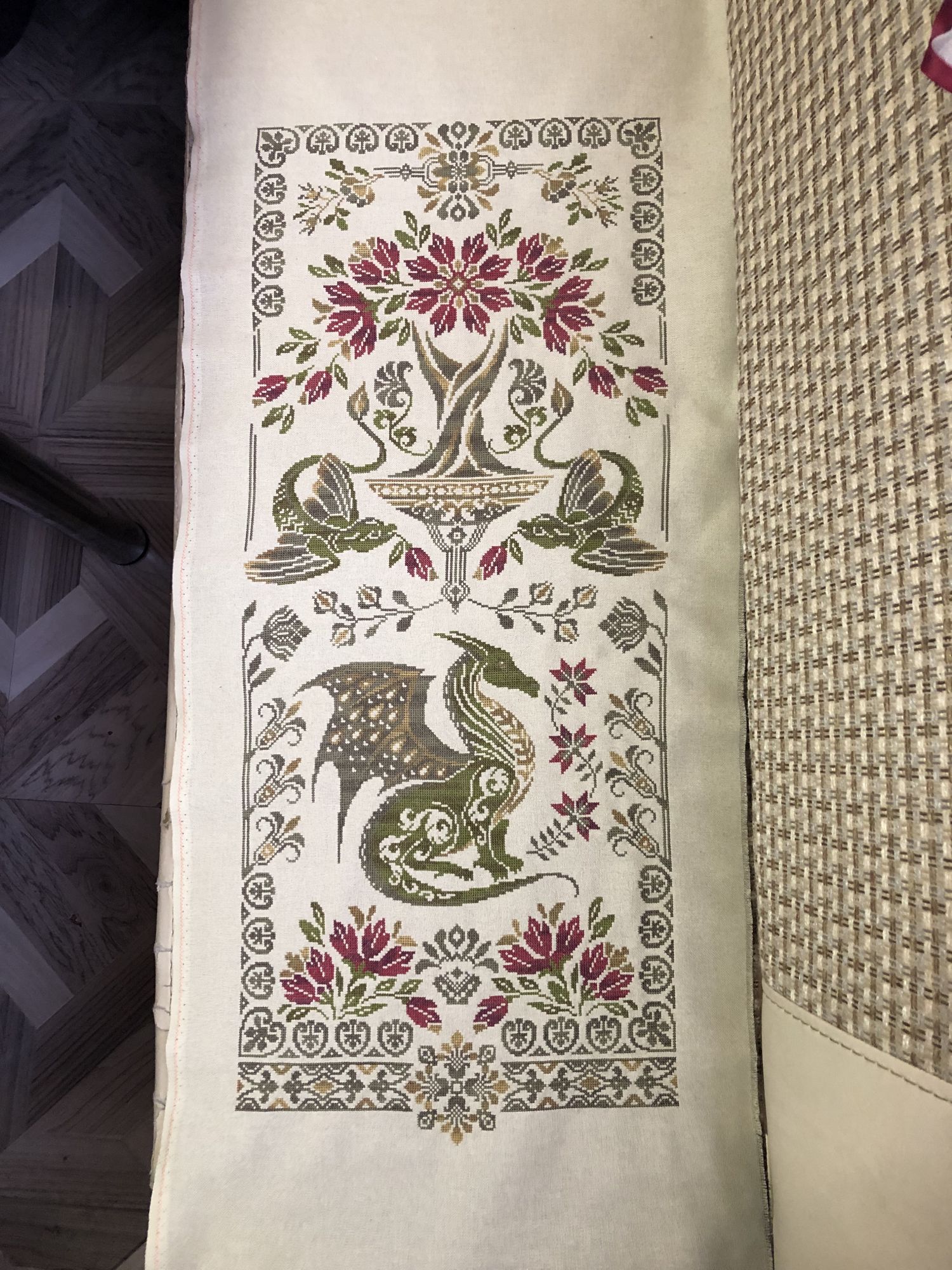 1 февраля 2024 Моим немногочисленным гостям большой привет ))). Начался февраль, а значит китайский Новый год не за горами. Пора и отчет держать. Начнём с закрытия гайки. Мой дракон все . Собиралась с силами две недели и закончила за три дня. мой красавчик, моя прелесть. Чудесный дизайн, очень интересно вышивать, не надоедает. Говорить особого нечего - моя любовь Совиный лес ))). Нет, конечно, если задаться целью, можно покапризничать на счет ниток: один моток серых я забраковала - узлы крутились нещадно. Переход цвета в желтых нитках можно было сделать другим, желтого побольше, но это уже дело вкуса ))) и настроения. А мне все нравится. Для понимания размера Сережка позировал с простынкой , ну и не могу не похвастаться изнанкой . Горжусь собой ))). Чуть не опоздала по вполне объяснимой причине. Решила поковырять домик, поэтому открываем гаечку. И «сея пучина поглотила ея» ))) давненько я не вышивала таким количеством цветов. Просто ужас и кошмар. Три крестика - новый цвет, семь крестиков - опять меняем нитку. Не понятно мне это, зачем? У ДИМ пуансетия из трех цветов и совершенно живая. Нет, не поймите меня не правильно, очень красиво получается, но зачем такие трудности? Хотя вышиваю спокойно, раздражения, кроме органайзера, нет. Вот с ним совсем неудобно, не понимаю, за что столько хвалебных отзывов. Но когда нас это останавливало ))). За неделю прибавка и все равно дыры не все зашила, пока цвет нужный не появился ))). Правая сторона без трех крестиков до края. Работа будет крошечная ))). Кастом тоже ковыряю. Сейчас так . Бросила небо, там два цвета, которые мне не нравятся. Теперь ковыряю пятнышки ). Вот и все мои успехи, других пока нет. Юнона1960, Lorans, Хозяйка смешных зверей и 5 других сказали спасибо Поделиться сообщением Ссылка на сообщение