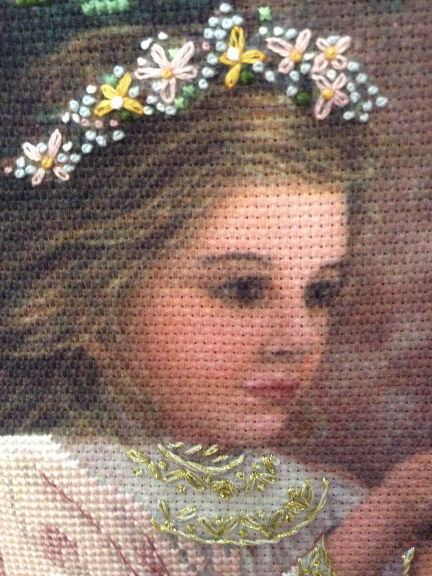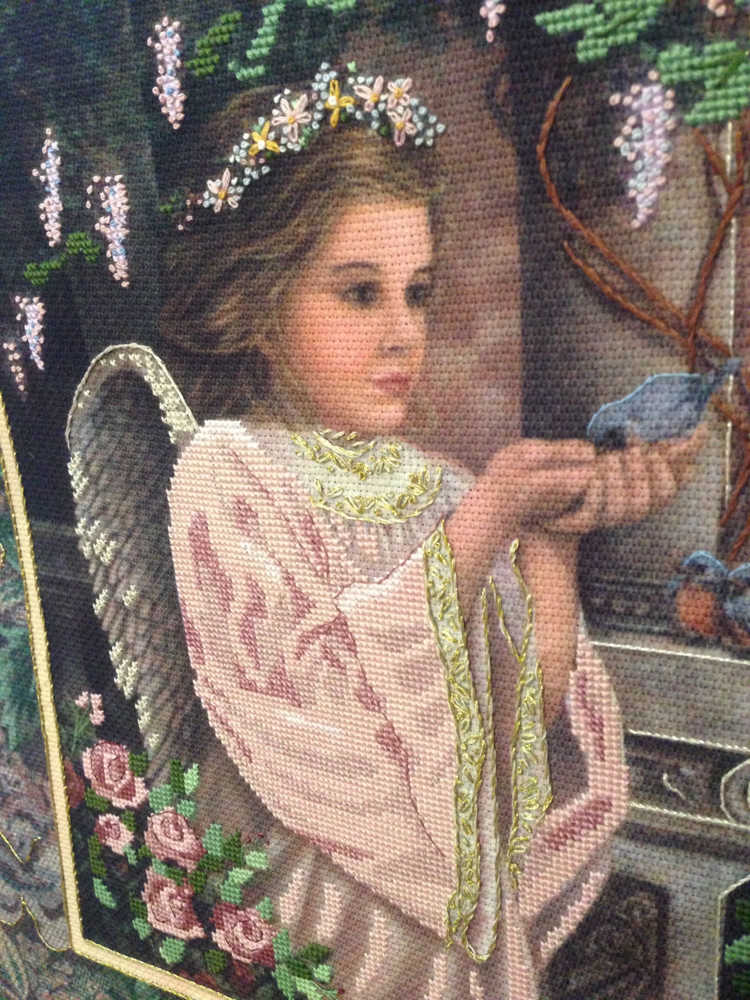 17 апреля 2016 Девочки, всем привет! Вот и я наработала на отчет. Основной мой процесс - Ангел - завершён. Не знаю, почему меня так пробило на него, но трудилась я над ним с большим желанием, удовольствием и интересом. Все крестики выполняются в три нити, немного фрузелков, бэка, вагон стебельчатого шва и лейзи-дейзи. Все понравилось, всем довольна, хоть и подвела немного рамка внутри работы, но она закончилась и вроде не очень криво получилось, смотрите сами Ну и как же без весны. Здесь совсем небольшие продвижения, но фрагмент закончен, а значит есть, что показать . Вырастила какую-то колючку, на которую усадила милейшую бабочку. Ну и с преображением . Пока все. Жекочка, Olka, Selinta и 5 других сказали спасибо Поделиться сообщением Ссылка на сообщение