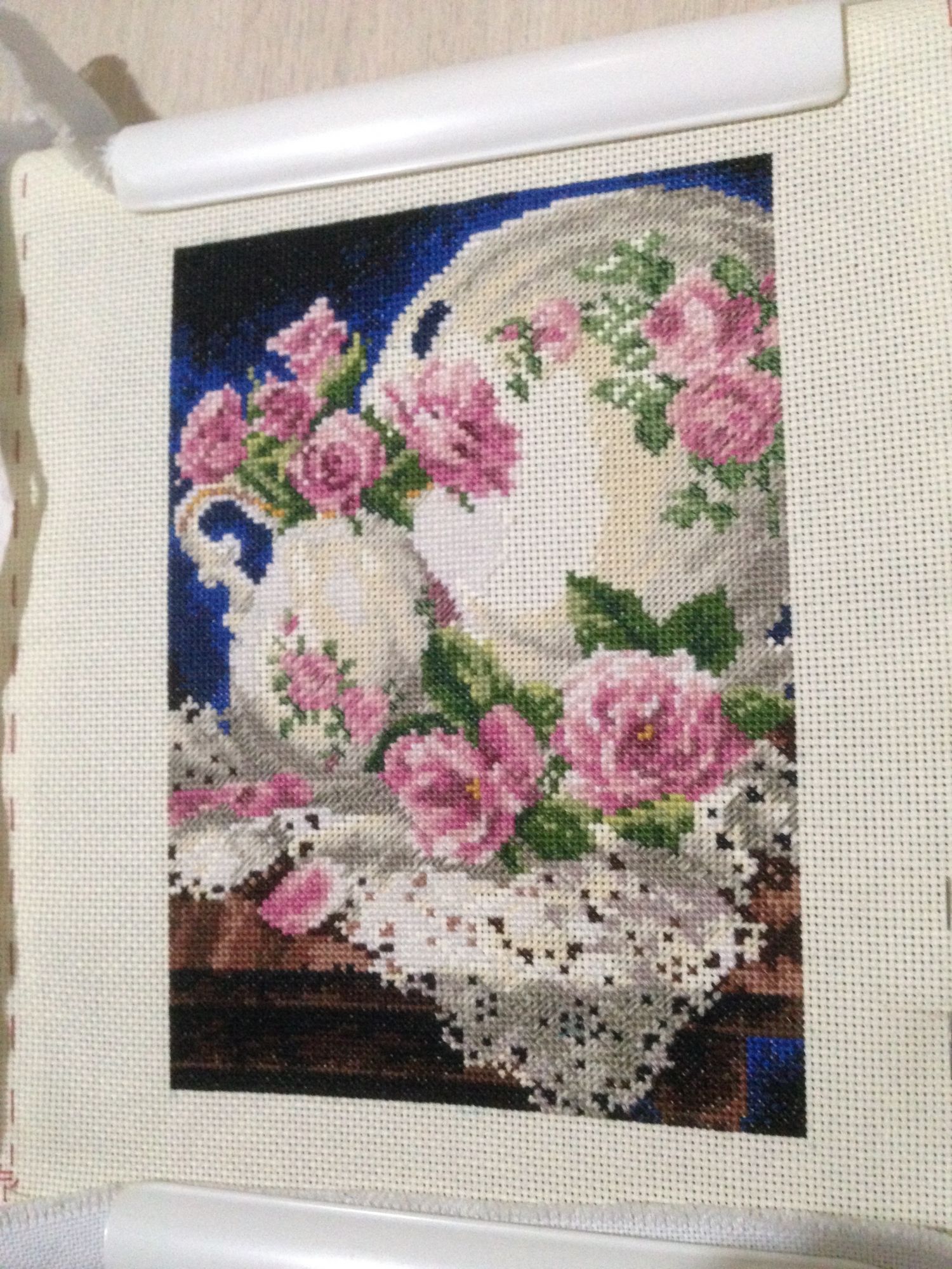 15 июня 2018 Девочки, а я к вам с неожиданным отчётом. Собирая на дачу возможные процессы, увидела свою миниатюрку с розами и фарфором. Решила, что её таскать, дошью здесь. И дошила . Дальше бэк, здесь он в семи цветах, потом выкладная нить в двух цветах, которую я честно выложила. Ну и два цвета фрузелков, белый пришлось перешить, т.к. ошиблась в количестве нитей. Ну и все . Немножко фрагментов . Вот так вдруг я позеленила одну гаечку ))). Очень довольна собой. А ещё у меня радость. Нашла один из так мною полюбившихся наборов Терезы . Изучила схему, количество ниток. Уж не знаю сколько там оттенков, но по значкам - 30 чистых цветов и 59!!! блэндов. Чую будет очень красиво, но все же чуть позже. titania, Наталья2013, KoViVi и 13 других сказали спасибо Поделиться сообщением Ссылка на сообщение