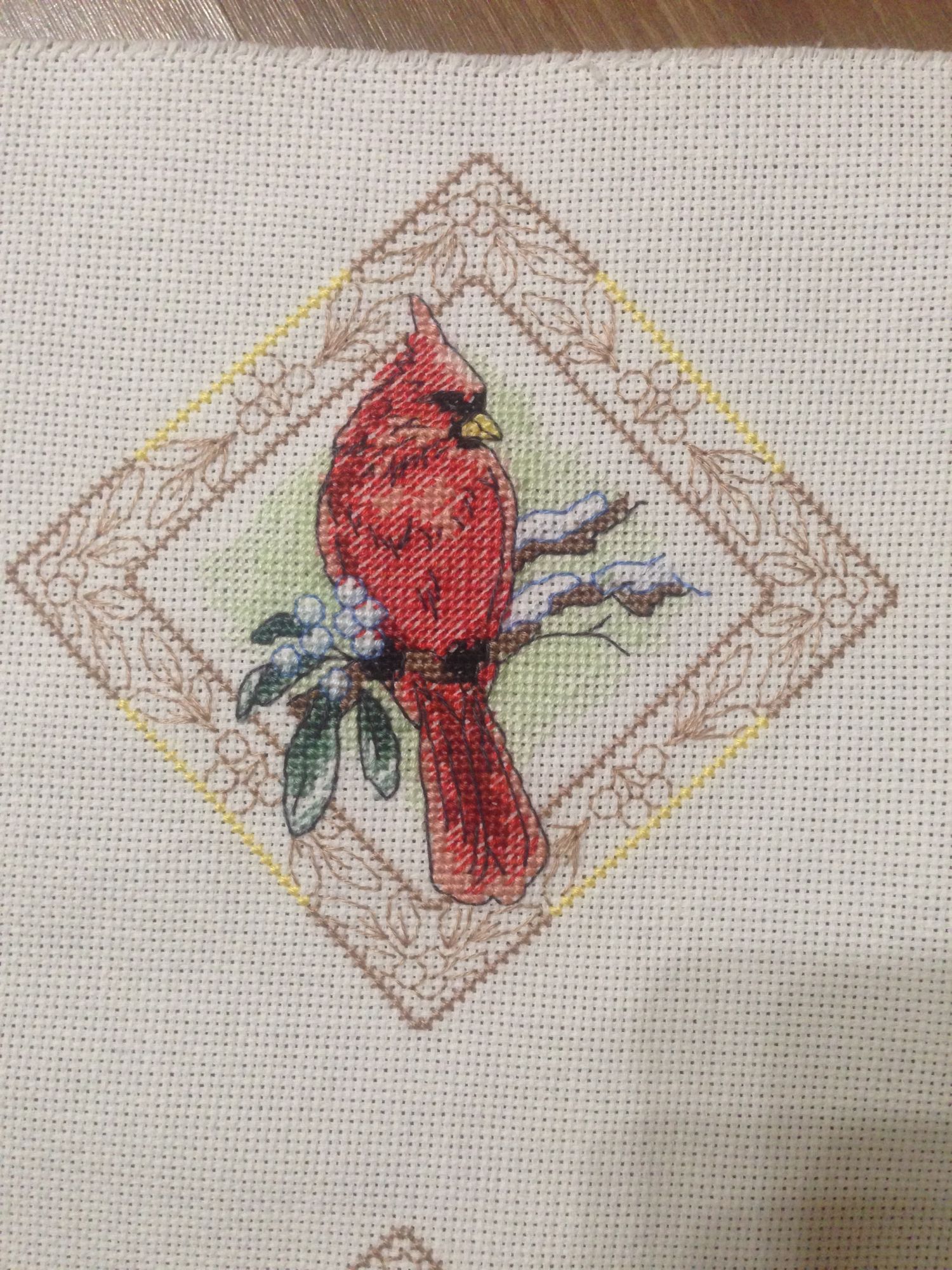 11 ноября 2018 Девочки, привет. Ребенки смотрят мультик, а я к вам с отчётом. Волк... Совсем небольшое продвижение, но я и этому рада. Вышила небольшой уголок и теперь буду стремиться объединять две части . И не много того фона осталось, но осенняя хандра, выход в пятницу на работу и всякие мелкие неприятности окончательно отбили охоту его вышивать. Пока не убираю, но и не вышиваю его. Зато продвинулась моя "старшая" птичка , закончила крыло и тушку ))). Результат по-прежнему не восхищает, а процесс нравится. Причём тело очень нравится, а перья на крыле нет ))). Совершенно ожидаемо закончились новогодние птахи, точнее крестиковая часть. , эту птичку не смогла опознать в интернете, какая то капризная у меня вышла, но симпатичная. Ну и мой любимчик - кардинал . И все мои птахи . Поплавали, погладились, а настроения украшать не появилось, так что финал будет позже, когда придёт вдохновение. Надеюсь, что в этом году ))). Ну и чтобы не отставать от детей, которые начали рисовать открытки, делать мелкие сувениры подружкам к новому году, я решила начать очередные игрушки ))). Встречайте Dimensions 8704 "Beaded elegance ornaments" . Набор 2003 года, канва 18, цвет ivory, бусины, опять хлипкий белый фетр на заднюю сторону. ДИМ прекрасен, как всегда. Пока только ниточки разобрала , но уложу детей и... ничто меня не остановит ))). Новостей особо никаких нет, но у меня есть позитивчик, который скрасит весь мой тоскливый отчёт. Прогремел Хэллоуин. Побывали мы и сладкой тыковкой , и дивным человеком-пауком , который очень любит котиков , ну и героем Бэтменом, который прятался так умело, что никто не мог найти . Пока все. Цыпа, elena_kostar, Наталья2013 и 13 других сказали спасибо Поделиться сообщением Ссылка на сообщение