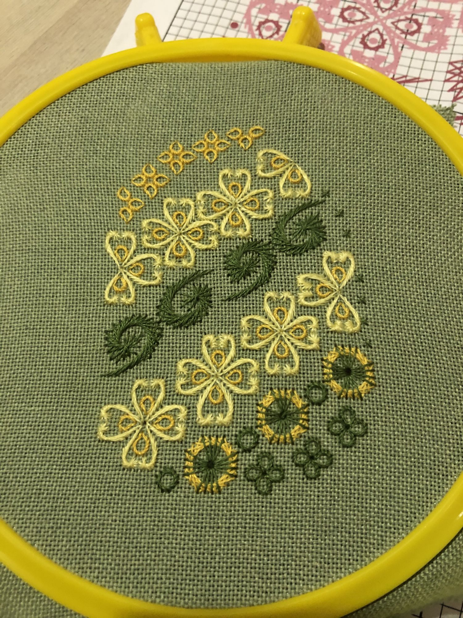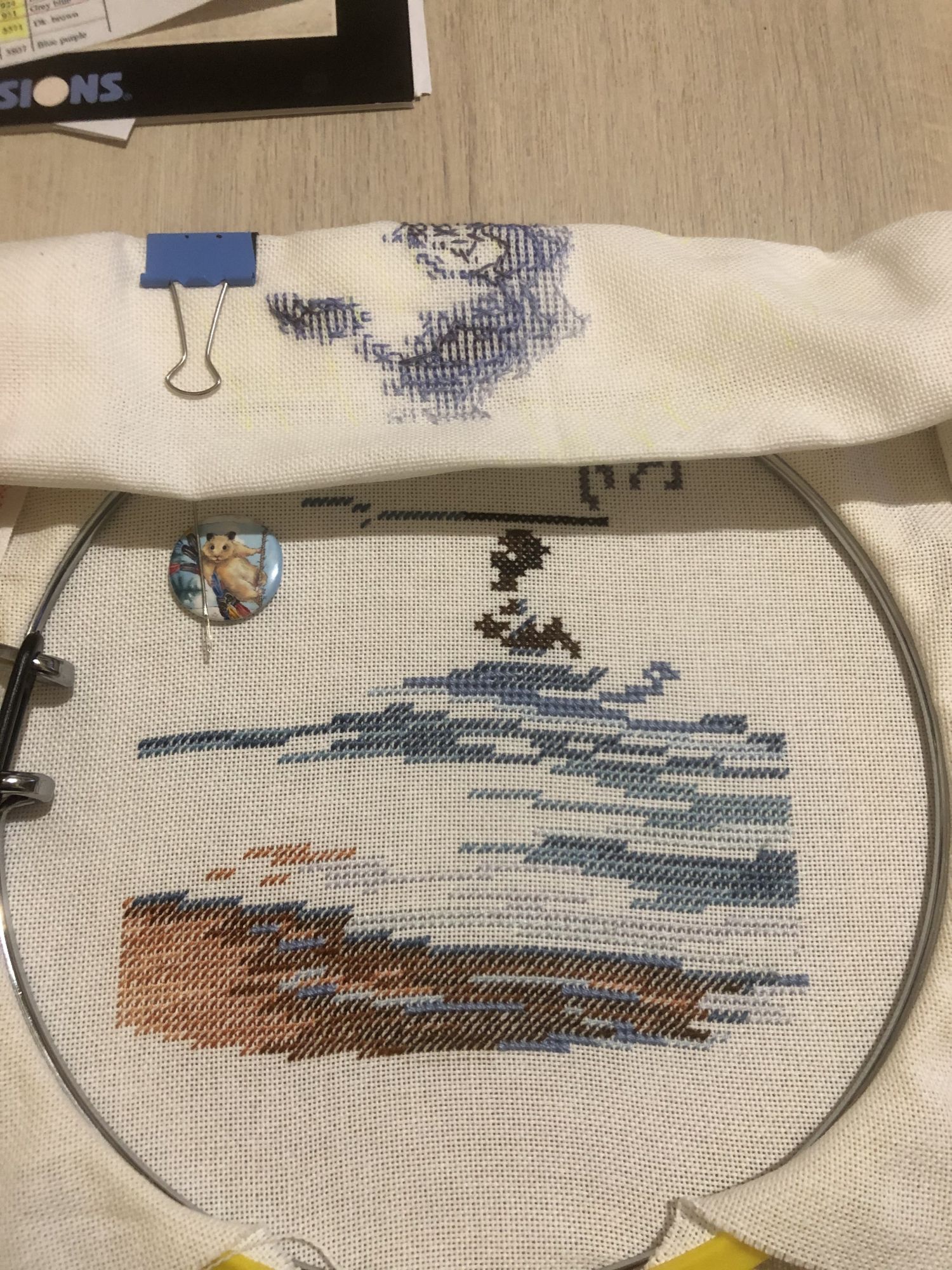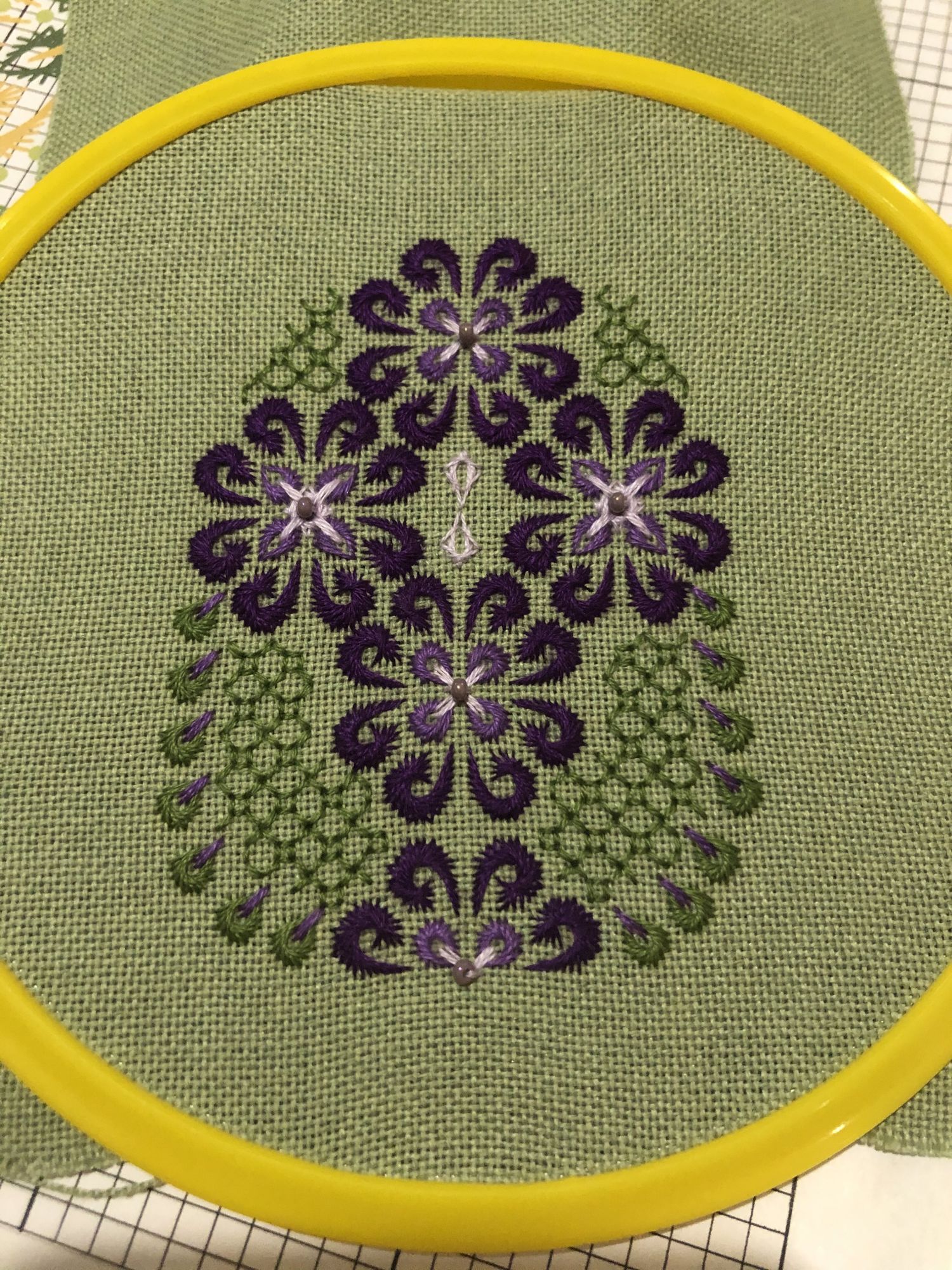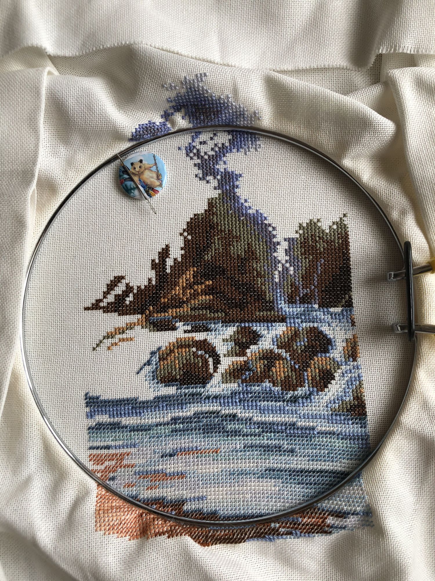 4 апреля 2020 Девочки, здравствуйте. Решила все же написать в моей теме, нужно как-то налаживать вышивальный процесс, возвращаться к отчетам, да просто к вышивке в постоянном режиме, потому что рукам делать что-то надо. ))) Итак, начнём. К панельке я так и не вернулась, зато быстро влипла в авантюрку хардангером . На этом остановилась, а ведь осталось на неделю работы, но длинные новогодние праздники сбили настрой и вернуть его никак не получается ). Но в праздники немного повыбивала крестиком . Теперь у меня две заготовки к игрушечкам. Не обошлось и без начинаний, не закончив лягушку от милл-хилов, начала сову, причём в несвойственной манере - сразу с бисером . Что меня от неё отвлекло, сейчас уже не вспомню ))), но отвлекло так, что не могу ее найти, вместе с лягушкой. Потом началось обострение хомякоза , пополнила библиотеку и запас тканей, а вместе с этим начала новый процесс. Итак: буклет ДИМ «Дикая волна» . Не организовав работу, просто дождавшись ниточек, запялив первую попавшуюся ткань начала свою волну . Сейчас мы в таком виде, не отшито и 1/6, но работа очень нравится. Единственное, что поторопившись не обратила внимание на каунт, теперь диаметр моей работы будет составлять 40 см ))). Ну а потом начались известные вам события и мой мозг опять встал в позу: все не то, нужно что-то ещё ))). Так появилась идея с шовчиками, что-то быстрое, новое и красивое ))), думала я ))). Вот что я имею, номер 1: , для понимания масштаба ))) и номер 2: . В планах ещё... три, четыре и пять, хотя схем куплено 12 ))). Вот и все мои вышивальные дела. В остальном все ровно, дети растут, родители здоровы, мы - престарелая молодежь - пашем и мечтаем, что не в пустоту ))). Надеюсь это мое появление заставит меня больше вышивать, общаться и наслаждаться ))). Zheneva, Helga5437, Selinta и 14 других сказали спасибо Поделиться сообщением Ссылка на сообщение