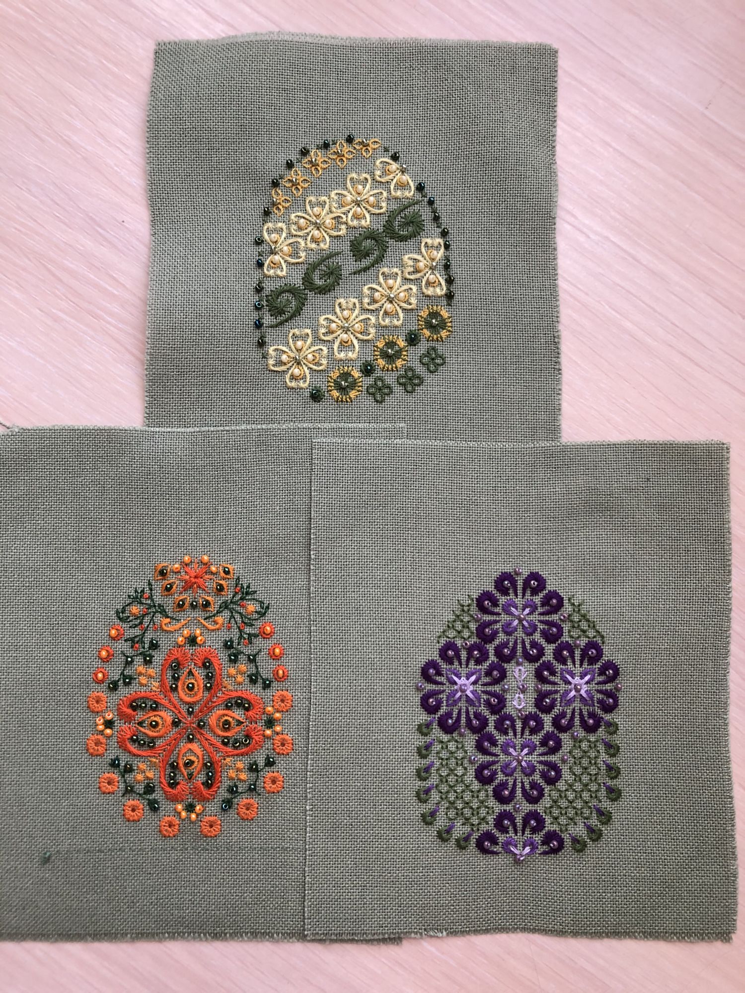 14 апреля 2020 Доброй всем ночи, вечера, дня, утра! Решила я не откладывать в долгий ящик свои достижения и порадовать вас своими «Фаберже»))). Сначала желтое: . Не знаю, где я промахнулась, но яйцо дало крен ))). Считала и пересчитывала, порола, порола, порола и опять считала и ничего. Посмотрела на образцы, там тоже кривенько, но мне удалось переплюнуть всех ))). Очень жаль, мне так нравится сочетание желтого с зелёным, такое весеннее. Очень милые цветочки-сердечки, но... Я и тянула, и разглаживала, а толку чуть. Пока оставлю как есть, может просто перешью с самого начала, а может оставлю, чтобы показывать, как быть не должно ))). Ну и третье в моем исполнении яйцо случилось сразу . Неожиданно для меня перешло в разряд любимчиков, хотя оранжевое все же самое дорогое для меня. Дочки сказали, что надо сделать пять таких, только разного цвета ))). Легкая и оригинальная идея - цветочный крест ))). Не моя эта тема, но очень я люблю всякий пасхальный антураж. Ну и три яйца вместе . Оформить без вылазки в магазин не получается. Все мои тряпочки на новогоднюю тематику, а те, что можно притянуть к Пасхе, очень сильно не попадают по оттенку. Потом нет никаких ленточек (для подвески), да и идея оформления меняется каждый день. Первоначально это должны были быть пинкипы, но потом мне захотелось сделать их мягкими и объемными. Если коротко: лежу в самоизоляции по направлению к мечте, придумываю велосипед ))). Пока все. Lenara, mamatata, Butterfly и 6 других сказали спасибо Поделиться сообщением Ссылка на сообщение