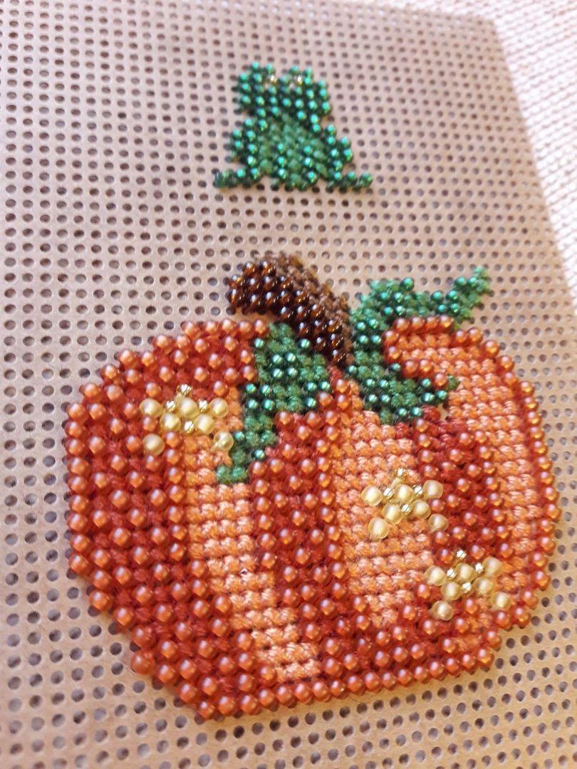29 октября 2018 Раз уж зашел разговор о брошах, покажу еще одну, которая только вчера закончена. На днях Ириша дала ссылочку на конкурс "тыквенных" работ. И тут настал час моего первого Милл Хилла, который терпеливо ждал своего часа года три, не меньше! В общем, за несколько часов эта тыковка-брошь была готова. Очень понравилось шить на перфорированной бумаге! Я в восторге, буду точно шить еще! Инструкция понятная, комплектация на высоте, а что еще нужно для удовольствия? Задник вырезала из кусочка зеленого фетра, булавочка для броши была в наборе. Mill Hill MHAH52. Star Pumpkin, 5,5х5, перфорированная бумага, счетный крест и бисер. Да, забыла сказать - лягушку я опознала только прочитав это слово в инструкции У всех нас, наверное, есть предпочтения в украшениях - кто-то кольца любит, кто-то цепочки-браслетики. А у меня с детства слабость к брошам и серьгам. Не скажу, что их огромное количество, и надеваю брошечки я не так часто как хотелось бы. Но любовь моя к ним не проходит с годами, и как видите, пополнения коллекции случаются оленек, malenta, ЛюдмилаЕр и 26 других сказали спасибо Поделиться сообщением Ссылка на сообщение