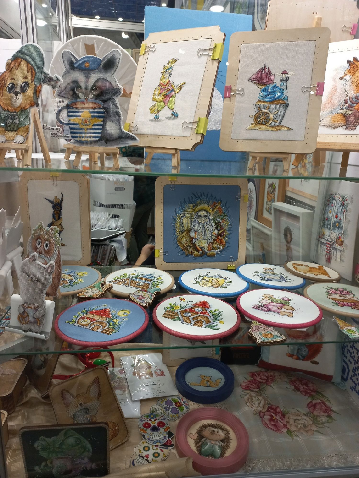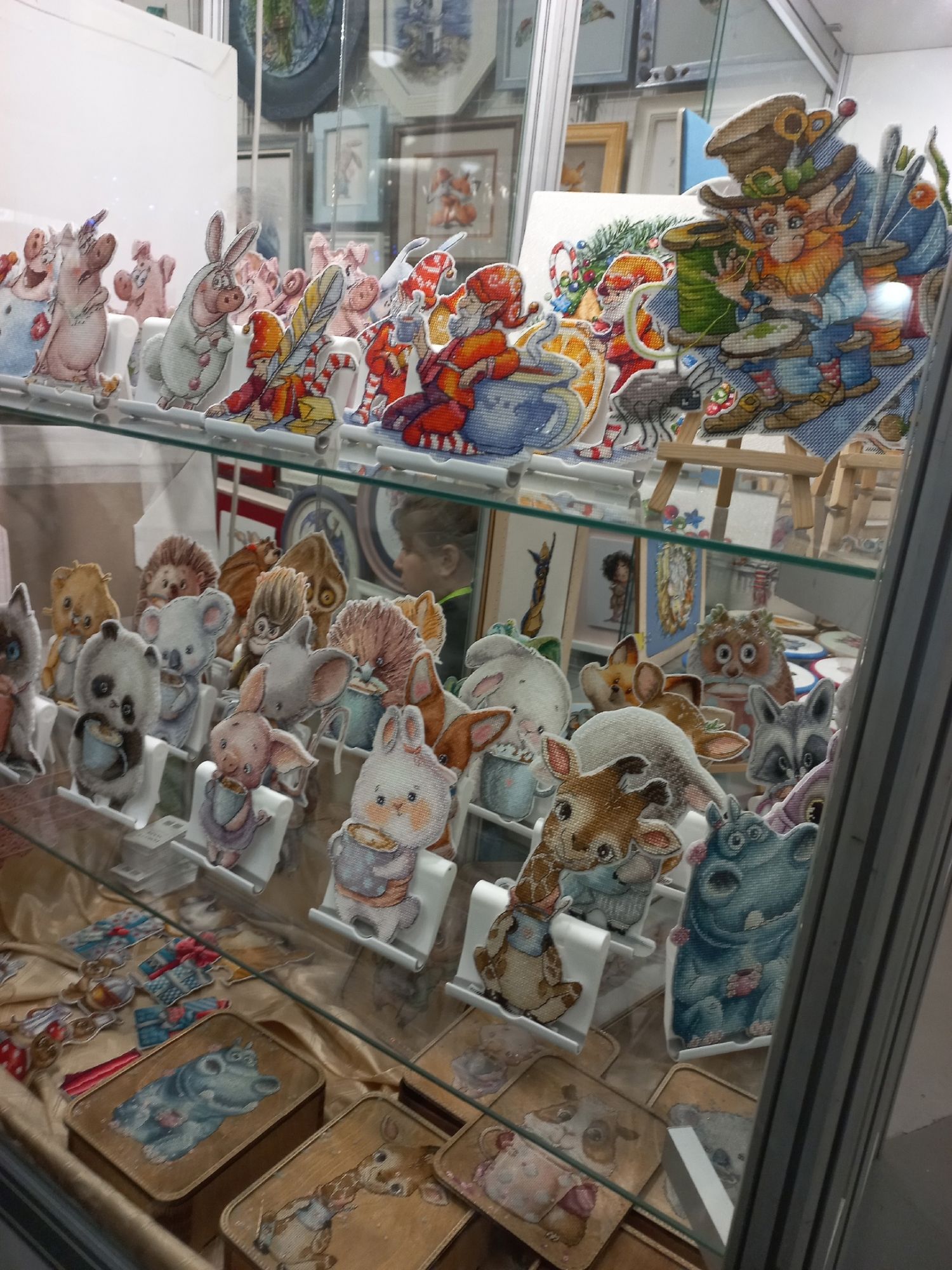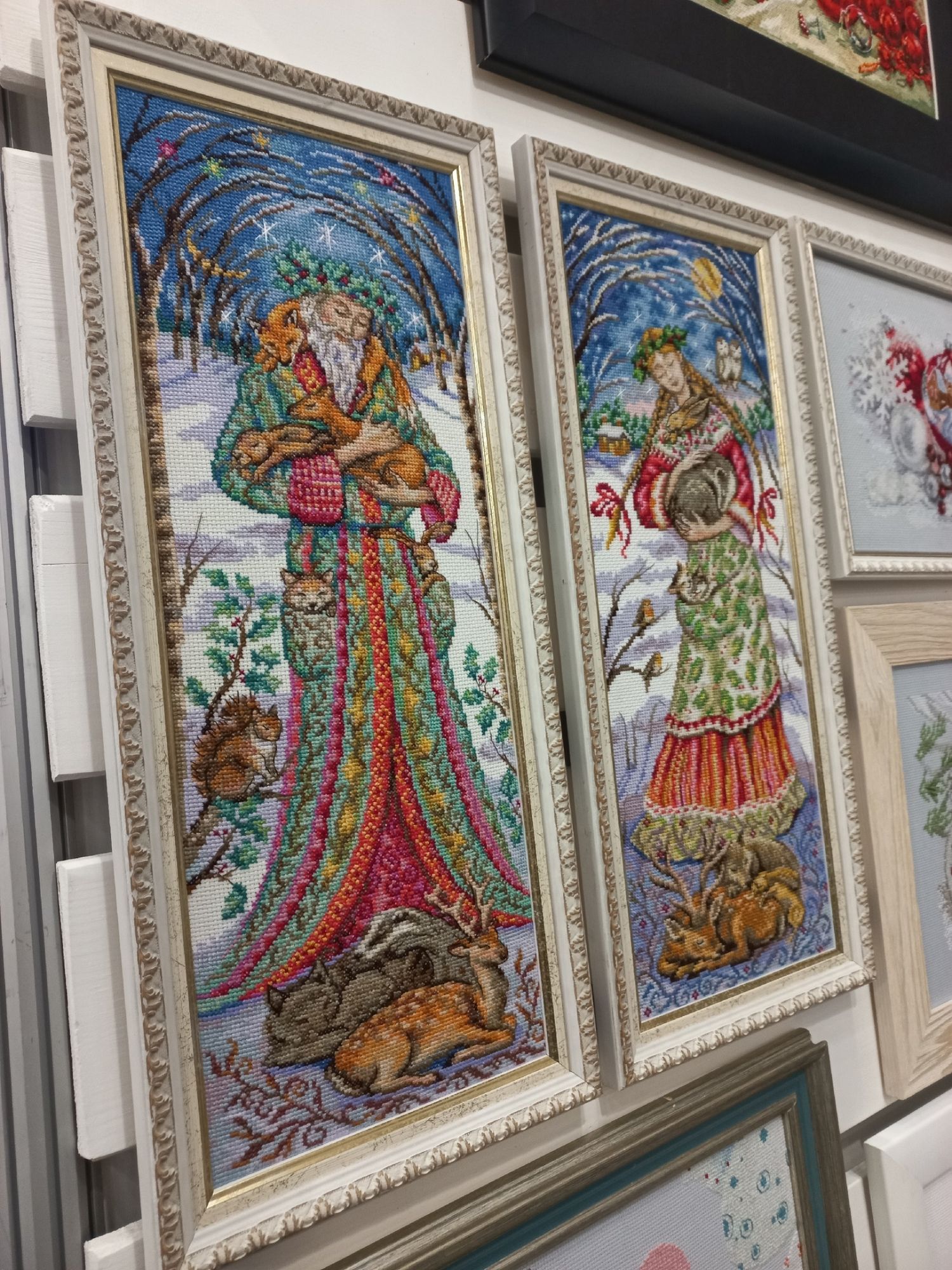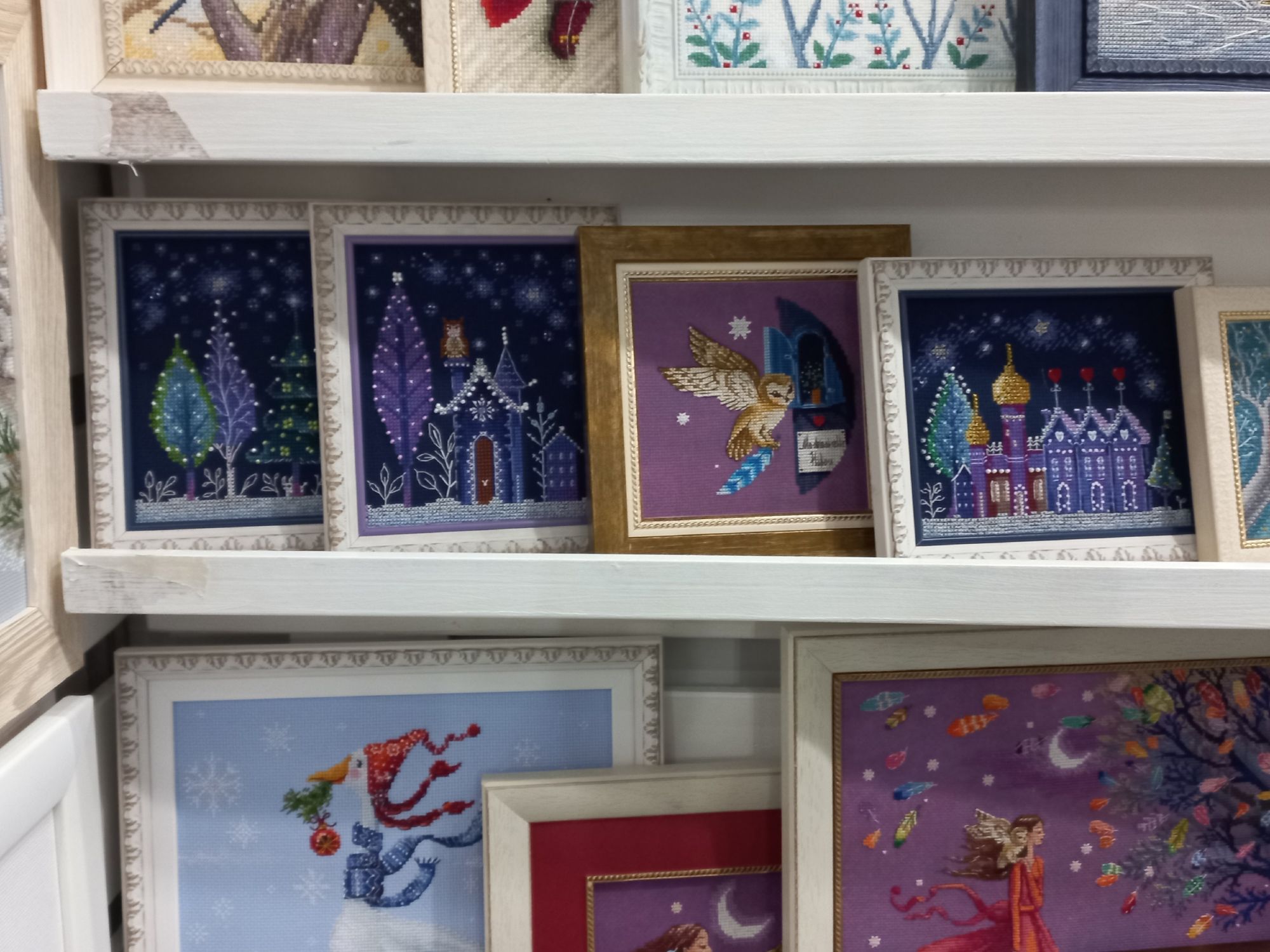 8 декабря 2023 Всем привет! Я сегодня выбралась на Формулу Рукоделия, очень давно там не была. На осеннюю который год не получается пойти, потому что Полина как раз в это время и заболевает. Поэтому я решила хотя бы на зимнюю попасть. Вышивальных фирм и дизайнеров было немного, в основном другие мастера были представлены. Фото мало, так как людей в ограниченном пространстве было довольно много и к некоторым стендам я даже со второго раза не смогла подойти. У представителя фирмы Неокрафт узнала интересующую меня информацию о магнитных держателях - вскоре они планируют выпустить несколько нейтральных вариантовНовогодние декорации Я с удовольствием побродила, полюбовалась и кое-что приобрела. Очень нужный мне отрез Кашеля именно того размера, что мне нужен, в единственном экземпляре ждал меня, керамическая брошь для Поли, симпатичные пуговки и асимметричные серьги, которые давно хотела. Рада, что выбралась, вдохновилась красотой. И я дошила терракотовый миник (Зеленим гаечку) было стало Оля @оленек, большое тебе спасибо за схемы к миникам! Рамочки я заказала сразу на два миника, померив размер на вышивке. Но после стирки размер дизайна уменьшился на 0,5 см, поэтому я по периметру еще ряд вышила, чтобы вписать в раму. С натяжкой справилась, стекло не ставила, мне пока так нравится. На этом пока все. Всем тепла, добра, здоровья и хорошего настроения! nogres, ЛАДОМИРА, танюша123 и 19 других сказали спасибо Поделиться сообщением Ссылка на сообщение
