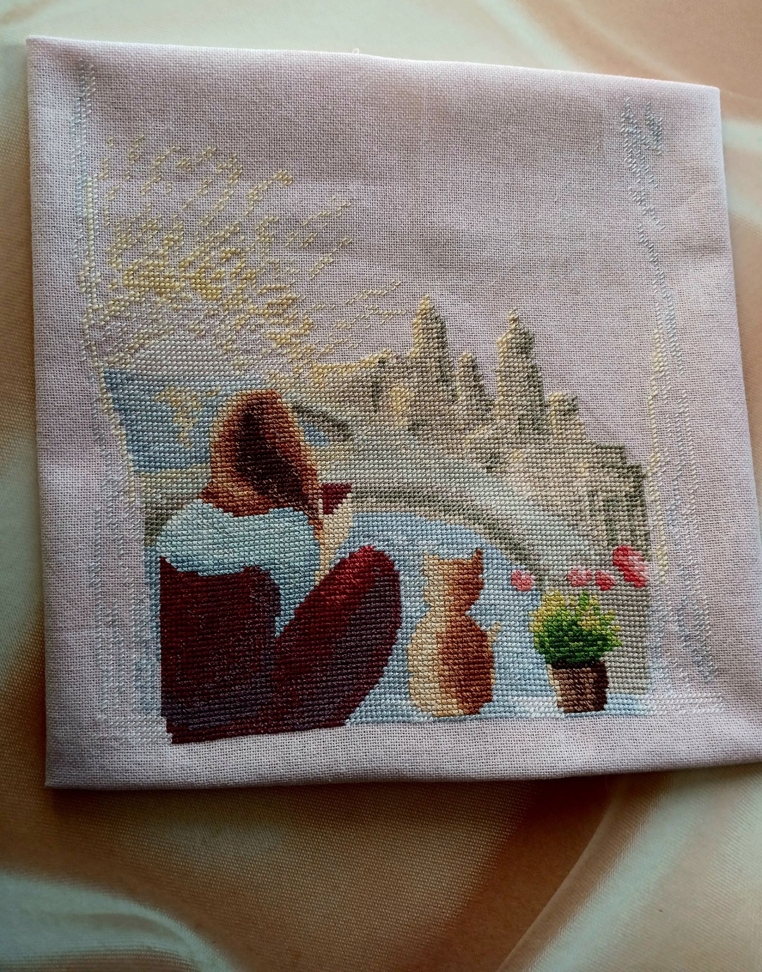 31 марта Всем привет. Пора выйти из зимней спячки и показать хоть немного из того, что удалось вышить. Магазин игрушек. Было стало. Начала его прошлой зимой, отложила, сейчас продолжаю, но не уверена, что завершу. В сезон не успеваю вышить, а со сменой погоды и картинки за окном и желание шить уходит. МП Студия. Манеки-неко, Беру котика редко в руки, но все же немного продвинула его. Было стало Наталья Плетенко, Рассвет холодного лета. Начинала вышивать этот сюжет в 2021 году. Для меня эта работа ассоциируется с Санкт-Петербургом с его прохладной и ветренной погодой. Решила взять для отшива нежно-розовую беломерку ручного окраса, а также, чтобы сделать впечатление максимально позитивным не стала вшивать фон неба. Очень нравится как получилось. Особенно горшок с цветком. Стежки рококо сделали его объемным. С бэком помучилась - особенно узор на занавесках. Было стало ФИНИШ! Долгое время я старалась уменьшить свои запасы всеми силами, почти ничего не покупала. Но тут сорвалась и накупила разного) Моя мечта - увидеть своими глазами северное сияние, поэтому очень хотелось и вышить свою мечту. Набор фирмы Овен очень понравился. Скамейку в парке давно хотела, но все время откладывала покупку, пока этот набор не пропал. И вот на Авито увидела и решила, что он мне необходим. Капи очень милые, взяла для Полины их. Немного вязаного. Панно сделала в подарок, оно очень хорошо смотрится. Кардиган для Поли связала очень быстро, пока в больнице лежали. Он такой мягенький получился, приятный на ощупь. (Не могу ничего не делать, обязательно руки должны быть заняты). А еще последнее увлечение дочери - лягушки. Получились две сумочки и одна просто подружка-лягушка. В сумочки помещается смартфон или еще что-то небольшое. На этом все. Спасибо всем, кто заглянул. Хорошего весеннего настроения! relax_cross_stitch, Каори, InnaN и 18 других сказали спасибо Поделиться сообщением Ссылка на сообщение