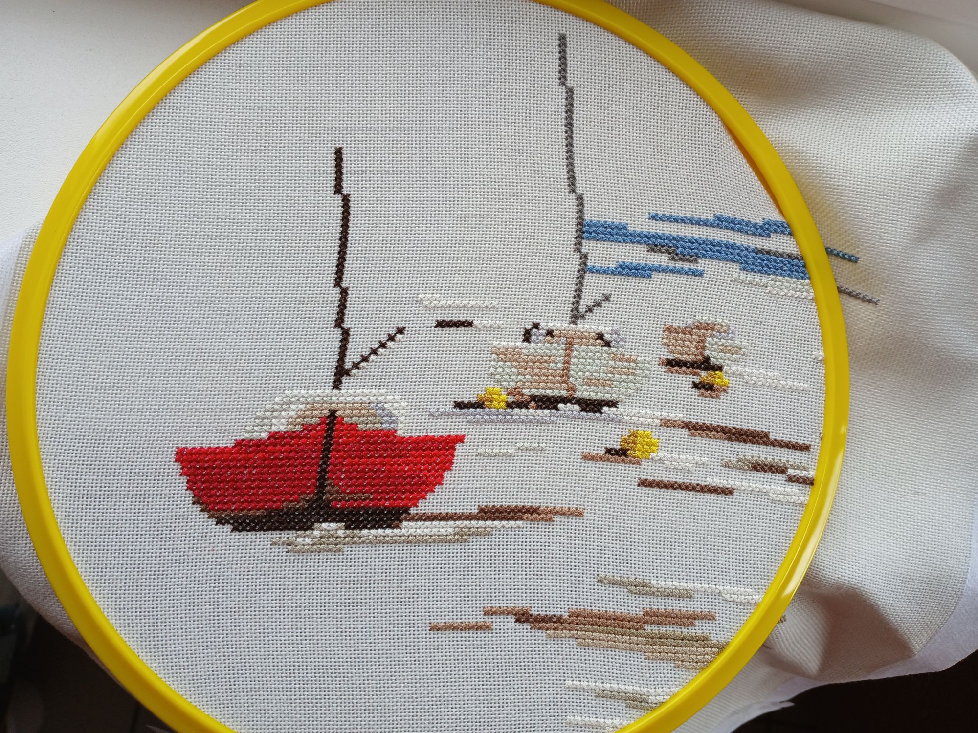 11 июля Всем привет. Совсем я пропала, знаю. Потому что вышиваю совсем медленно, не получается никак поймать ту волну, что раньше была. Поэтому записалась в разные совместники, чтобы был стимул шить хотя бы по чуть-чуть. И особенно чтобы дошить то, что лежит на полочке и покрылось слоем пыли. Три лодки из книги Загадочный океан Изабель Вотье. Книгу я приобрела давненько и на радостях начала вышивать. Основа туркомерка приятного серо-голубого оттенка. Но тут я столкнулась с тем, что схемы в книге напечатаны цветные, причём оттенки выбраны очень близкие. При всей лёгкости схемы я переплевалась и надолго отложила этот процесс. Но мысли о том, чтобы бросить не возникло. В общем, благодаря совместнику, они дошиты. МП Студия. Манэки Нэко. Котика шью время от времени, не торопясь. Половина готова. Бэк буду шить уже как завершу вторую половинку. Было стало Кот Херитаж. К 9 мая вышила несколько небольших сюжетов. Для настроения - цветы с маминой дачи. В этом году мы приехали позже, чем обычно и не застали цветение сиреней. Но зато пионы еще радуют. Хорошего настроения всем, кто заглянул! mag, nogres, irisheckin и 14 других сказали спасибо Поделиться сообщением Ссылка на сообщение