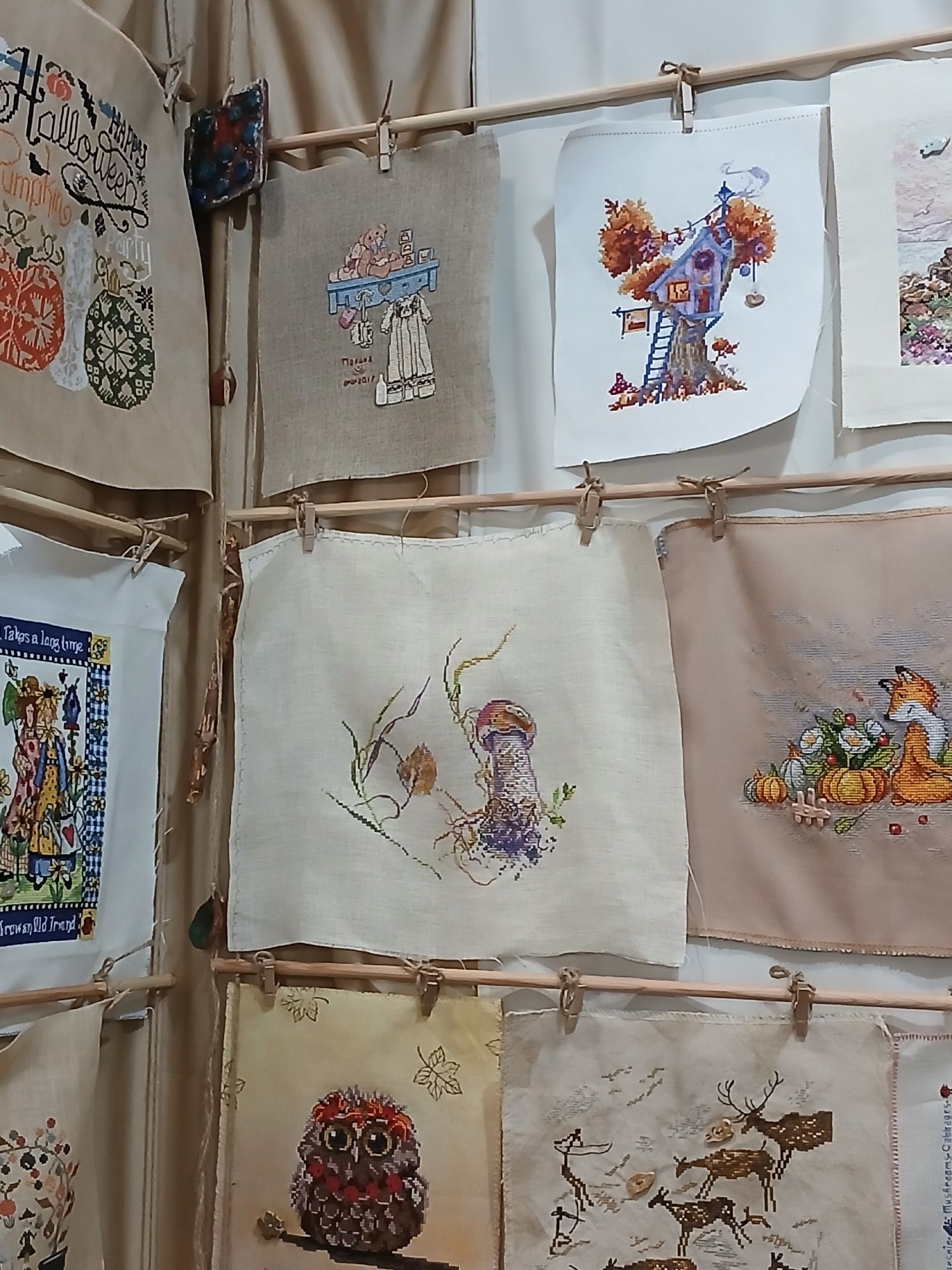 13 октября Еще мы с Полиной посетили Формулу рукоделия. Раньше, когда я одна ездила на выставку, не обращала особо внимания на мастер-классы. В основном пробегала по интересующим меня вышивальным стендам. В этот же раз мы поехали с целью попасть на мастер-классы. С утра в воскресенье людей было немного, и Полина попробовала себя в сухом валянии, росписи гипсовой фигурки, аппликации из ткани, ковровой технике и создании брелка из эпоксидной смолы. Больше всего ей понравилось валяние из шерсти. Пока она была на мастер-классах, я пошла искать стенд мастерицы, которой я отправляла свои работы для оформления ее стенда. На вышитые работы Эмма пришила созданные ею керамические пуговки. Было очень приятно увидеть моего Басика и метрику) Думаю, многие уже посмотрели фото с выставки, но все же покажу то, что меня заинтересовало. Не обошлось, конечно же, без покупок. Большую часть наборов я давно хотела приобрести. Но некоторые просто прилипли) У РТО мне приглянулись новинки - цветы и дамы, а также лошадки. Но я решила - не буду пока покупать, вдруг передумаю. Могу сказать, что на этой выставке больше всего мне понравились стенды пэчворка. На заданную тему (бабочки, насекомые) участницы проявили свои творческие качества по созданию эскиза, подбору тканей, фактур, компоновке и шитью. Какое разнообразие получилось! В общем, этот день прошел очень здорово, впечатления остались прекрасные. irisheckin, Juliay, АлёNка и 14 других сказали спасибо Поделиться сообщением Ссылка на сообщение