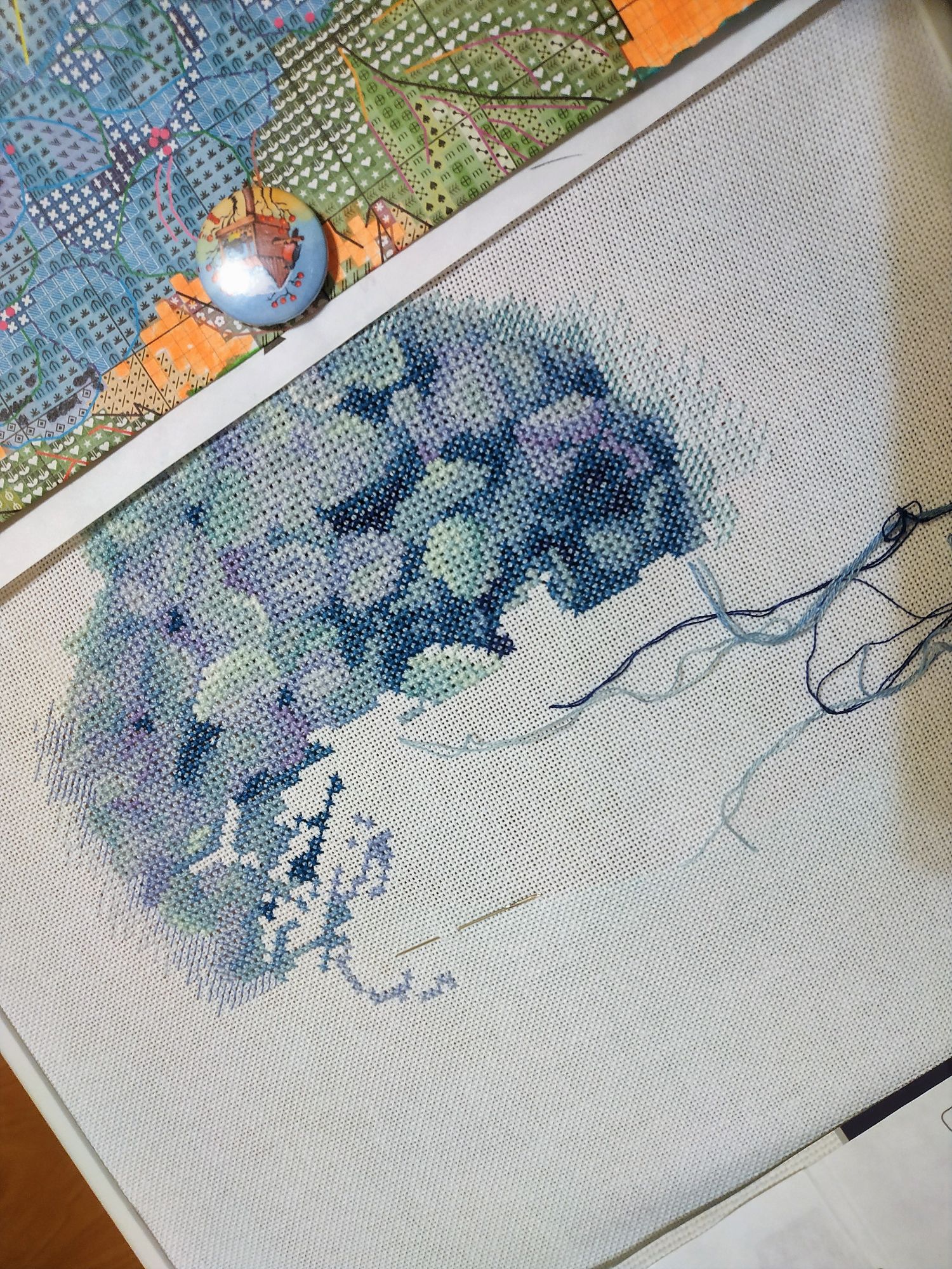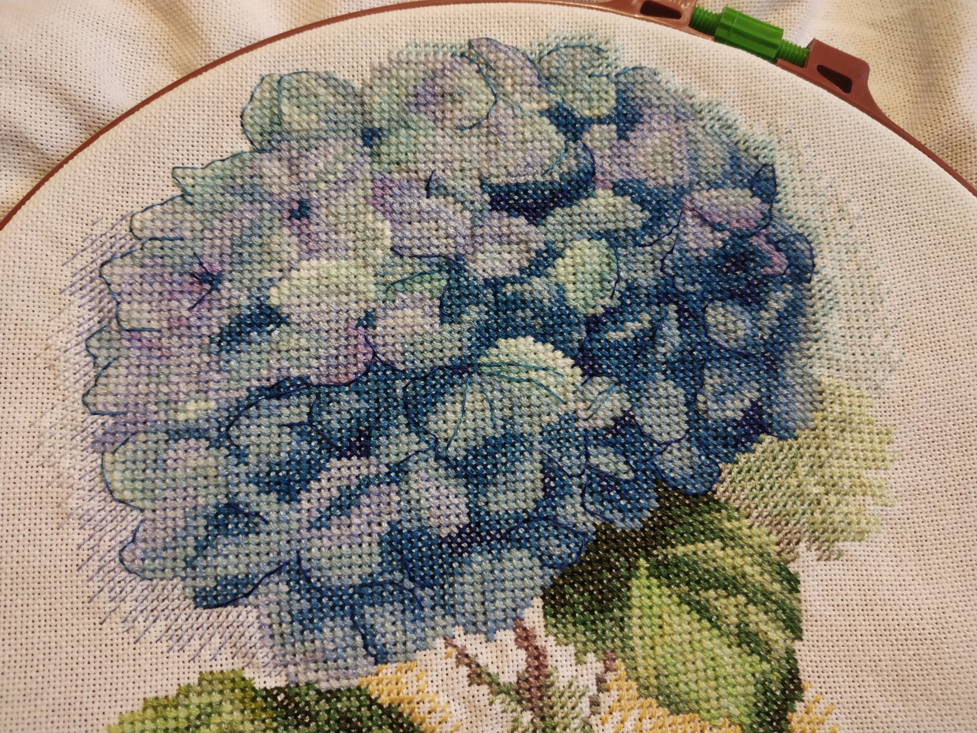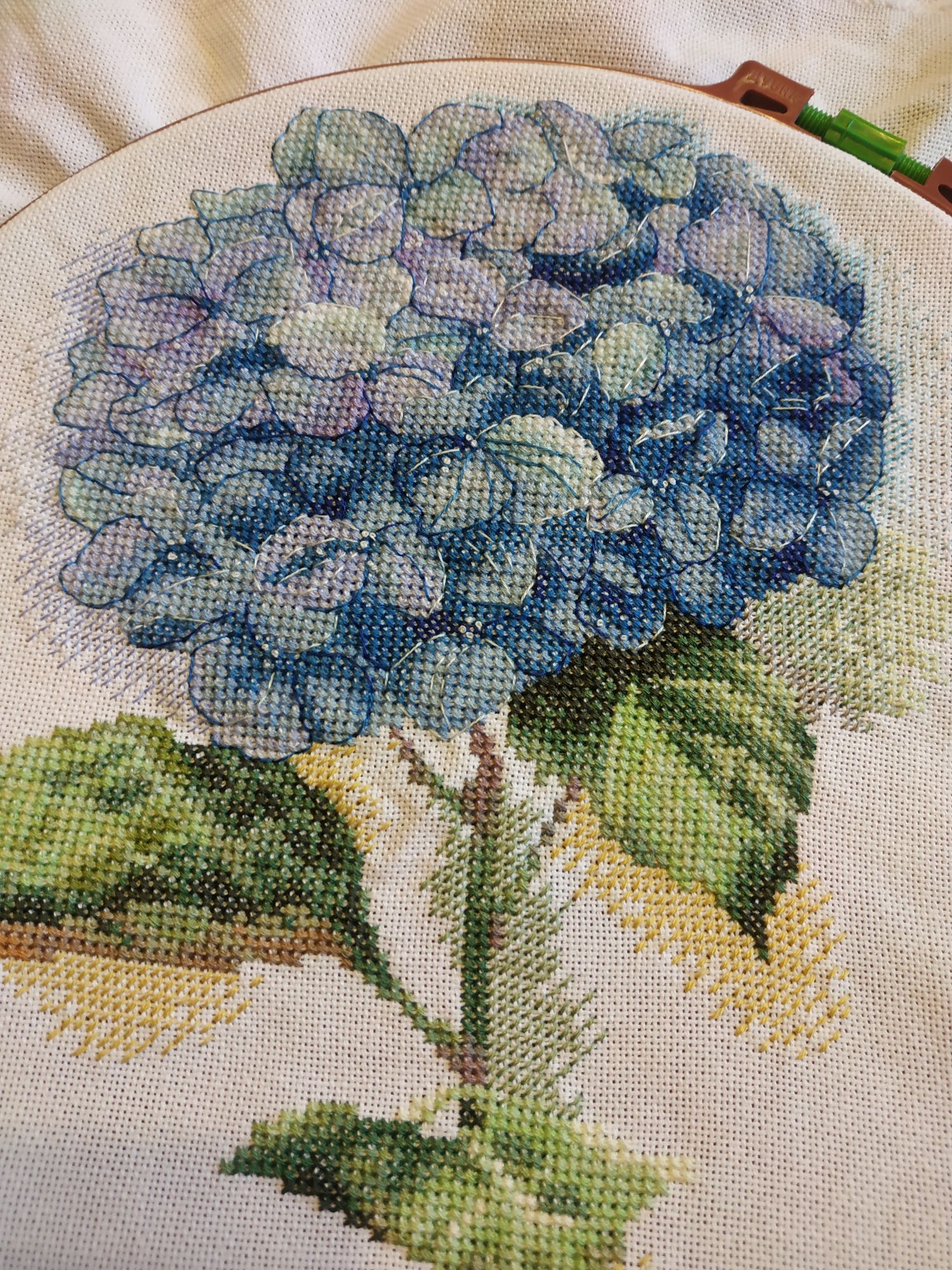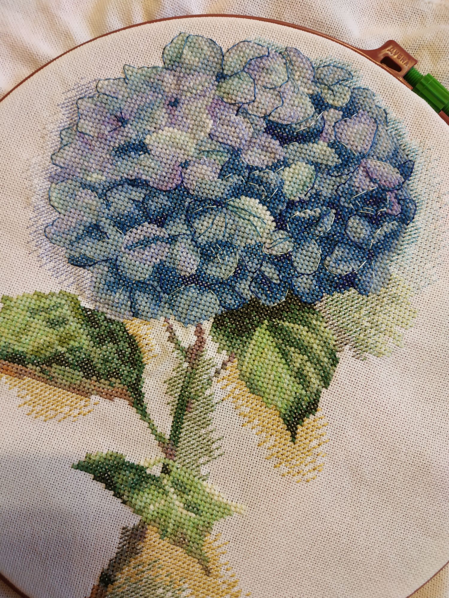 2 декабря 2018 Спасибо, девочки, СВЕТА, РЫПОНЬКА и НАТУСИК! Я обещала чаще отчитываться, и опять бабманула. Сегодня принесла один процессик, вышивала его в течении некоторого времени, но его у меня даже в гайке нет. "Голубая гортензия" от ПАННЫ. Мне очень нравилась сама картинка, да и результат не разочаровал. Но вышивалось сначала довольно трудно из-за цветной схемы, потом вроде бы втянулась и дошила. Без бэка Бэк там стапятидесяти цветов, вышивала его почти неделю по маленьким кусманчикам. И готовый результат Вот такой короткий отчетик. Постараюсь не затягивать и притащить скоро остальные процессы Ан4оус, svetles, Хозяйка смешных зверей и 17 других сказали спасибо Поделиться сообщением Ссылка на сообщение