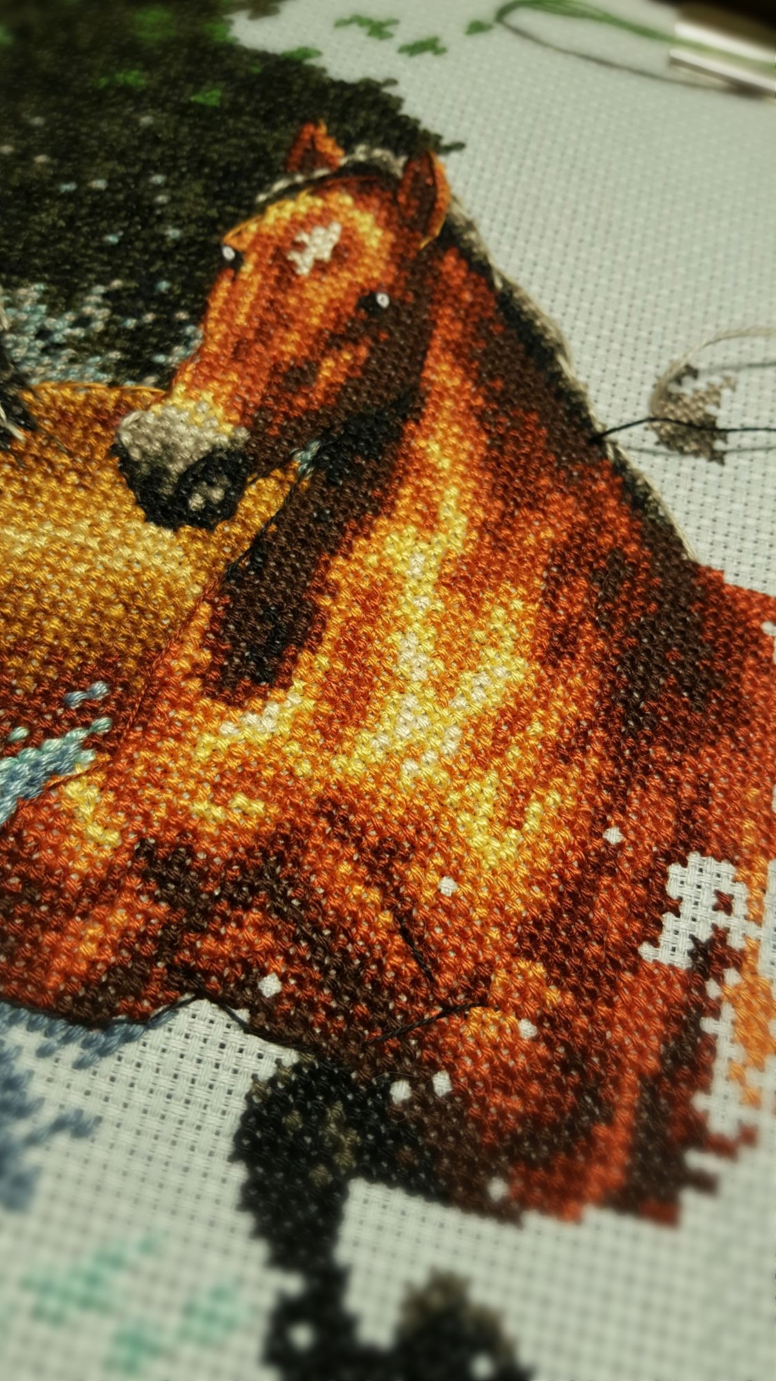 7 февраля 2017 Девочки, привет!) Я сегодня с отчётом, но очень небольшим. Не удержалась и начала новый процесс бисерный, икона по схеме Арт Соло, бисер подбирала продавец мне, давно в запасах лежала и вот я решила, что ее время пришло!) Мне эта икона достаточно дорога! Когда я её покупала, то планировала папе подарить, но, к сожалению, папы не стало в 2013 году. Решила, что возможно подарю маме её, но решу точно как только вышью. И второй процесс на сегодняшний день -это Бегущие лошади от димика...я его продолжаю! Ура! Медленно, но я двигаюсь... Antarktida, оленек, Gala83 и 27 других сказали спасибо Поделиться сообщением Ссылка на сообщение