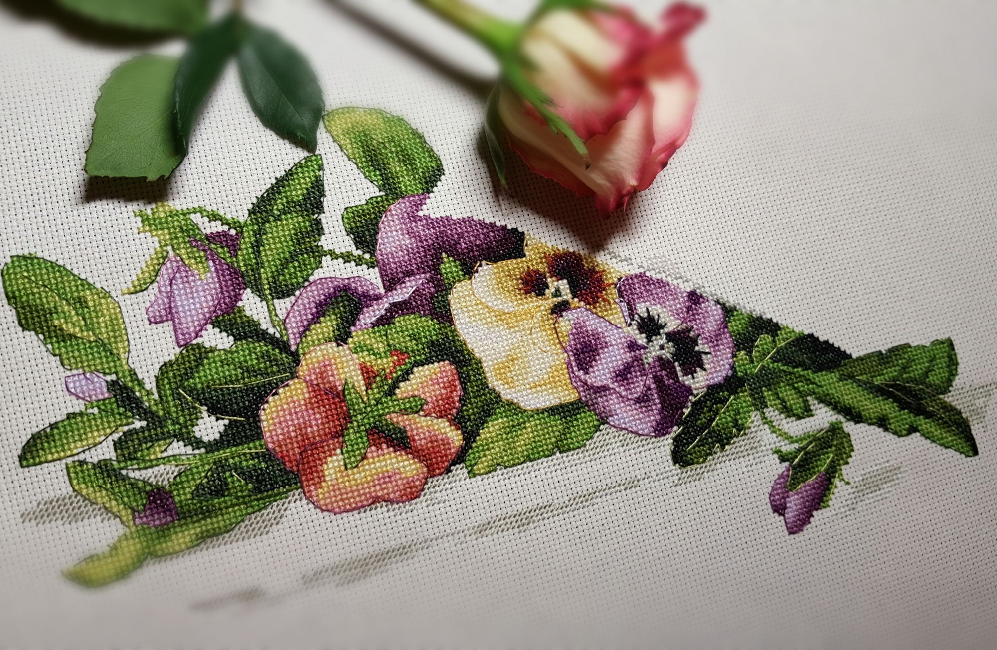 25 марта 2017 1 час назад, Nata_Struchkowa сказал: Как захватил тебя процесс! Здорово! Большие продвижения в такие короткие сроки! Очень красиво, приятные цвета. А мне кажется, наоборот хорошо, что ноты появились, зато анютки не успеют надоесть. Разнообразие) Захватил! Это верно!) Не очень люблю белыми нитками вышивать и светлыми, а еще когда так много ...но пока держусь... Вот анютки никапли не надоели еще!) оленек, Камма80, Nata_Struchkowa и 3 других сказали спасибо Поделиться сообщением Ссылка на сообщение