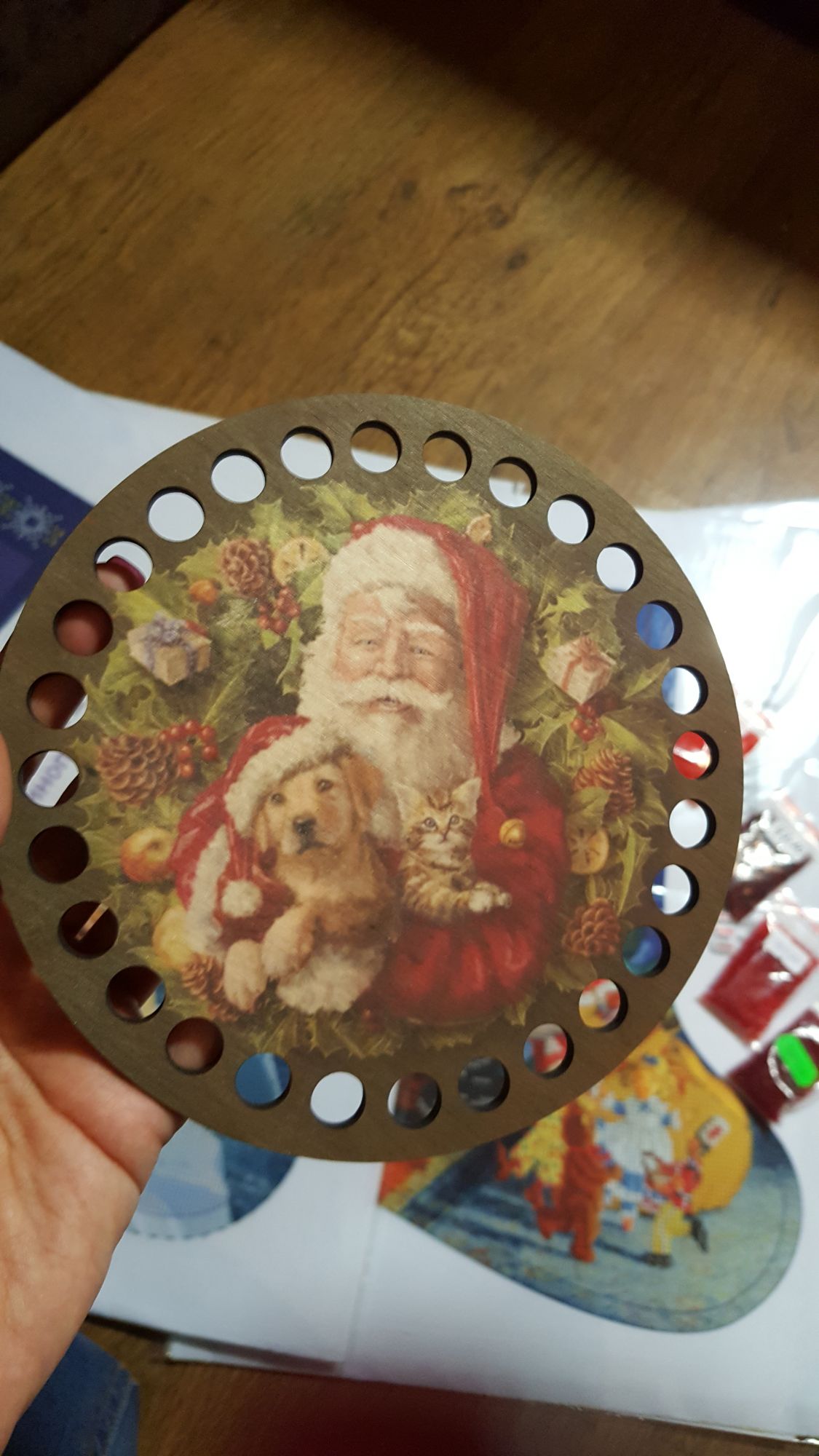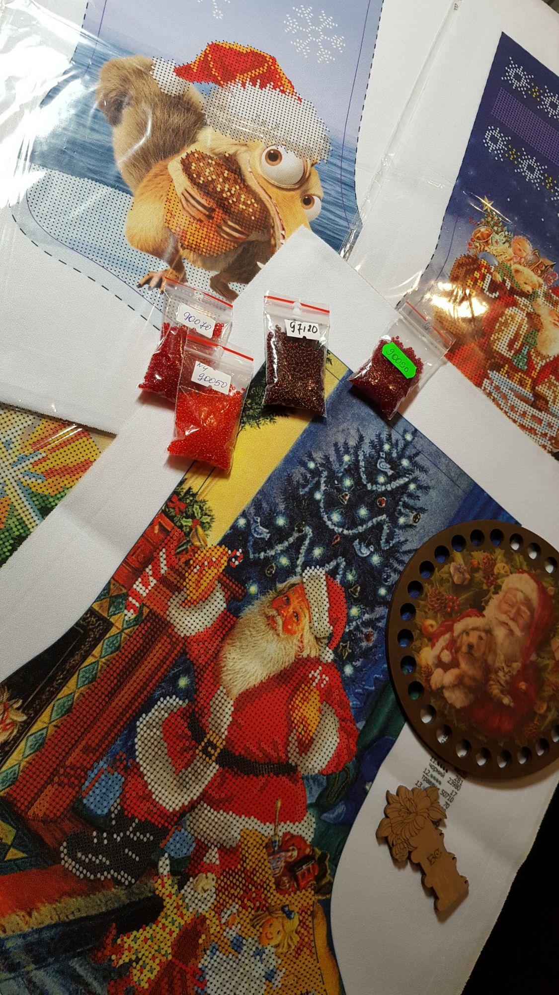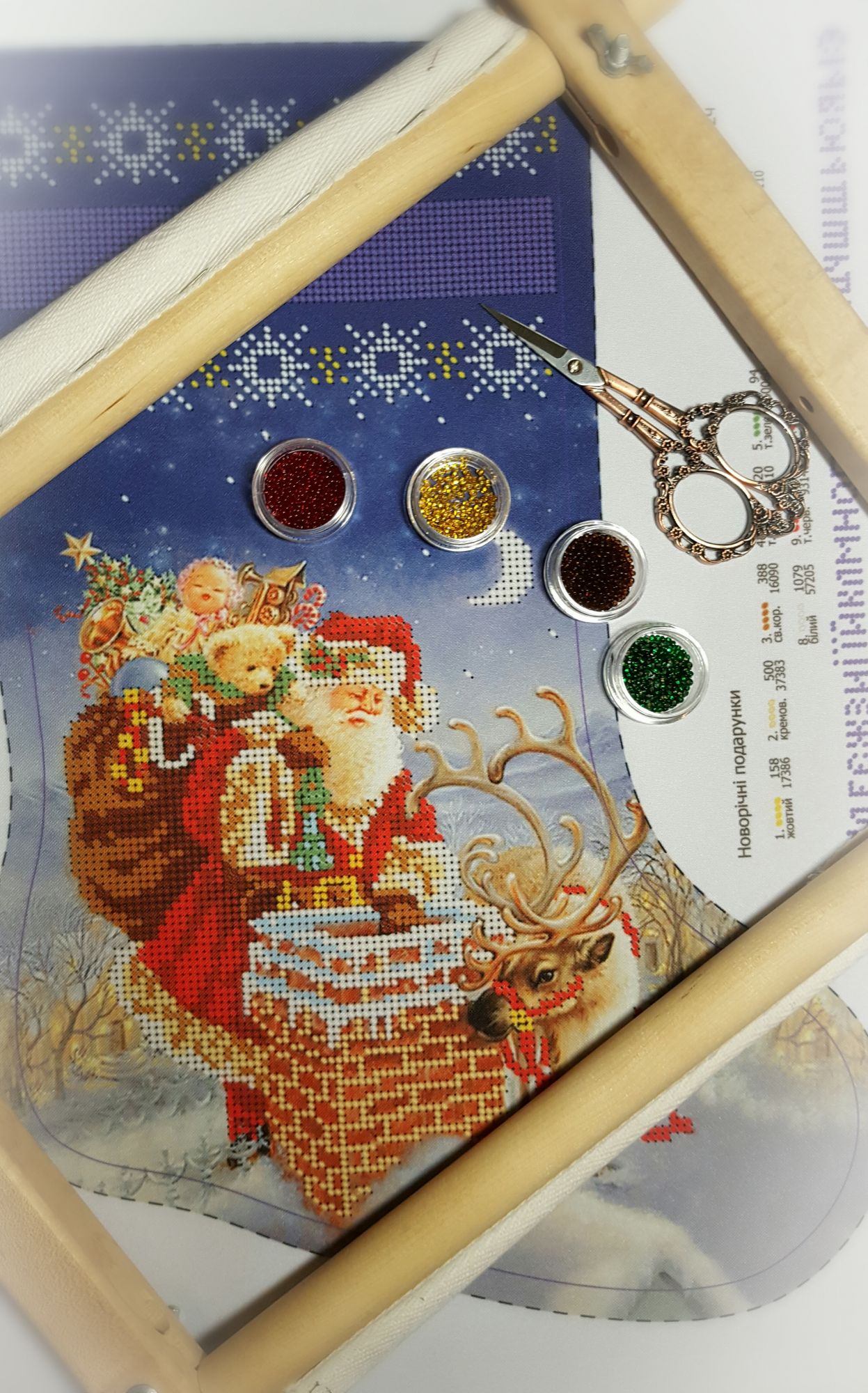 4 декабря 2017 Привет, девушки! Вот раз я заикнулась уже Инне про новые процессы, то покажу, что такое, и как так))) Покажу вам сначала девушку свою...изменила я лесенку...и мне очень нравится как получается! На сегодняшний день у меня осталось буквально пару ступенек нижних...но я фото не делала еще..доделаю и красиво все покажу. А пока так... Еще, мне пришла посылочка с новогодними бисерными носочками от фирмы Dana! И красивенный органайзер для ниточек с рождественским сюжетом от фирмы страна рукоделия. Носочки эти выбрала за сюжеты и яркую и хорошую печать на заготовке, бисер подбирала сама , т.к. ключ меня не устраивал. И вот уже что получается! Замучилась подбирать бисер в по ходу работы, ием более выбор у меня не сильно велик, запасы не столь большие остатков, а магазина с чешским бисером у нас нет( довольствуемся тем, что есть на руках...поэтому плююсь и психую...ищу-ищу нужные цвета...труба замучила меня, переделываю ее уже не первый раз...пока не определилась с оттенком бисера. Этот сапожек сыну вышиваю, он его выбрал. Жду так же еще посылочку от подружки, давно жду, надеюсь , скоро она доберется до меня, там столько богатств , вы не представляете просто! оленек, Molly21, Anicha и 22 других сказали спасибо Поделиться сообщением Ссылка на сообщение