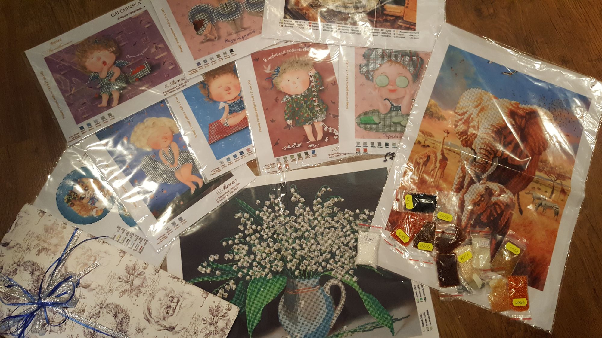 18 декабря 2017 Всем привет!) Совсем я забыла тут показать свои продвижения( А моя девушка бисерная от Тела Артис " На балу" -давно готова! ещё я получила посылочку бисерную, с новогодними сапожками( не помню показывала вам ее или нет) И даже успела начать вышивать сапожёк для сына и для дочки другой)) сапожёк фирмы Dana, бисер не по ключу. Вношу свои изменения) второй сапог ещё не фоткала) С дочкой мы нарисовали картину по номерам) процесс занял один вечер)..на днях поставили и украсили новую нашу ёлочку)) А сегодня я получила ещё одну посылочку бисерную) с полюбившимися мне уже основами под бисер по мотивам Гапчинской! И пару других сюжетов фирм Dana и Mika , а также там был сюрприз . Моя подружка попросила продавца вложить в посылку с моим заказом наборчик, который мне очень полюбился! Пларировала прикупить его сама чуть пойзже, но она меня опередила) Не удержалась и заглянула в наборчик! Вот такой красавец на художественном холсте уже нового качества. Бисер обычный 10 номер и микро-бисер. Начинать пока не буду, хотя руки чешутся! Думаю в новом году не выдержу) Desha, Любушка1985, Же_Же и 19 других сказали спасибо Поделиться сообщением Ссылка на сообщение