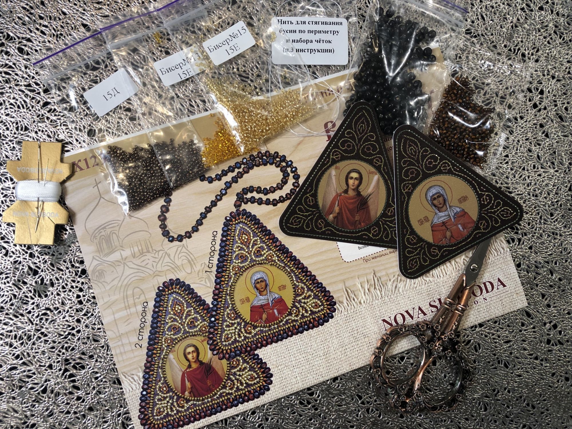 19 февраля 2019 Девочки, привет!!! А я пришла показать вам свой процесс и готовый результат отшива кардиналов на санях! Вот и еще один процесс минус))) чему я очень рада! Останавливаться не собираюсь!) теперь на очереди шарм( домик)... А еще я получила посылочку, делала заказ по бисерному.... долго не могу без него))) Тут у меня бисерная заготовка с подбором бисера от «Золотая подкова», наборчик венчальных икон «Картины бисером», наборчики брошей от «Абрис Арт» и долгожданные подвесочки в машину от «Нова Слобода» Ну и, конечно, я не удержалась и начала эти последние наборчики)) ... скоро еду к маме и решила успеть вышить и подарить ей одну, с одной стороны ангел хранитель, с другой-ее именная икона святая Наталья! вот такая комплектация! и начало процесса! И одна половинка готова! не идеально бисеринки темные ложаться, хоть и провожу вдоль еще повторно ниточку, и сам бисер темный кривенький и много брака, остальной хороший! До крупного еще не добралась! Gala83, malenta, Же_Же и 17 других сказали спасибо Поделиться сообщением Ссылка на сообщение