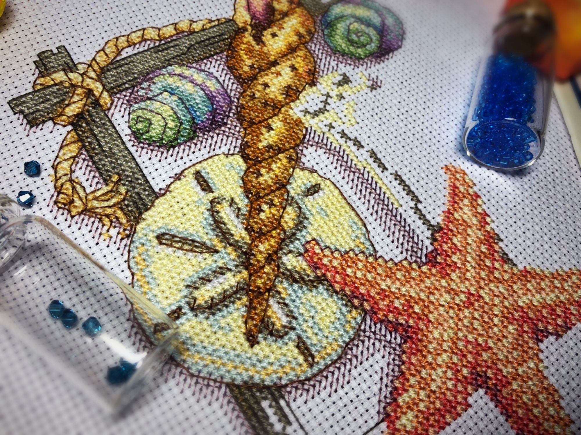 28 июля 2019 Всем привет! Я пришла к вам с новыми процессами .. Первый- это , конечно, Dimensions ! “Simple treasures “ (Простые сокровища) Очень мне захотелось вышить ракушки и море и маяк, все в одном) решала я на чем- на оригинальной канве из набора или равномерке Линде из запасов, но попробовав пару крестиков на линде, я все-таки решила вышить на аиде. Это сюжет итак непрост, куча цветов, постоянная смена нитки, я вышиваю с одной иглой и без разметки, а еще схема у нового дима глянцевая, поэтому не зачеркнешь толком, в общем ломаем глаза и тихо вышиваем. Также, я вспомнила, что еще не показывала начало бисерного процесса по Желтым орхидеям от Золотой подковы! Я еще начала и отложила в сторону, т к он идет тяжело из-за кучи похожих значков на схеме! Этот вечная беда вышивки бисером. Производители делают схемы красивые для глаза, но такие сложные. поймала блеск бисера на вечернем солнышке! Helga5437, Egelia, Камма80 и 20 других сказали спасибо Поделиться сообщением Ссылка на сообщение