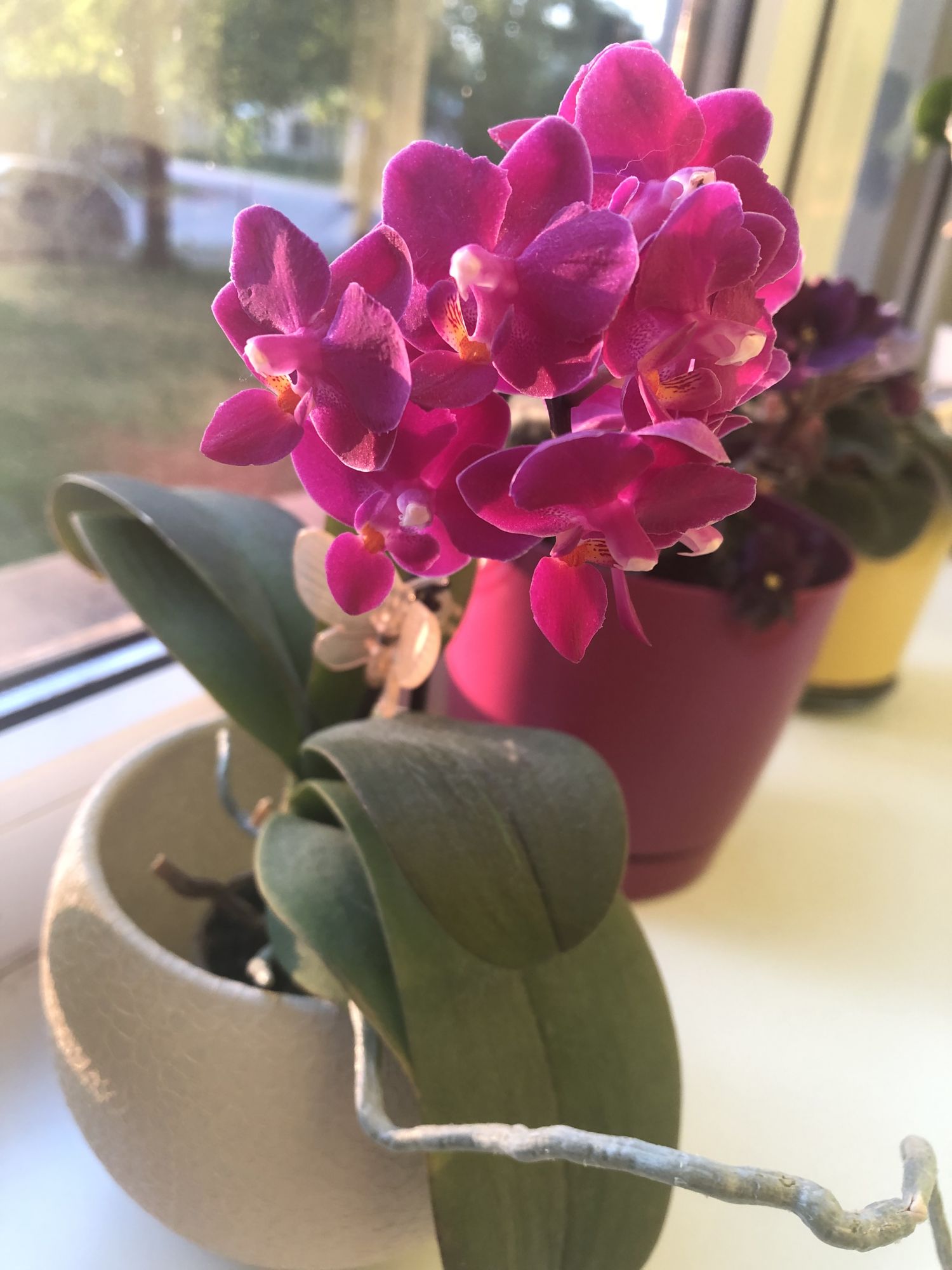 26 июля 2019 7 часов назад, InnaN сказал(а): Вот душ я ни разу не пробовала, но тоже слышала про него! Корни у меня тоже плотные, не буду трогать, а вот стебель у меня один, на одной орхидее на которой 2 детки были, осталась вот одна на нем) и пока он не сухой! Они у меня стоят на солнечной стороне, но вот у моей свекрови стоят на этой же стороне(у нас частный дом, на 2 половины, одна наша с мужем а другая его родителей) и у неё все 4 штуки цветут без перерыва, какой год! Надо наверно ей отдать на выращивание)))) а потом забрать)))) Земля да, такая как ты показала. А плошки у меня чёрные прозрачные, пластик кажется... Вообщем попробую подкормки тогда и душ, спасибо Вот мои сейчас совсем не цветут, одна только с бутонами , и малютка первый раз так расцвела шикарно один сама обломала случайно(( один перестал цвести, корни сгнили, но смотрю, что вроде что-то поползло новое из стебля, подожду что будет! и этот так красиво зацвел, перестала часто поливать!) а вот корни у меня какие воздушные мощные! Но их все пора пересаживать и земли больше! Камма80, maui, InnaN и 10 других сказали спасибо Поделиться сообщением Ссылка на сообщение