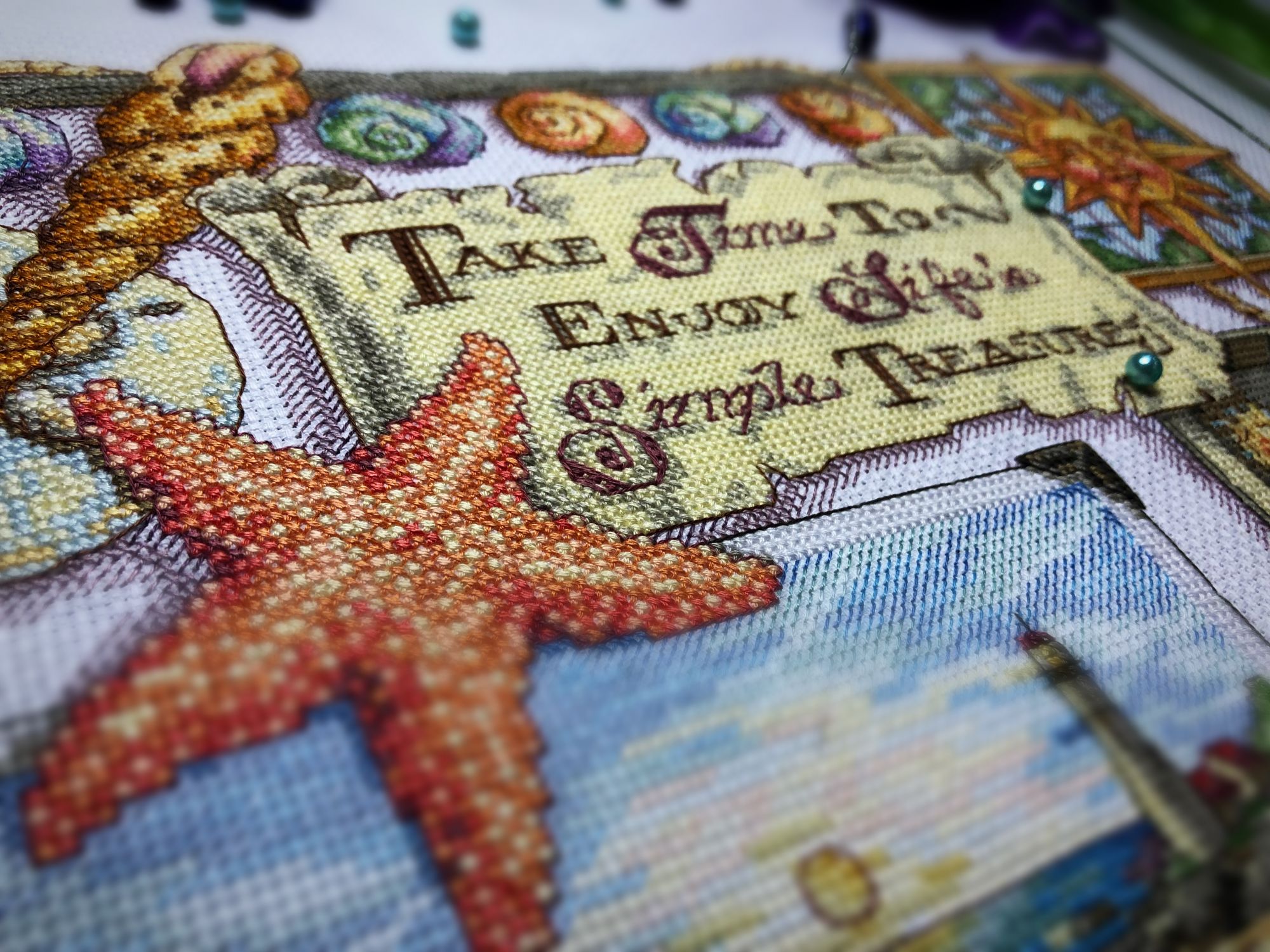 1 октября 2019 Всем привет! пришла показать вам продвижение и финиш моего процесса морского, семплер «Простые сокровища» от Dimensions. - магия бэка)) Тут слова переводятся так : найдите время, чтобы насладиться простыми сокровищами жизни! Вышивала я его чуть больше двух месяцев, вроде не так много сейчас понимаешь, но мне казалось можно было и быстрее вышить, отвлекалась на другие процессы и были дни вообще без вышивки! И цвета ниточек из набора, нашла много у себя в запасах, поняла, что оттенки многие совпадают с набором «Ракушки и гортензия» Сейчас планирую завершить амулет и рябину от мп студия. И заняться веночком с ежевикой и пионами. Также в машине иногда вышиваю по пол часика подвеску- амулет . Я такой уже вышивала похожий для мамы, теперь на заказ вышиваю. Две стороны почти готово! Осталось соединить их и веревочку сделать. InnaN, Муня, Камма80 и 14 других сказали спасибо Поделиться сообщением Ссылка на сообщение