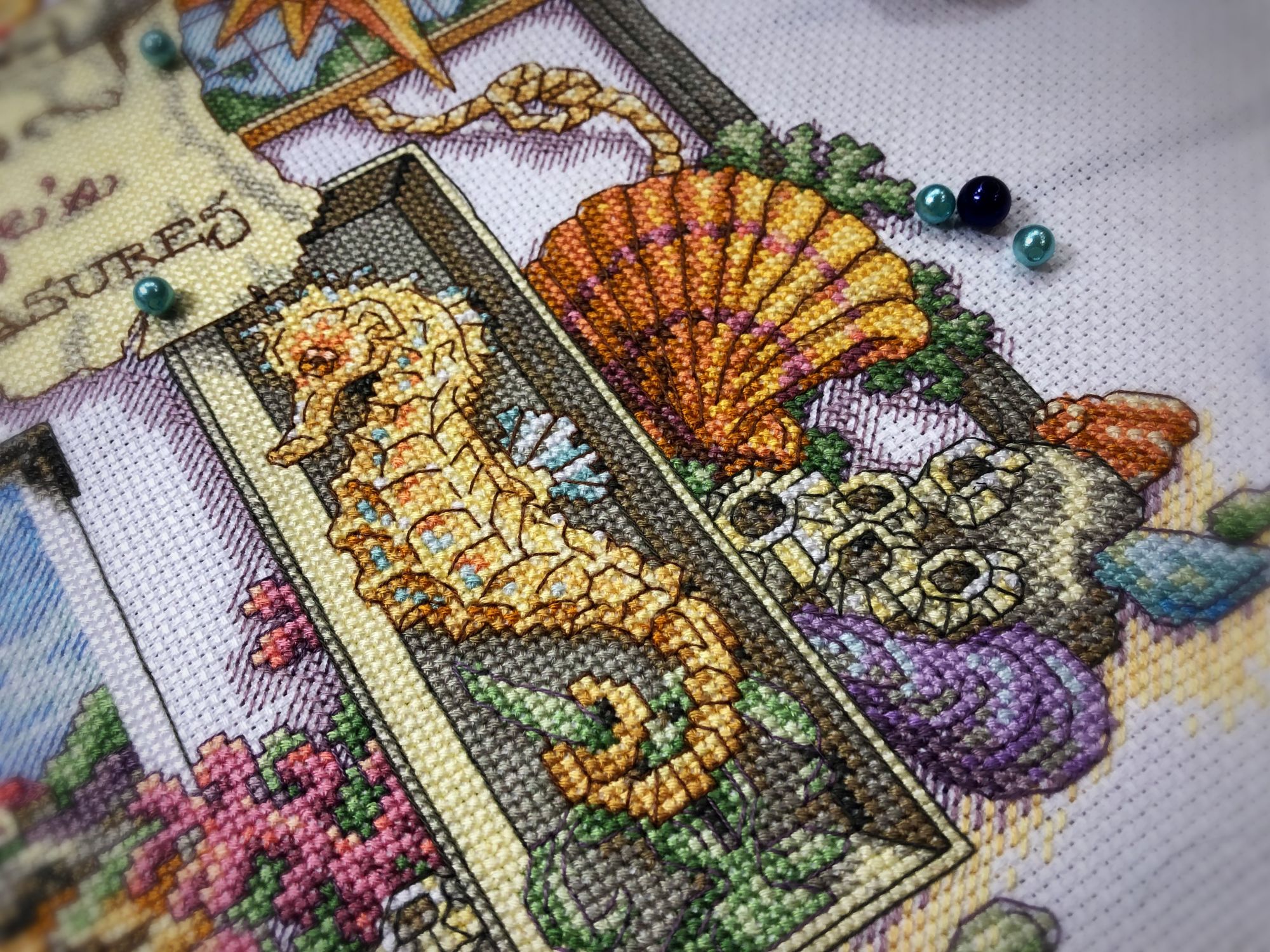 16 сентября 2019 Привет, дорогие девочки! А у нас осень самая настоящая, дожди непрекращаемые, ветер постоянно и прохладно уже! Так лето толком и не порадовало. Ну ладно, будем ждать красоты рыжей!И много вышивать тогда))) А я снова поднажала и вышила еще один красивый фрагмент в сокровищах И мне так нравится этот морской конёк! А вам?) и вообще, снова вышивка хорошо пошла и вышивается в радость!) А ещё я приобрела по хорошей цене такую осеннюю схемку авторскую «Осенний натюрморт» от Дарьи Мастраковой. И жду свои новые посылочки с покупками Аринесса , Egelia, Гусёна и 18 других сказали спасибо Поделиться сообщением Ссылка на сообщение