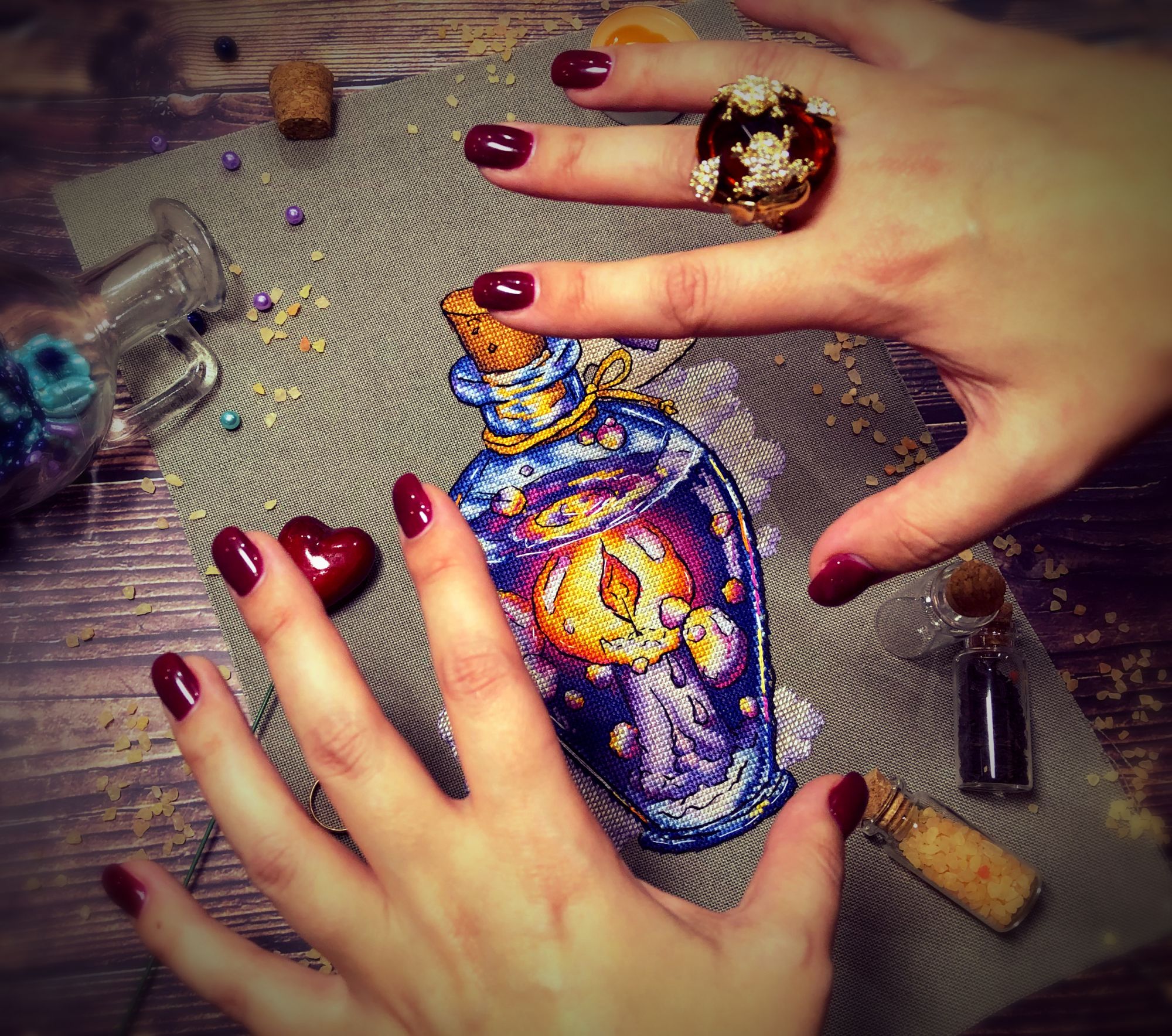 31 октября 2019 Привет, всем! Пришла показать свою баночку с «любовным зельем» от Ольги Масленниковой, мой первый первоотшив Только сейчас увидела, что баночку уже позеленили , а она была ещё не готова! Но сейчас покажу завершенную работу и исправим положение)) Немного покреативила над фото процессом Процессом и результатом полностью довольна!) Яркие краски, шикарные переходы и необычный и волшебный сюжет, что может быть круче!? Ну и украсили сегодня к празднику немного стол, так веселей)) Ещё я на днях получила посылочку от хорошей знакомой Вышивальщицы из Германии, с моим любимым набором , который давно хотела вышить!) И в завершении, покажу свой новый процесс, который начала еще недельки две назад, сюжет прекрасный! «Тоскана» от Овен! У меня 4 набора из серии и пора было уже начать отшивать их) Получается замечательно и очень ярко! Кайфую от домиков! Ну и конечно, не могу не показать это нашумевшее в инстаграмме фото за последние два дня Ох сколько всего я услышала и хорошего и плохого!))) мои неоформыши в рулончиках)) да, по невнимательности , забыла добавить последние две работы и третьей нет, с баночкой тоже! Ну и бисерные не ставила тоже сюда)) Nadinka-Blondinka, Хозяйка смешных зверей, malenta и 28 других сказали спасибо Поделиться сообщением Ссылка на сообщение