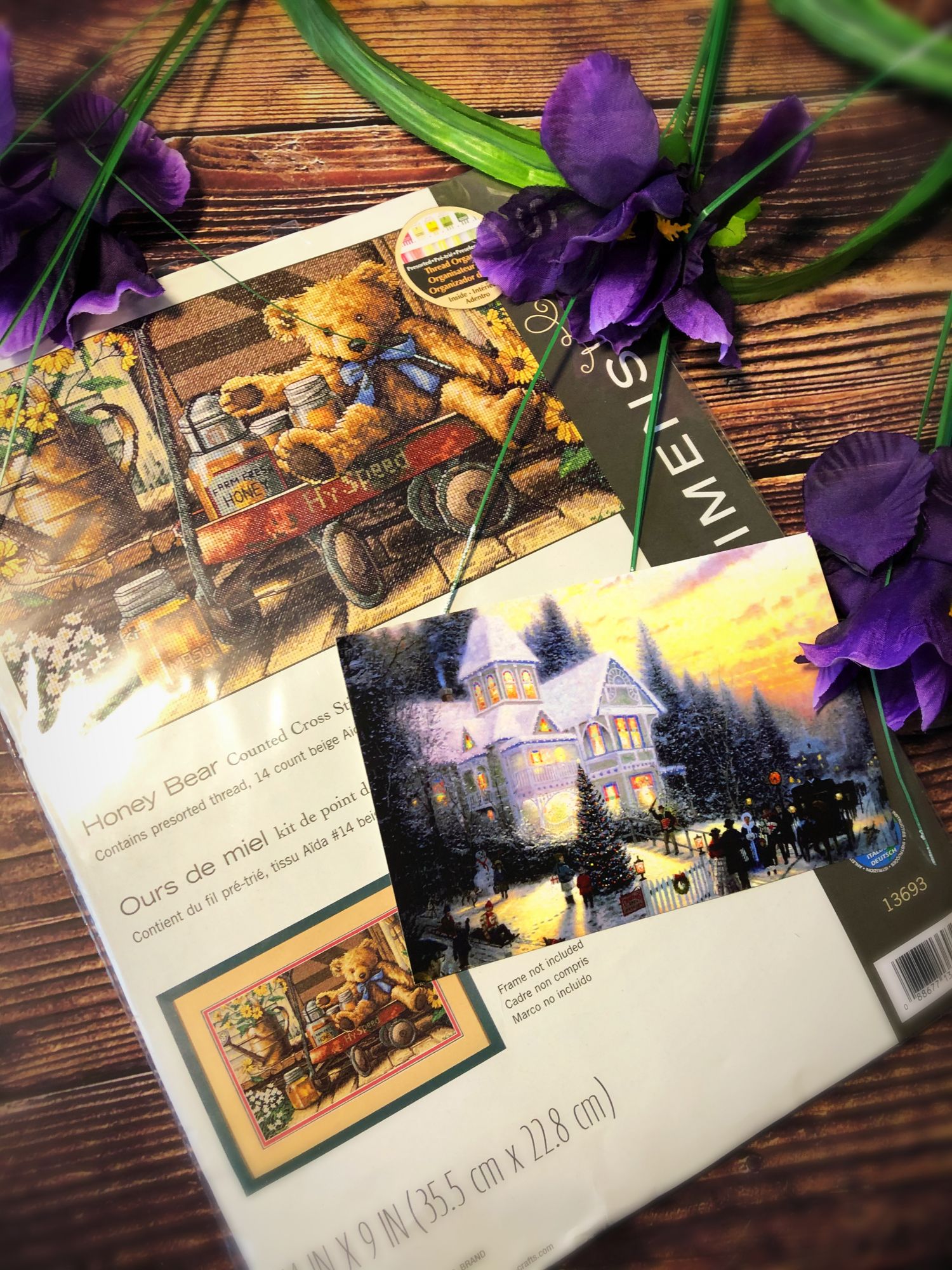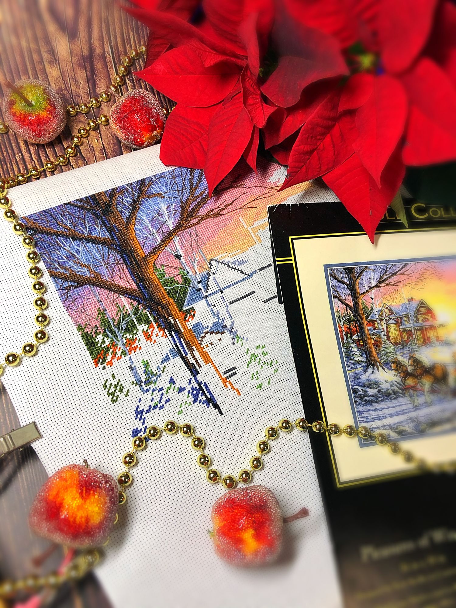13 февраля 2020 Всем привет! Как давно не появлялась тут я А тем временем мне есть, что показать вам! Плохо помню какое фото этого процесса было последним, кажется ,это следующие идут уже.. работа яркая и красивая! Очень большая и еще на 18 каунте. пока она еще не завершена и в процессе у меня, но остался последний четвёртый угол. Много красивых цветов ниток. Очень классные переходы, небо -вообще достойно отдельного внимания! Очень нравится как проработаны лошади, телега и сено Уточки мои любимые персонажы, домики красивые, снежок на дорожке. сейчас работа на таком этапе... Еще я похвастаюсь своими полученными подарками от подруги вышивальной из Украины. Конечно, ее я тоже порадовала подарочками Столько сразу появилось наборов из хочушек кайф! И все димовские!)) Также, я себе приобретала сама такой наборчик с медовым мишкой! Тоже давно мечтала о нем.) Просто для инстаграма делала такое фото всех мои готовых и неоформленных работ, вышитых крестиком. и еще я вышила за это время небольшую работу, тоже Dimensions “Be a Light”. Но я добавила от себя в дизайн крейник и металлизированную нить. Они в огоньках, огне от свечей, и надписи. Фото процесса фотографировала специально для форума, больше процесс нигде не показывала, так как он небольшой совсем и вышился всего за 5 дней. Канва 14 каунта( просто блаженство) и тёмно-синего цвета. Даже не замечала этого, так как работа вышивала очень легко ... ниточки яркие такие, красивых оттенков. оленек, Хозяйка смешных зверей, Marusya1978 и 17 других сказали спасибо Поделиться сообщением Ссылка на сообщение