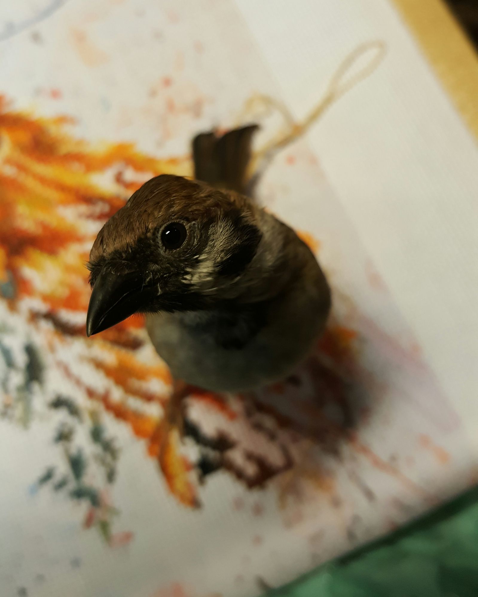 29 октября 2016 В Friday, October 28, 2016 at 09:22, turu сказал: Интересные наборы прикупила, Тась! Меня конечно сразил кошарик, хорошо, что ты с него начала! Бум наблюдать! Чупа просто чудо! Такой ручной!!! А как он уживается с вашими питомцами? не обижают? Спасибо)) меня привлекла круговая техника, думала не очень мне она, многие жалуются , что долго тянется процесс и скучно, а мне так нравится и так быстро кажется... Чупа с питомцами не общается, мы постарались)) живёт под потолком, клетку закрепила на карнизе))) выпускаю только когда животные закрыты в другой комнате. Иначе его скушают, не кошка, так собака...она на него более агрессивная даже..а так им его просто никак не достать...я поэтому спакойно сплю)) В Friday, October 28, 2016 at 09:29, Desha сказал: Ай да Чупа! ай да молодец! Какой он хорошенький) Глазки-бисеринки черные)) Сладкий мальчик!!! Бисерные наборчики классные Тая! Лиса-бомба!!! Сладкий, но вредный становится! Драться полюбил, правда когда в клетке сидит и ты ему пальцы пихаешь...или любит подкрадываться к сыну, когда он сидит играет на полу в комп, ноги обычно под себя подгибает и пальцы на ногах торчат под попой у него)) и мелкий наш любит тихонько поклёвывать сына за эти пальцы))) смешно конечно..ухахатываемся!) А ещё может не давать дочке сесть на диван...прям прогоняет её)) деловой)) может и на полу за ней гоняться)) в общем такой же ребёнок, со своим характером)) Одно вот меня беспокоит, перья на голове стали линять, как проплещинка ...думаю может витаминов ему не хватает...ведь жидкие он не хочет употреблять с водой...не знаешь что это может значить? Он конечно иногда и по клетке мечится как угорелый, может задевает перьями клетку и так повредил их... В Friday, October 28, 2016 at 09:35, Vereena сказал: Таячка, какой носик!!! Красивые у тебя пополнения и нервы всем бережешь - сразу новый процесс показываешь))) Лисичка с Чупой - прелесть, у тебя самый плодотворный помощник (моя киса только нитки тыбрит)! Спасибо)) мои нервы тоже не выдержали...старалась не браться за новое, но не смогла и дня продержаться)) Да, за ним только следи, чтоб иголкой не повредил себя! А кошка на нитки не реагирует вообще мои... В Friday, October 28, 2016 at 11:24, Же_Же сказал: Какой котик! У наго что-то на носу круглое Мне очень нравятся эти круговые зашивы. Красота.. И Чупа твой такой помошник)) Умница ребенок Это блинчик-носик)) муж сказал так и оставить))) Чупа умница, но пока бисер вышиваю не подпускаю его, еще бисером питаться начнёт вместо зёрен))) 15 часов назад, lubanka сказал: Таечка, пополняшки классные! Кот шикарный! И лев) я б тоже не удержалась, начала бы котика) И лиса растет отлично. Правда, в этот раз Чупа затмил лису))) он совсем домашний, я бы никогда не подумала, что воробьи могут так одомашниться) Спасибо большое, Любаша!) Чупа звезда!) У меня в одноклассниках уже требуют продолжение нашего совместного процесса))) про лису не спрашивают, спрашивают про воробья Чупу))) Ктож мог подумать, когда мы его поднимали на руки лысенького, думали откормим и на свободу) а тут вон как, нельзя, да и жалко уже...родненький такой...правда жил-площадь я бы увеличила потом ему, и на воздух побольше)) если суждено ему дожить с нами до переезда, значит будет ему потом жить в кайф на воздухе в большой клетке...потому что про жизненный цикл ответ пока загадка...точно нигде не написано...да тем более домашние условия есть -домашние. Там они умирают от голода и холода и врагов, а т