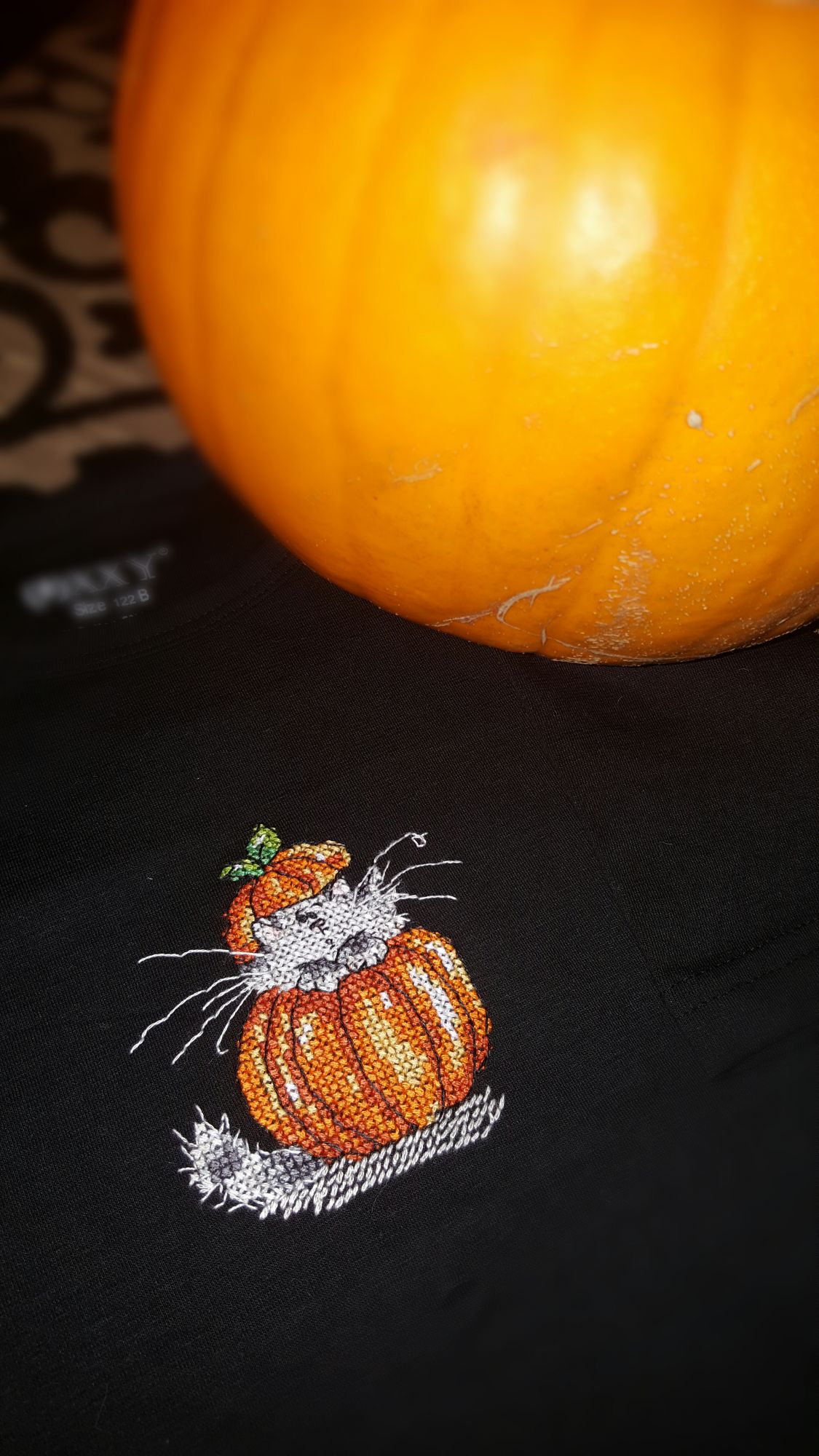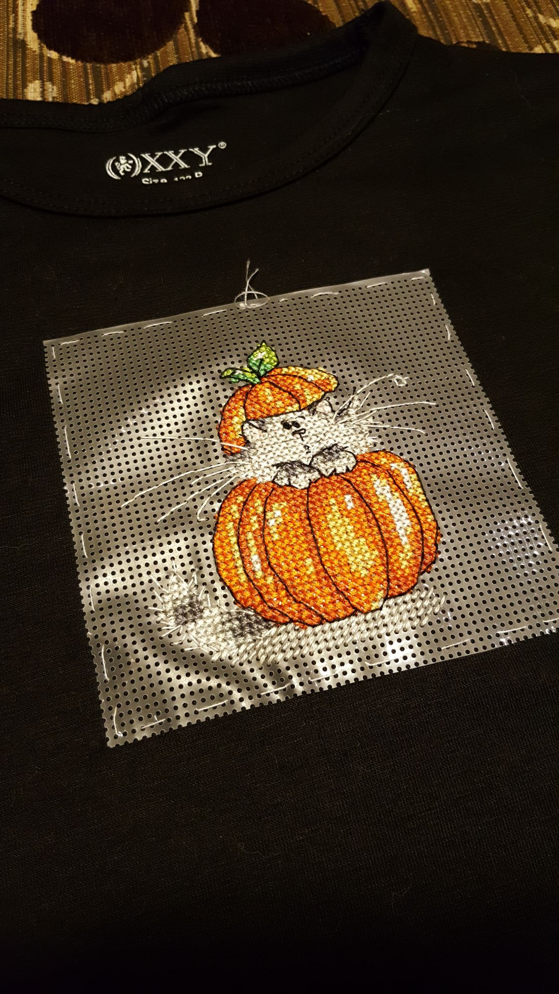 30 октября 2016 Доброй ночи, девушки!) А я сегодня закончила свой мини-проект для дочки к празднику хеллоуина) Первый мой опыт на водо-растворимой канве. Канва расстворилась, вышивалось вроде неплохо, правда замучилась прокалывать канву, где это нужно было...и ошиблась с выбором футболки. Она у меня слишком тянущаяся, поэтому итог мне совсем не понравился...крестики кривенькие, а полукрестики вообще кошмар...а всё было вроде так красиво в процессе. Ну ничего, зато попробовала!)) А ещё я вышивала бисерного котика дальше! От него мне не оторваться! Очень -очень нравится!) И процесс и то, что получается.) Вот что было на момент фотографирования у меня... И не устояла перед тыковкой!) Цыпа, Anicha, АриЯ и 21 других сказали спасибо Поделиться сообщением Ссылка на сообщение