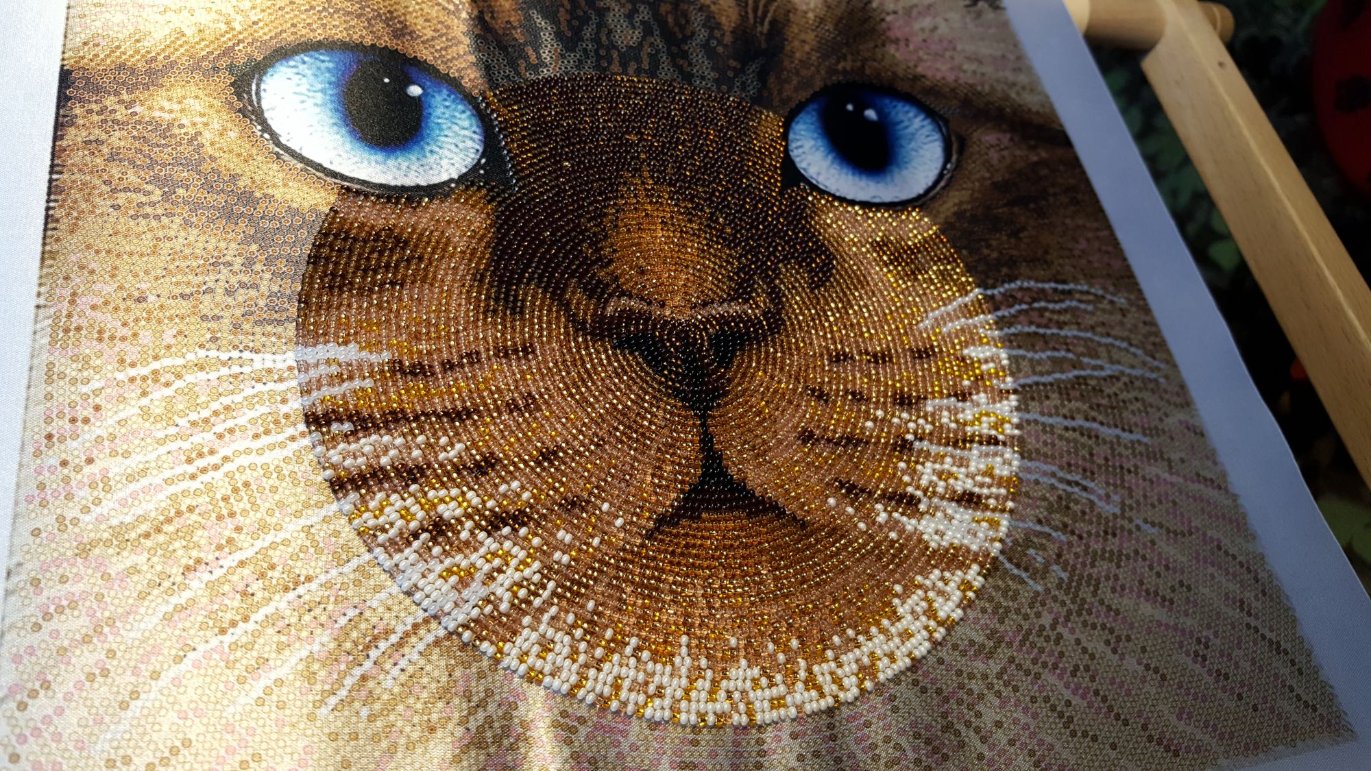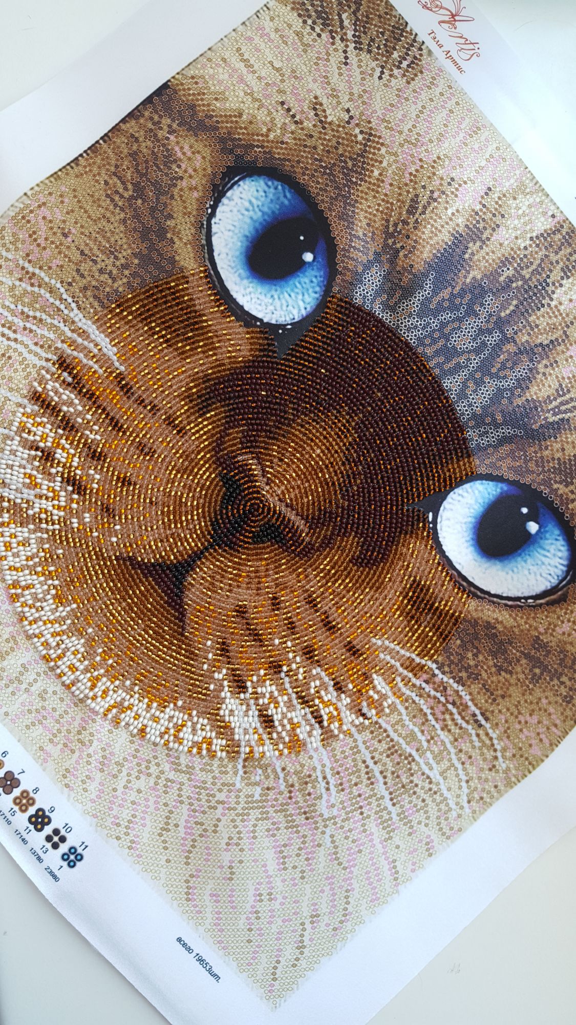 5 ноября 2016 19 часов назад, Графиня сказал: Таичка, сколько много уже в лисичке вышито!!!!!!!!!!!!! Осенние и зимние фото красивые!!!!!!!!!!!!!!!! Спасибо , Наташенька!)) Лисичку пока, к сожалению, больше не трогала, хотя понимаю , что там осталось то)) Но меня больше потянуло пока на бисер)) Девочки , вот мой кот двигается , наверно пока не сильно вам интересно, прибавляются только круги потихонечку, но уже видно усики его белые и мне , например нравится тёмные контуры вокруг его глазиков синих)) А снизу видно как мося котика светлеет... ...сняла с рамы, немного волной пошёл, но думаю , это натягивается ...правда не знаю где мне это делать, наши мастера-ломастеры врятле справятся с такой задачей...хоть шли в Россию на оформление... А теперь работа, из-за которой я сняла с рамы кота!)) Начала я новый процесс, почему-сама не знаю...ведь хочу безумно дошить лису и мост и кота...и кони ждут димовские! Но вот стало мне интересно, как получатся эти цветы ...долго вертела в руках бисер к ним и схему...и вчера вечером взялась.... Итак, фирма КАРТИНЫ БИСЕРОМ - ИРИСЫ. Это была схема и отдельно продавец подбирала мне бисер по ключу, парочку цветов заменили мы, точно все не назову, но белый точно должен был быть прозрачным, а мы взяли перламутровый и сереневый один также прозрачный на перламутр заменили, иначе все такое прозрачное и мало объема... И вот что уже выходит... А ещё я заказала новых бисерных наборов! Меня точно понесло!)) Но мне не остановиться! Показывать, думаю, что заказала не буду. А лучше как получу всё покажу) Будет много!) Ну и ещё одна радость! Я наконец оформила ещё одну работу. Правда не собиралась, но меня попросили её продать. Подумала и согласилась, провда так чисто чтоб вернуть деньги за оформление и набор..немного только за работу накинула...оформляли её вместе с покупателем...старалась в чём-то убедить, и послушать её предпочтения и остановились на таком варианте. Итог мне понравился!) Деревянный багет двух цветов, антибликовое стекло, без паспорту в этот раз!) Алиса-послание любимой. ...а подарено будет маме мужа этой покупательницы на юбилей!) Надеюсь, что подарок оценят) Ну и напоследок очередные работы дочки из глины. наш зайчик готов! Самый шикарный , по мне из всех работ!) Учительница его отдавала нехотя нам!) снеговика успела сфоткать и он у меня в руках рассыпался, очень жалко, мне так идея с шарфиком понравилась)) это будет подсвечник!) это будут калакольчики на верёвочке...сказала подарит маме, папе и брату)) а это голова просто, но интересная задумка...эти волосы, придумала же)) Каори, Catopuma, Molly21 и 28 других сказали спасибо Поделиться сообщением Ссылка на сообщение