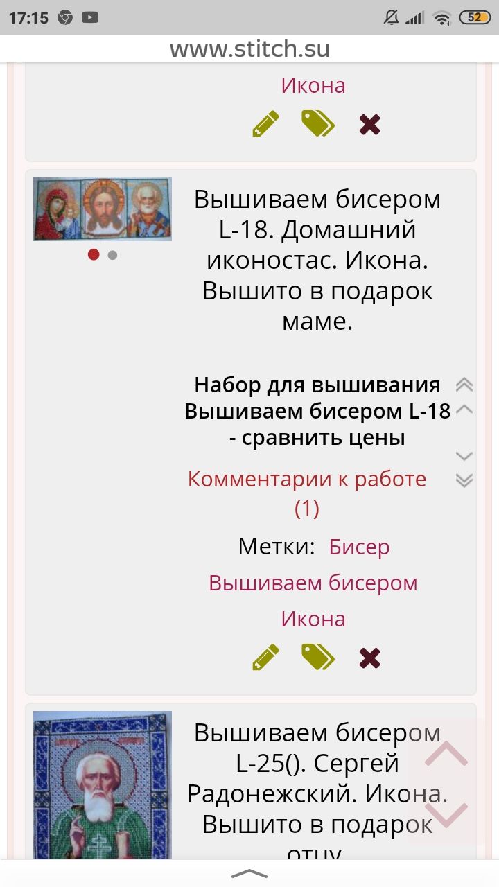 18 января 2020 4 минуты назад, flandria сказал(а): Доброго времени! У меня в галерее вышитых задублился иконостас - как вышивка и в оформлении. Под вышивкой есть комментарии, под оформлением - там лайки . Вопрос всё это можно соединить в одну запись? Спасибо Добрый день. Нет не возможно! И процесс не задублился. Вы же сами выложили его сперва неоформленным, потом оформленным. flandria сказал(а) спасибо Поделиться сообщением Ссылка на сообщение