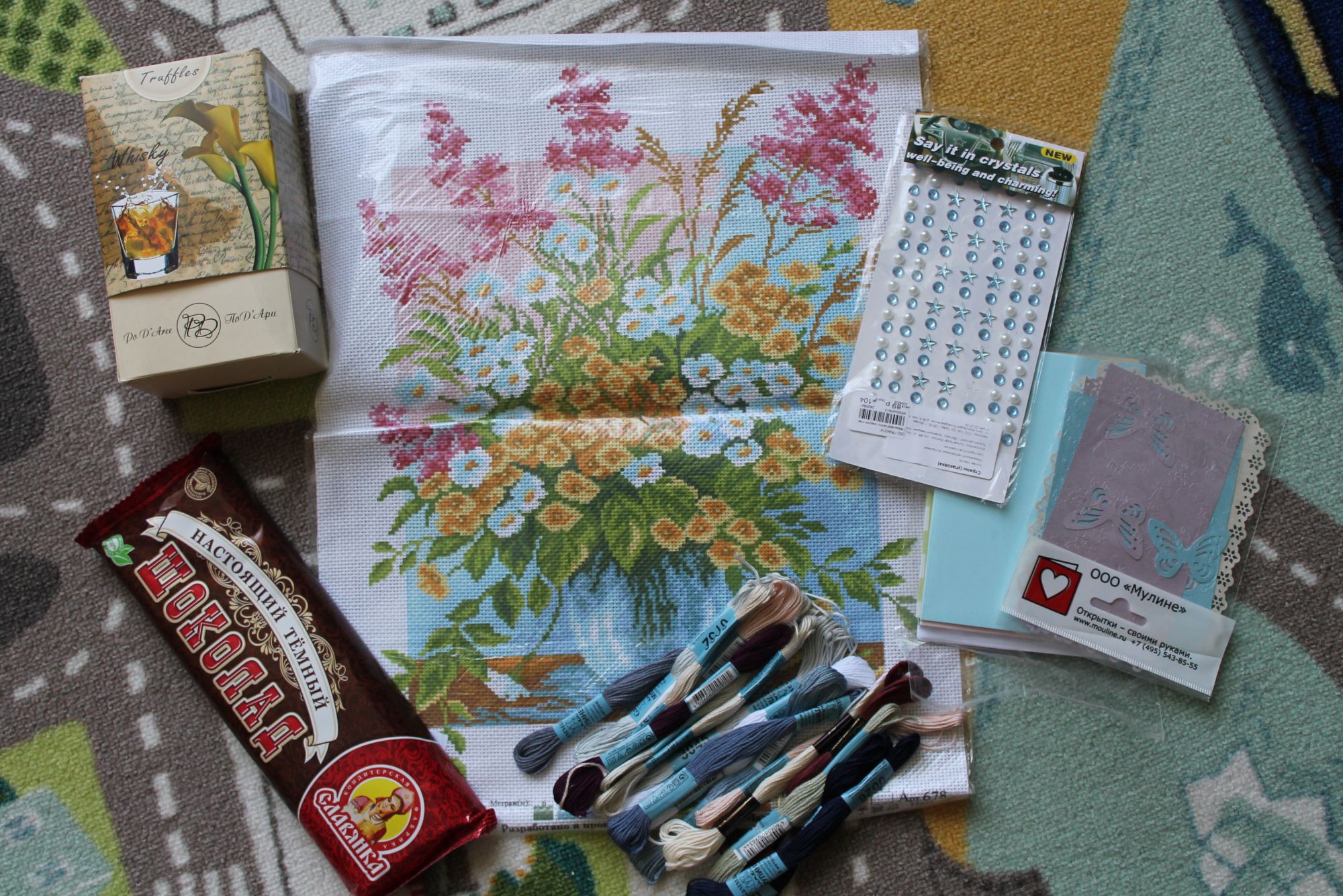 12 мая 2016 Девочки, до меня доехал сундук номер 6. Итак отчет. Вес этого сокровища 5 300. Очень много всяких наборчиков, журнальчиков и всякой интересной всячины. общий вид сокровища . Себе взяла естественно вкусняшки огромную шоколадку и конфеты. Из рукодельных сокровищ заготовки для открыток от masha-vyshivasha, мулине, и канву для вышивания с обалденными цветочками от fedor-63. Девочки, огромное спасибо!. А вот что добавилось от меня . Жду следующий адресок и смогу передать уже в эти выходные. tessykat, nogres, Ирино4ка и 23 других сказали спасибо Поделиться сообщением Ссылка на сообщение