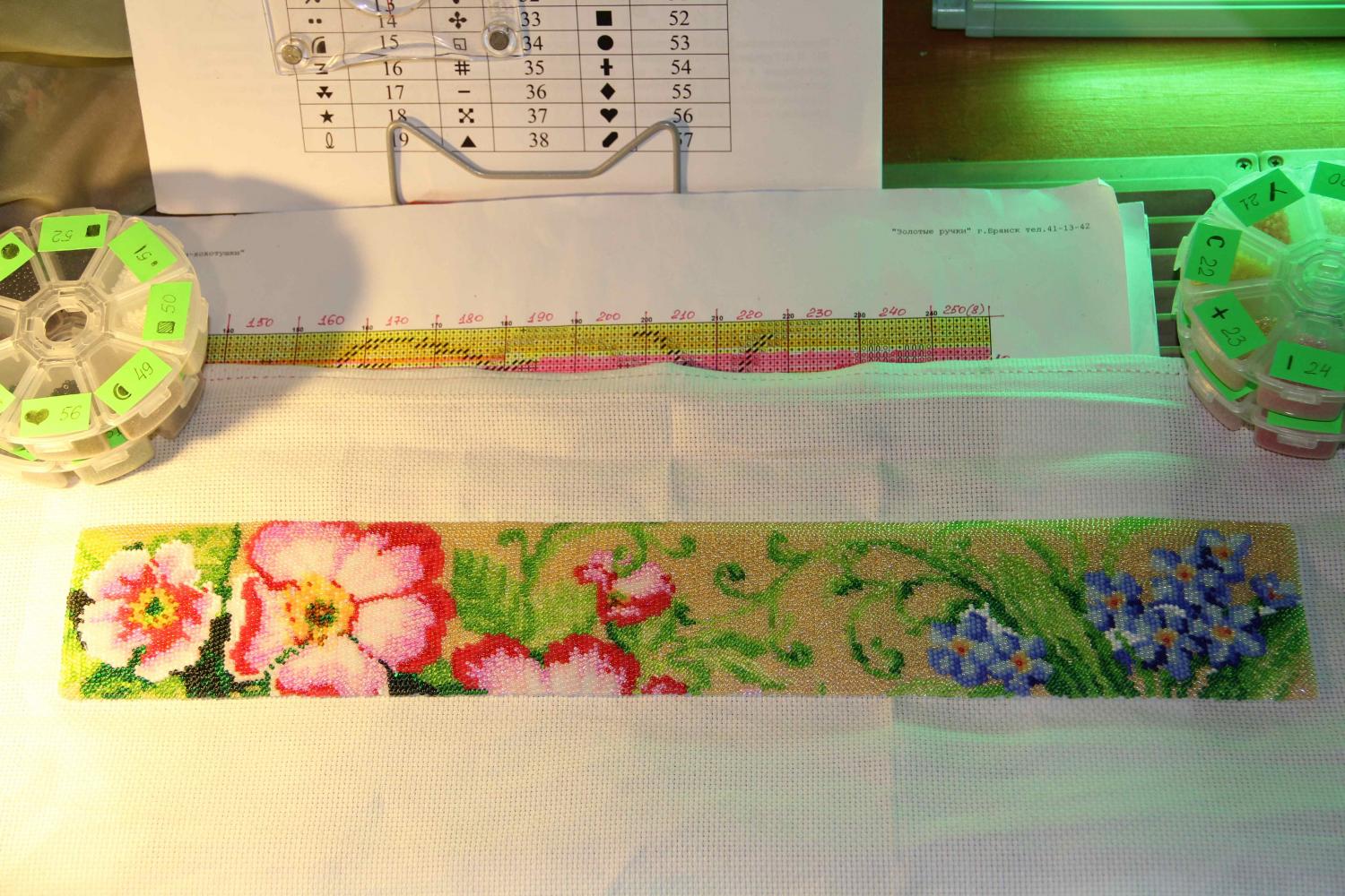 29 октября 2013 Svetles, схему я не разукрасила , просто вычеркиваю уже отшитые рядочки разноцветными маркерами, а подставка для книг действительно удобная штука я ее использую для легенды к вышивке , а сама схема лежит на столе. Лупой я не пользуюсь вообще,мне не удобно, хотя и купила. Зато очень удобна в работе (лично для меня) металлическая линейка, я ее купила в строительном магазине за 50 рэ и там же знакомый продавец оторвал мне от ленты для этикет-пистолета этикеток, которые я и наклеила на контейнеры для бисера. Кстати контейнеры для бисера ввиде ромашки (всего за 56 рэ) очень удобные оказались и покупала я их вместе работой в интернет-магазине Чудесный крестик, а цены там на Золотые ручки ну просто замечательные и доставка была бесплатной Tаnya сказал(а) спасибо Поделиться сообщением Ссылка на сообщение