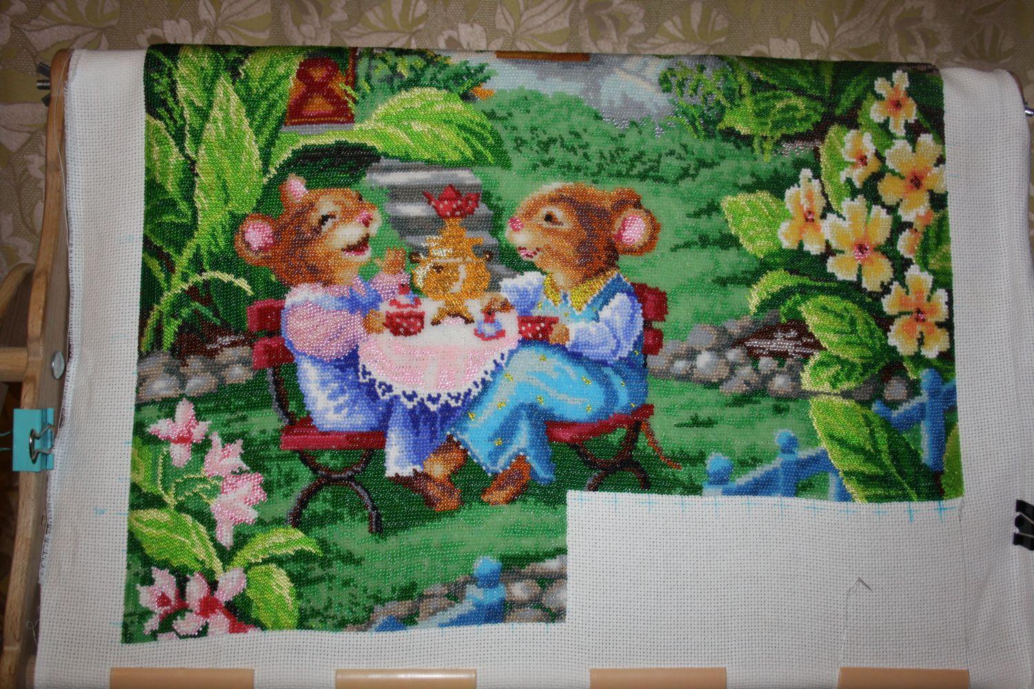 17 февраля 2015 Я медленно вышиваю (не столько медленно, сколько мало времени на это выделяю), в день 2-3 ряда по 250 бисерин получается (полтора - два часа). У меня помощник главный как раз в том возрасте, когда на минуту расслабиться нельзя Мышей покажу! Последний рывок остался... Хюндайчик, Annadalm, uea_2002 и 11 других сказали спасибо Поделиться сообщением Ссылка на сообщение