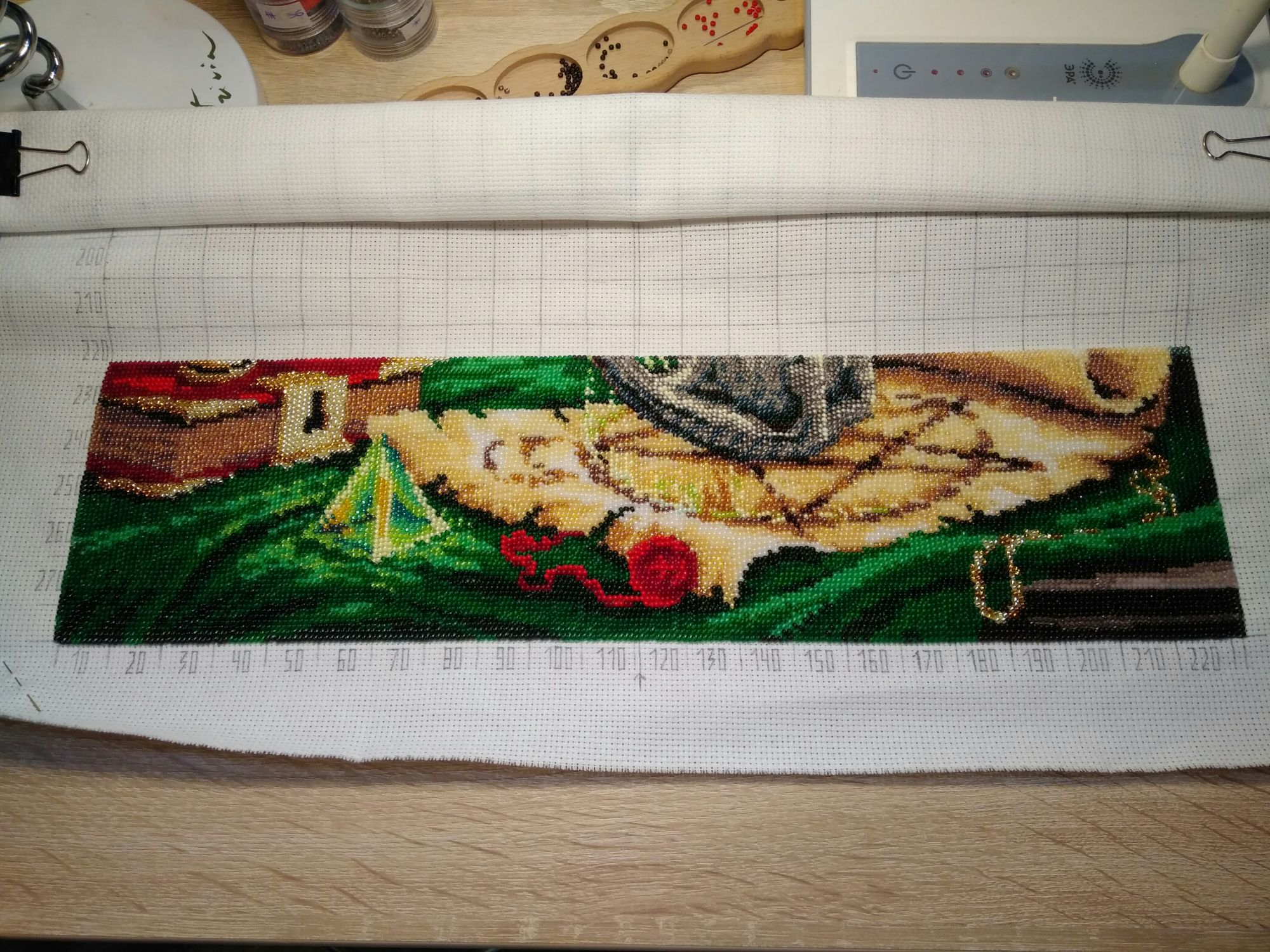 28 ноября 2017 5 часов назад, AndreevaJane сказал: Надя, расчерчивать очень сильнл рекомендую самоисчещающим маркером (тут уже девочки писали о том, что квадраты потом просвечивают) Я все же черчу по мере надобности и только вертикальные всю канву разом разметила нитками (так как не было маркера) но теперь это лишнее) горизонтальные сами собой отпали за не надобностью. Я их больше не черчу. Касательно времени, очень огромное значение имеет организация процесса, на сколько удобно вы сделаете себе органайзер для бисера, важна нить (!) Т.к. если она путается, крутится, то это лишняя возня по ее укрощению и потеря времени. Для меня важным еще является и зачеркивание отшитого, обязательна линейка, потому как перескакивала папу раз не на тот участок, распарывала и перешивала заново. За 1.5 месяца я отшила 65 рядов на 222 клеточки. Всего рядов 250. Конечно это медленно, но шью не каждый день и не по могу. Удовольствие огромное, дизайн здесь проработан замечательно, если случайно пришить не ту бусинку, ее сразу видно, так как у каждой свое место)) Успехов вам с котярой! Да с ниткой вы правы,те нитки что я купила Guttermann 100%poliester мне не понравились,видела, пишут что они не путаются,но у меня они путаются и закручиваются просто жуть как минут по 15 в ряду трачу на их раскручивание и распутывание. Попробую поискать другие. Я протестировала на маленькой вышивке разметку карандашом,у меня ничего не просвечивало,хотя там светлые цвета использовались тоже,а вот с исчезающими маркерами я большое не дружу,в один прекрасный момент он у меня не исчез,правда на вышивке нитками,работа была испорчена. Поделиться сообщением Ссылка на сообщение