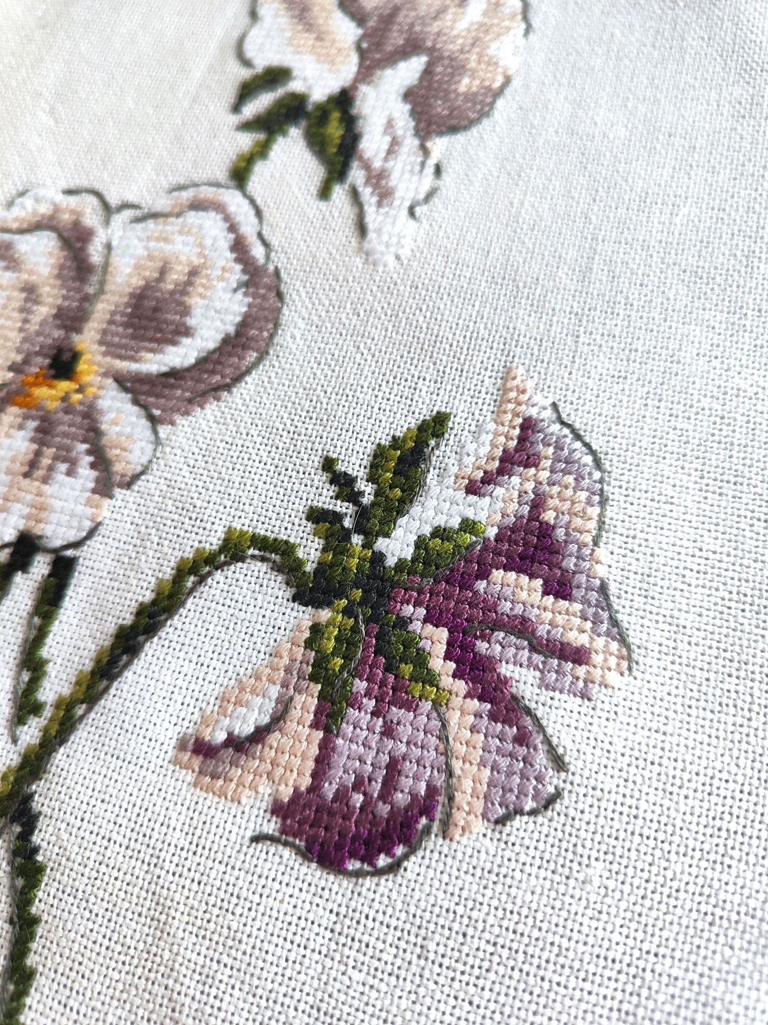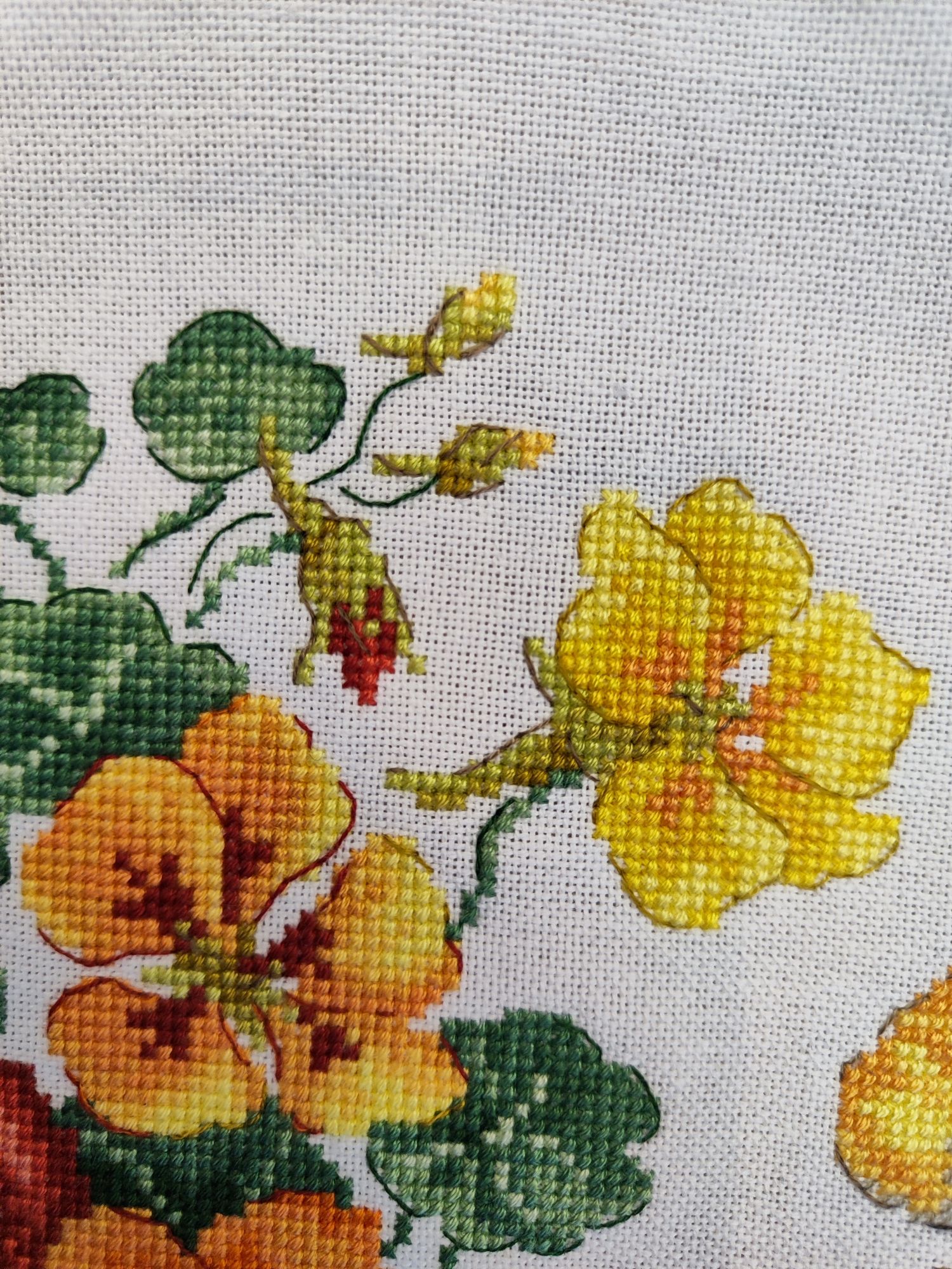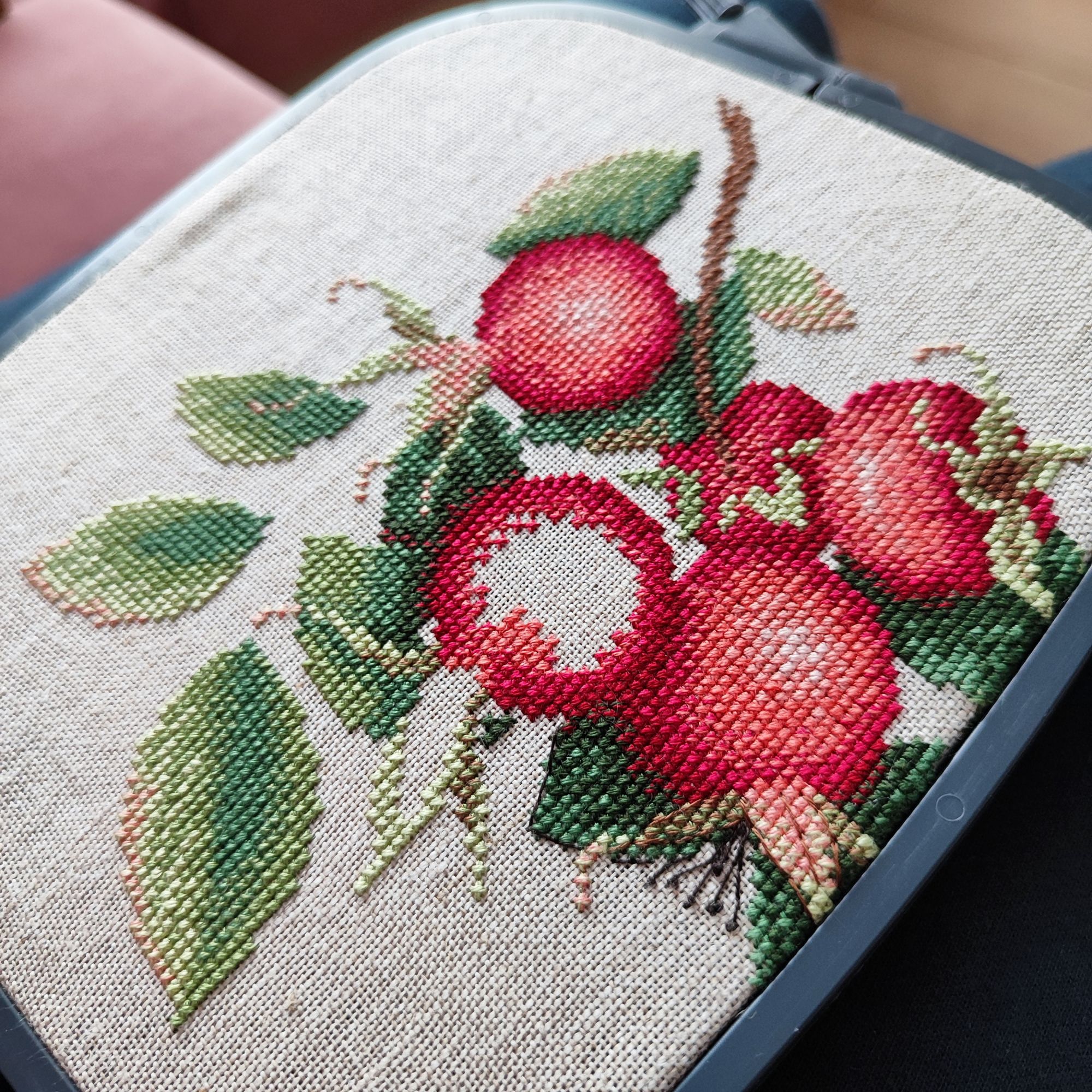 6 ноября 2023 Всем заглянувшим большой привет! На фоне праздника крестики просто летели, сплошные зелёные гайки И самое главное - зеленю две многолетние гайки!!! С них и начну. DFEA Etude de Botanique Collection, Pansy вышила я её ещё в 2019 году! Но потеряла... И вот повисла красная гайка. А оказалось, я вышивку маме на оформление привезла и забыла. Каникулы в Италии, По схеме Павлович Ксении Я когда-то сильно погорячилась с этой миниатюрой, и канву покрасила просто кошмарно... Вот для напоминания: Скрытый текст Но в преддверии праздника решила начать заново и вот она - зелёная гаечка. Как же спокойно на душе теперь, ни одной старой гайки. Никуда ее пускать не планирую, пусть лежит. Не самый любимый процесс... Etude aux capucines, Настурция, Veronique Enginger Один из последних дизайнов ботаники, но сепии тут так мало... Раньше в старых дизайнах было пол работы в одну нить, а тут как-то очень мультяшно и сверх ярко. А может, я просто ворчу на фоне осеннего дождя. Дары природы. Шиповник. - М.П.Студия Впервые купила набор, не имея на руках электронной схемы для Саги. Это стало для меня просто мукой: как отмечать крестики?? Сначала я закрашивала ручкой, но тогда замазался бэк, да и проверку не сделать. Тогда я взяла маркер и бэк стал снова целой загадкой "что за цвет". В итоге я перенабрала всю схему в сагу и выдохнула. Шиповник был сплошное удовольствие, такие ягодки, ммм, а вот вот голубика уже сложнее шла) Тем более, что перенабор - это как будто уже вышила дизайн. Я поменяла родную канву на 32 лен Белфаст, ниток хватило с небольшим запасом. ВСЕ, НИКАКИХ ЦВЕТОВ И ЗЕЛЕНИ. ЗАВЯЗАЛА. Хочу наконец-то уйти от растительности, но не могу Дары природы. Голубика. - М.П.Студия Ещё одна условная галочка - мама доделала подушку, это уже на этапе фотографии в последний день конкурса мы поняли, что канта не хватает, совсем не видно белую часть вышивки, и подушка никак не хочет фотографироваться, потому что она огромная) Это тот случай, когда в жизни лучше ... А потом я ещё узнала, как растет инжир, и вообще в шоке осталась: он хищник!.. Это как?? Наверно, я больше не буду есть инжир И ещё мама сшила ключницы из моих маячков, и как раз к конкурсу! Долго ждали японские ткани для них, думала не успеем. И ткани: Из невышивального, у Майка все замечательно, спасибо огромное всем всем за поддержку!!! Это было самое тяжёлое время, и самая тяжёлая болезнь, мы его чуть не потеряли. Всем хорошей недели и удачи в конкурсе Marusya1978, vasilisa-1977, olnikva и 20 других сказали спасибо Поделиться сообщением Ссылка на сообщение