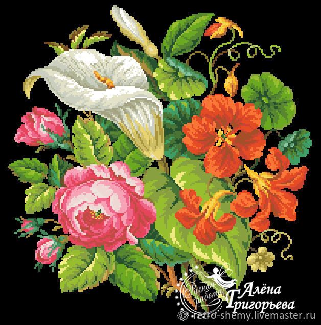 24 января 2018 "Букет с каллой и настурциями" Размер 198 х 200 крестиков, 41 цвет "Весениий букет" Размер 159 х 162 крестика, 36 цветов Дичок, BlueeYeS, чеба и 2 других сказали спасибо Поделиться сообщением Ссылка на сообщение