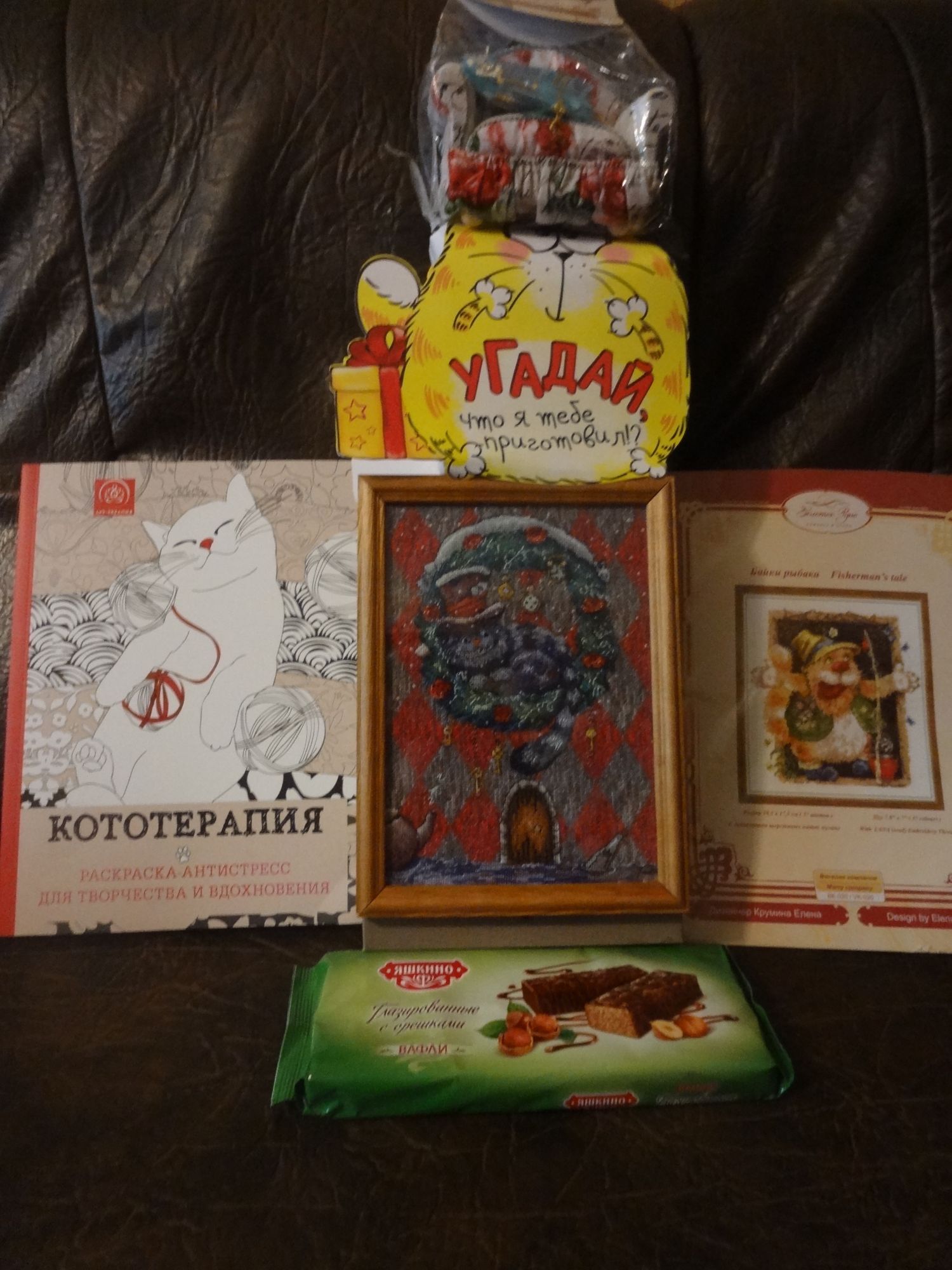 26 мая 2016 Дорогие друзья, получила сюрприз от Алены из города Волжский! Сплошной позитив и истинная кототерапия! Алена, вся семья очень тебе благодарна! Начну по порядку, сначала вытащила роскошный набор от ЗР "Байки рыбака", очень понравилось, там нитки и шерстяные, и мулине, сюжет очень юморной. Еще книга-раскраска, созданная французскими авторами, называется "Кототерапия. Раскраска антистресс". В конце книги комментарии французов, придумывавших эту книгу. Сладости - вафли в шоколаде и конфеты в пакете "Котэ", уже попробовали, вкуснота! Мне как-то сейчас вообще хочется сладкого, так что долго у нас не задержатся:) Еще в пакете был магнитик с городом Волжский, уже занял свое почетное место на холодильнике, магнитики очень люблю:) Дополнение к вышивальной части - винтажный диван-игольница и ножнички с котиком, еще не распаковала полностью, завтра откроем вместе с мамой, она придет полюбоваться. Обе вещи очень нужные. И вышивальная часть: ключница с котом! Сфотографировала и вид внутри, очень изящный ключик прилагался. Очень милый котик, а под ним вышита дверь и висят ключи, ключи... И письмо, конечно, с теплыми и добрыми словами:) Алена, спасибо огромное! Очень душевный сюрприз, очень милый и добрый! Особенно тронуло внимание к моей любви к французскому языку. Спасибо за положительные эмоции, заботу, душевность! Мы все очень рады!!! Прикрепляю фото: magik, Meri Poppins, bridgit и 27 других сказали спасибо Поделиться сообщением Ссылка на сообщение