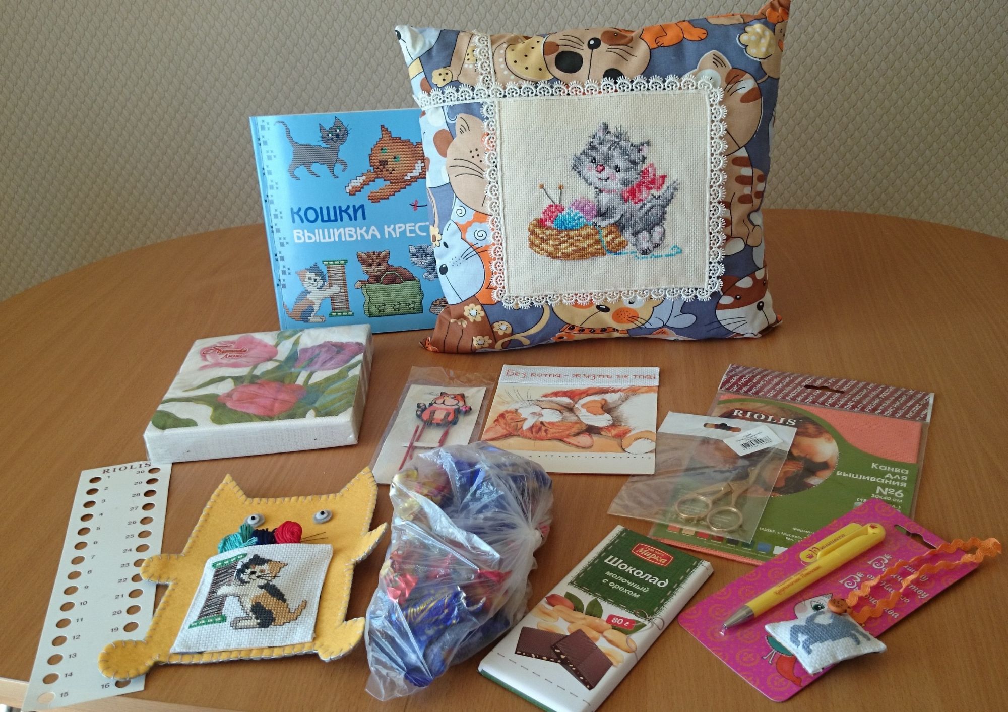 29 мая 2016 Добрый день! Выкладываю фотоотчет по полученном Сюрпризе из Уфы от belyasik Яны. Чудесная вышитая подушка (вся в кошечках) - и вышивка, и ткань, из которой сшита. Симпатичный рукодельный органайзер для хранения мулине ( с самими мулине) в виде котика и с вышивкой-котиком. Очень понравилась книжка с схемами вышивки кошек - уже придумала, куда использовать. Никогда такую не видела. Открытка с рыжим котиком "без кота жизнь не та" очень подняла настроение, тоже хочется также беззаботно валяться! Сшитую игольницу (тоже с кошечкой) уже положила с свою коробку для хранения аксессуаров для рукоделия. Очень много в Сюрпризе было вещей, который я указала в своем профиле как "хочушки". Большое спасибо, Яна, за ножницы-цапельки, органайзер для ниток и канву для вышивания. Количество сладкого из Сюрприза медленно, но неуклонно уменьшается к понедельнику совсем исчезнет! Королевская кошачья ручка и кошачья скрепка будут отнесены на работу (есть у меня очень большой годовой отчет, так что такой большой размер скрепки как раз для такого объемного отчета! теперь больше не нужно будет бегать по службе и искать что-то такое) Яна, спасибо большое за такие подарки, видно что все подбиралось и делалось с душой! irisheckin, magik, Любушка1985 и 25 других сказали спасибо Поделиться сообщением Ссылка на сообщение