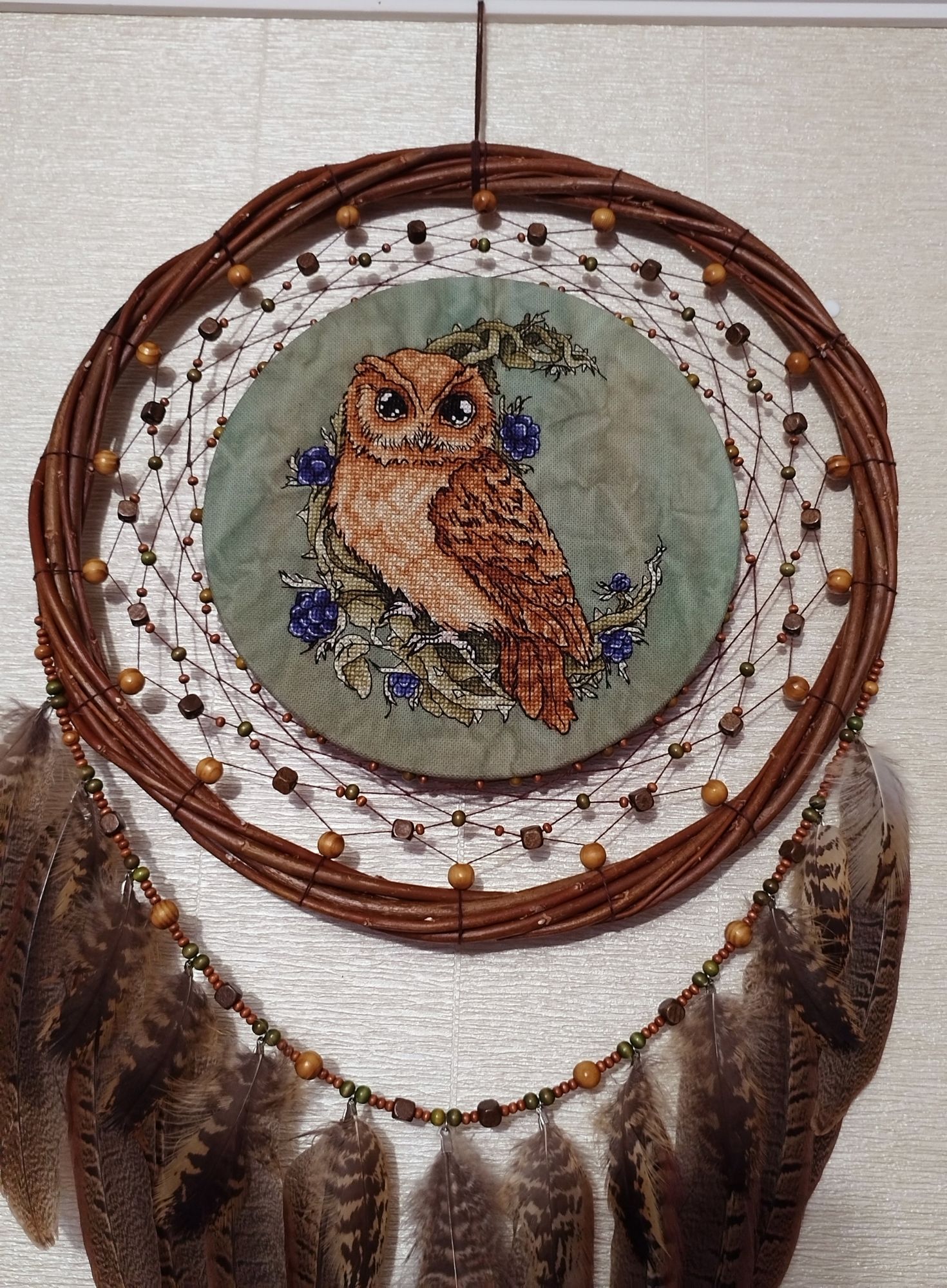 29 ноября 2022 2 часа назад, lamina-65 сказал(а): Ириша, венок интересный. Спасибо!)) За то на больших участках скорость развиваю хорошую) 2 часа назад, lamina-65 сказал(а): Котоелка получилась замечательная. Ну вот, у вас и появилось праздничное настроение. Спасибо)) Правда она ещё в багетной мастерской. А так это подарок на День Рождения) Одариваемый сам захотел этих котов Моё дело малое, вышить, оформить и подарить)) 2 часа назад, lamina-65 сказал(а): А сова это ловец снов? Называется ловцом снов, но в принципе для функции "амулета" он должен выглядит иначе. Так что по большей части это красивое панно в круглой раме с перьями) То что я и хотела)) lamina-65 и Аринесса сказали спасибо Поделиться сообщением Ссылка на сообщение
