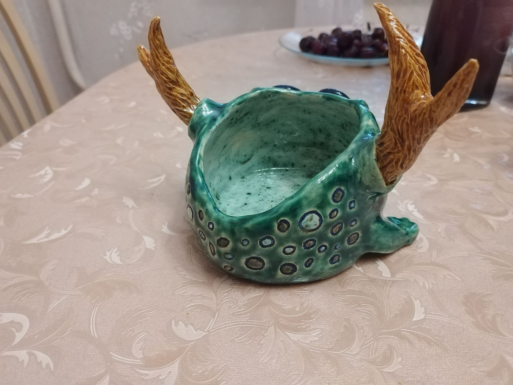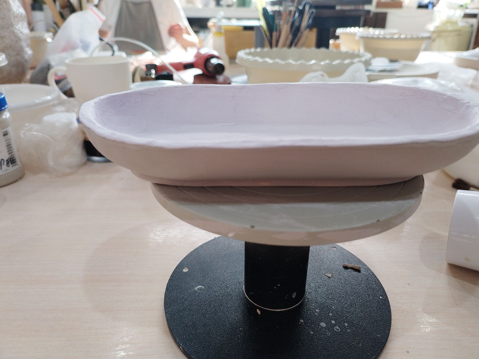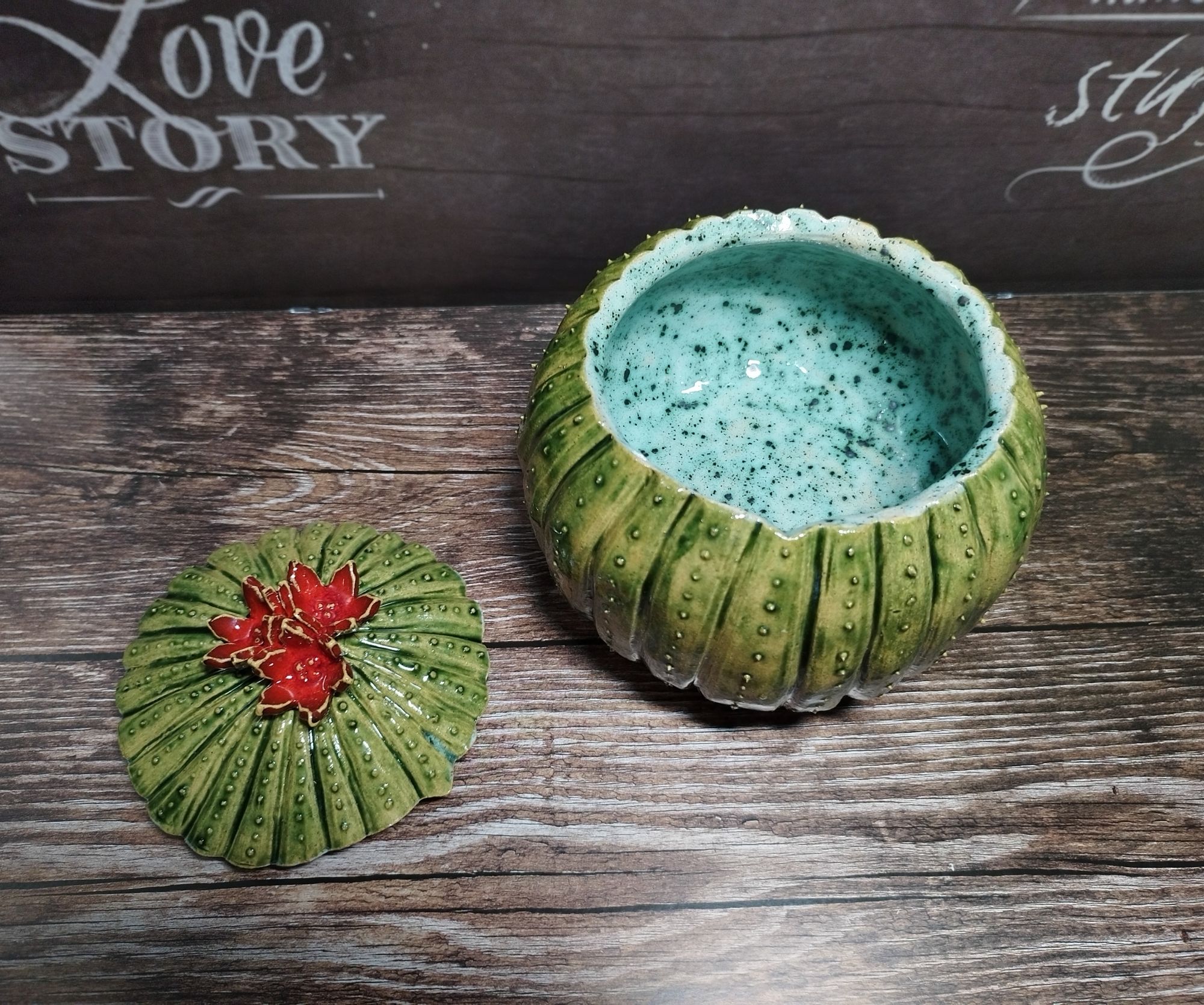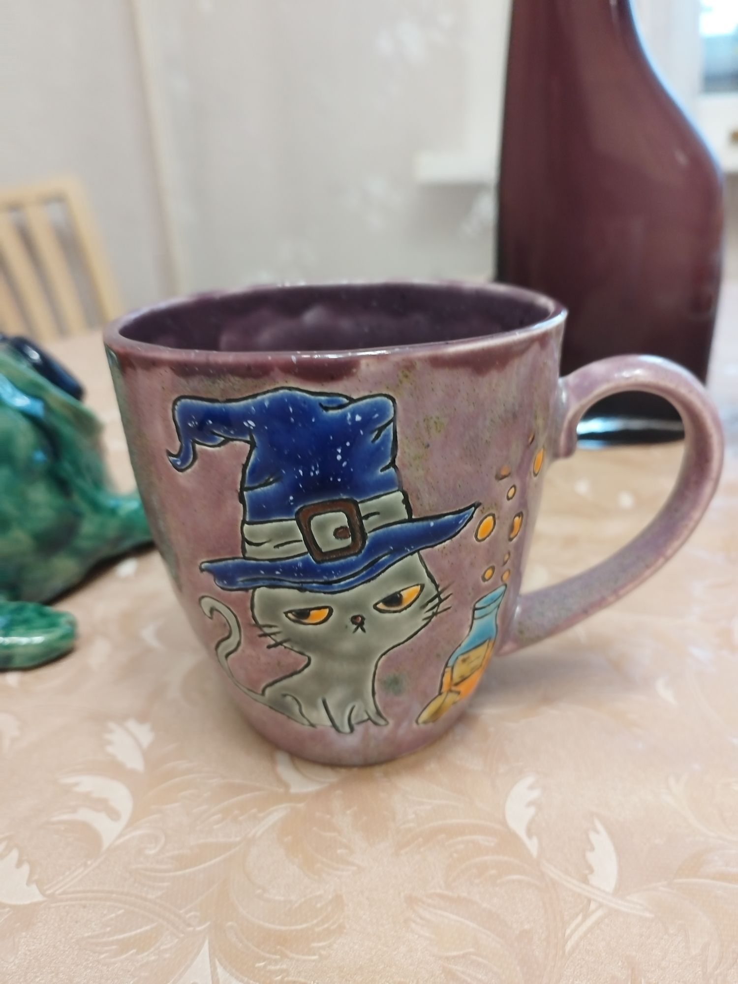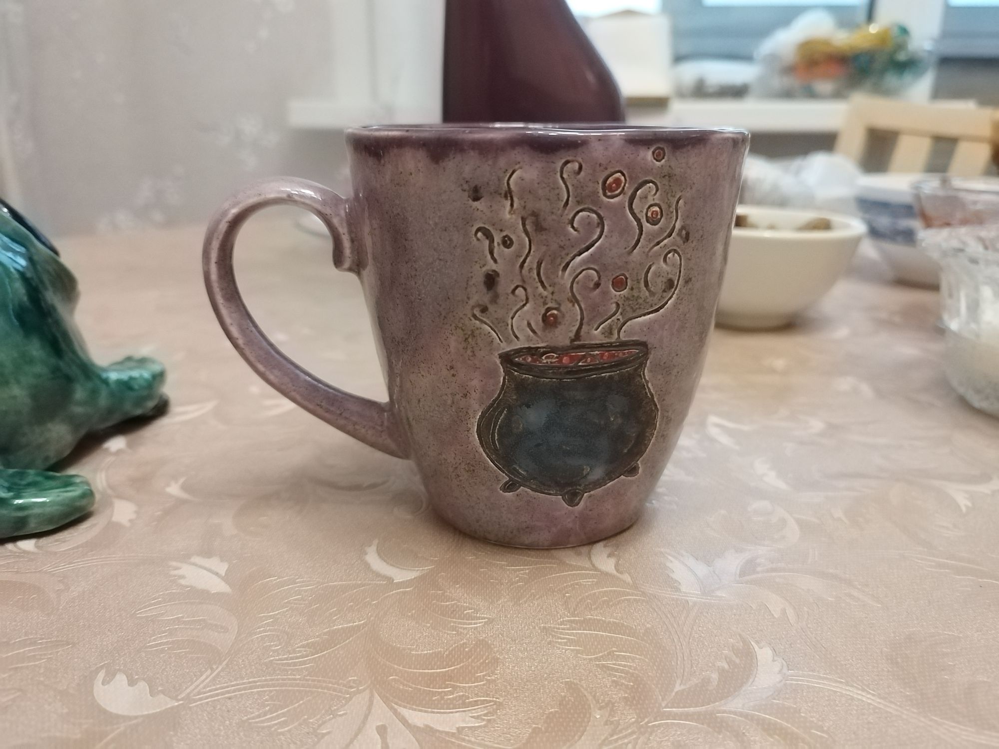 20 июня 2023 Всем привет! Спустя энное количество времени продолжаю рассказ про своё обучение) После обжига появилось несколько трещинок, но для обучения это всё равно в плюс, так как научилась их заделывать. Оказалось всё гораздо легче, чем я думала. А после покрытия глазури их совершенно не видно. Но в целом все изделия всё хорошо пережили, прилично усели и наступил момент глазурования)) Вот они, обожженные, ждут финишного покрытия)) На словах "можете выбирать один день" (подчёркиваю ОДИН), мы посмеялись и выбрали ДВА дня. Изделий прилично, некоторые достаточно сложные, опыта нет, в сутках время ограниченно ... В общем 11 и 12 июня я с утра и до ночи заделывали трещинки, выравнивали, а потом глазуровала изделия... В первый день сначала мы изучали покрытие белой и прозрачной глазури максимально быстрым способом, залить, прокрутить и вылить. Но по ходу я недолевша, упорно крутила в другую сторону из-за чего образовались небольшие проплешинки. Будь глазурь более видна на изделии, то можно было бы подкрасить кисточкой, но увы, что имеем)) Далее покрывали изделия уже кисточками. После адского нанесения кисточкой прозрачной и белой глазури, все остальные показались просто раем) Она застывала толстой каплей, не тянулась, бугрилась... ррр... Правда в готовом изделии всё прилично выглядит До первого итогового обжига совершенно не было понимания по толщине глазурного слоя. Моя логика, пигмент яркий, всё изделие покрыл - значит всё ок! А по факту надо 2-3 таких слоя... до обжига посл обжига в глазури до обжига итог На второй день делала свою жабочку и чашку с котом. Лёгких путей я ни когда по ходу не искала. Да и нужно же попробовать разные техники, инструменты, материалы, что бы понимать, что мне нужно, что нравится. В итоге это привело к тому, что с превеликим удовольствием процарапывала кота и пар от котелка, выбрав достаточно сложный, многоэлементный рисунок. И как же я запарилась всё это глазуровать в итоге Не, ну кто же мог подумать, что сначала все линии нужно обвести, что на подглазурную краску отлично затекает глазурь и всё надо по новой счищать и обводить, что есть резерв, но его нужно ооочень аккуратно наносить, тк он не стирается. Правда резервом мне работать понравилось гораздо больше, а линии и так старалась аккуратно наносить. В процессе работы думала, ну почему же я не могла выбрать рисунок попроще, с 2-3 цветами, например как на наклейке приведение с сердечком... За день не успела доделать, приходила ещё 13-го после работы. Работы заглазуровала и оставила на обжиг. В пятницу пришло сообщение с фото и видео работ Чашка с котом получилась плоховато, да и жабку тонко покрыла... В итоге в субботу приезжала на повторное покрытие. На удивление, наносить было гораздо удобней, чем по утилю. Так что в итоге потратила 3,5 дня на это всё. Жду теперь фотографий итоговых, любопытно же!))) А вот что уже готово)) Не всё вышло идеально, есть недочёты, мой перфекционизм, эффект "ожидание-реальность", мало опыта, ограниченный выбор глазури. Но в любом случае это бесценный опыт и старт для дальнейшего развития. Когда начала дома делать первое самостоятельное изделие, пришло ещё больше понимания по инструментам. Без чего могу обойтись, а что мне необходимо. Появились вопросы, которые не возникали на курсе. Вот зарождается моя первая самостоятельная работа)) Маленький, увесистый)) bersit