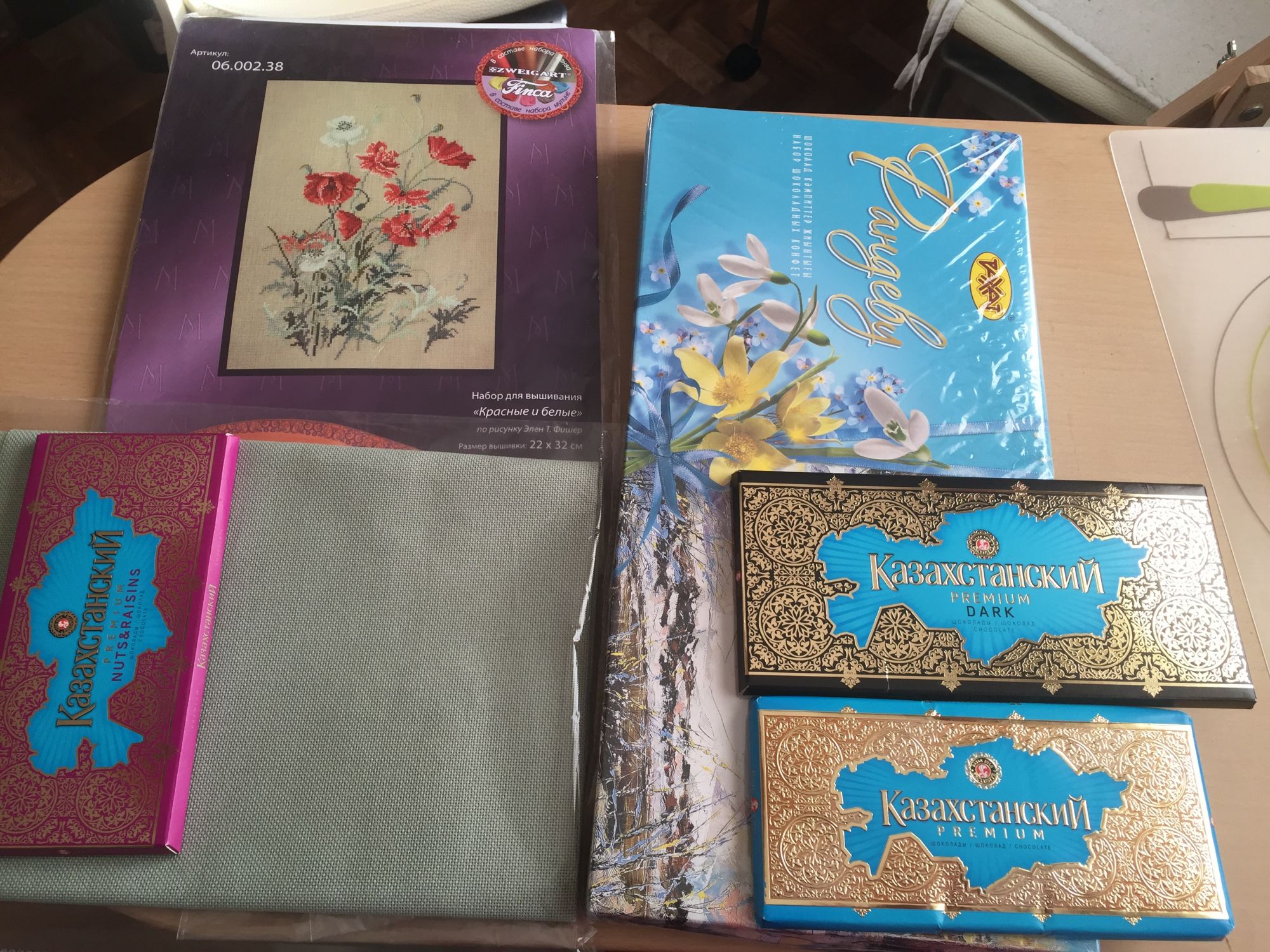 23 апреля 2016 Ну-с! Пришла пора и мне отчитаться о последних конфетках моих)) их у меня оказалось аж три!! первая от Саши Gala83! Я как открыла её, так и обомлела, а в голове сразу вспомнилась фраза из "Ирония судьбы или с лёгким паром", когда Ширвиндт в бане сказал: "Ты с умааа сошёл!" На действия по появлению очередной бутылки водки)) в общем, вместе с моим Чаплином и его малышом, мне достался ещё чудеснейший набор от МН брошка! И шоколадка!) спасибо большое, Саша, Еся и Вадик!)) Вторая конфета от Инны Rumba - очень стремительно до меня добрался ангелок и шоколадка! Очень рада этому! Буду теперь планировать его отшив к моим Ангелочкам)) Спасибо! Шить его планирую на равномерке) ну и в заключение, добрались до меня маки из-за "бугра") Казахстана! Моя вторая Родина ведь.. Я когда то там родилась и жила долгое время) в общем, посыль от Ольги Сейко! Во-первых, она меня решила закормить сладким и прислала стооолько шоколада и конфет, что я аж обомлела! А, во-вторых, Олька стала моим феем и прислала мне ещё кусок равномерки самого подходящего цвета для планируемого мною Сова от КК (кстати, найти его в магазинах, мне также помогла именно она!). Ну и маки!!! Там такая основа классная и так руки чешутся все начать сейчас же!!! Лублу тебя!)) Борюсь и бью себя по рукам, чтобы не забросить начатое когда то) lubanka, Galadriel, курочка и 48 других сказали спасибо Поделиться сообщением Ссылка на сообщение