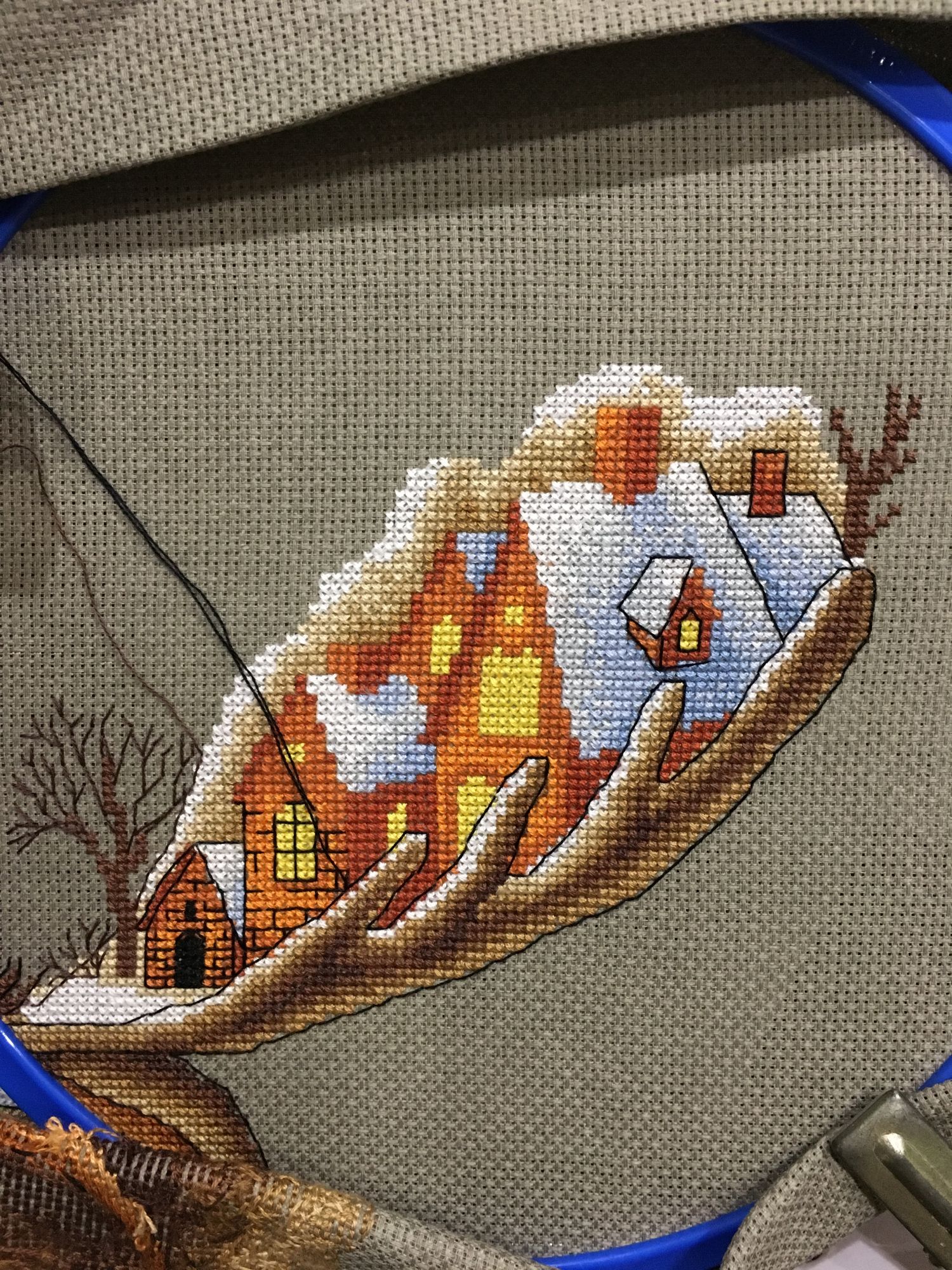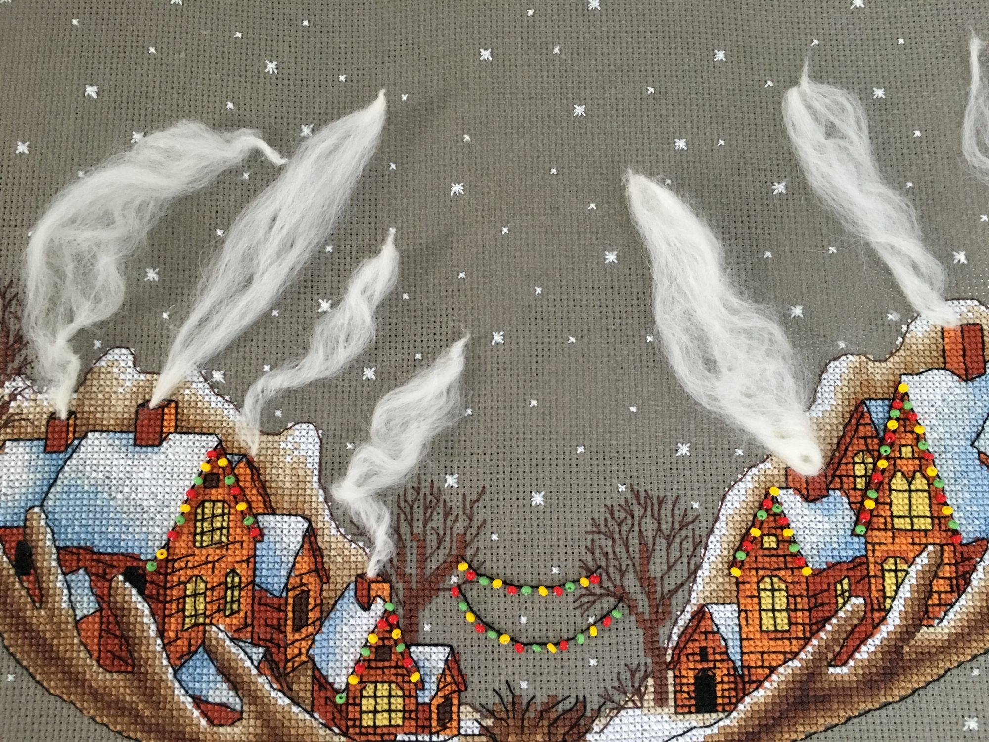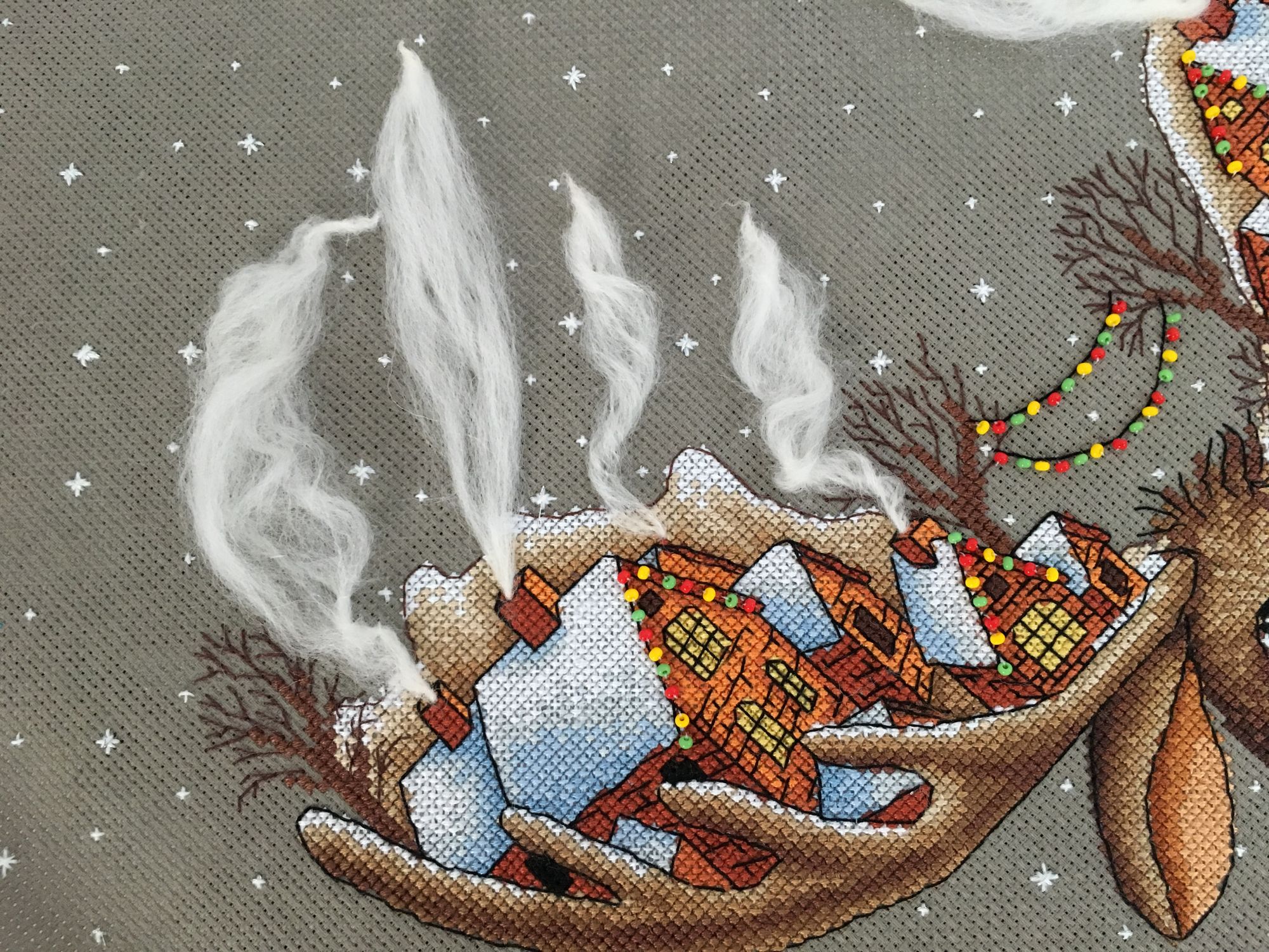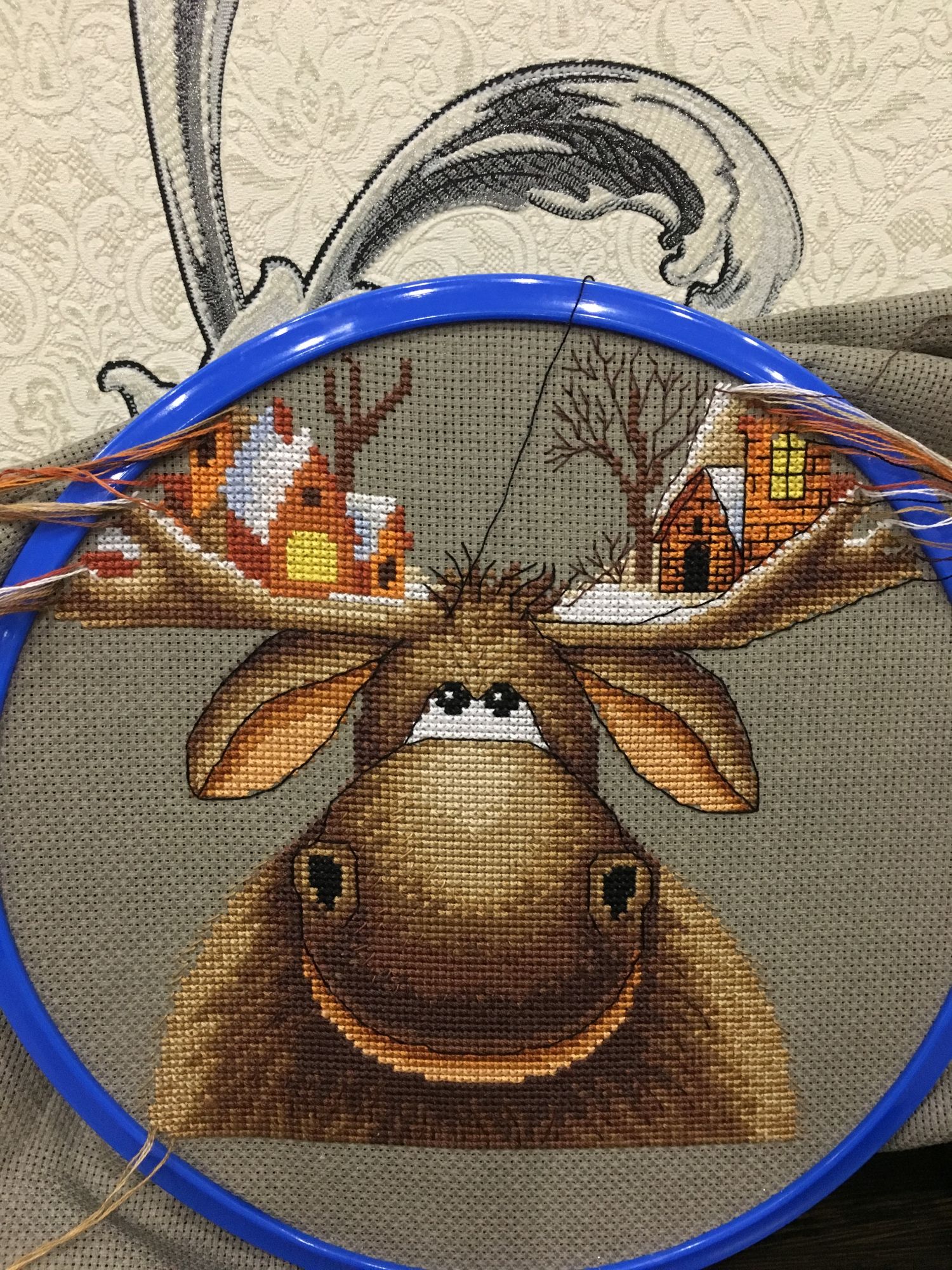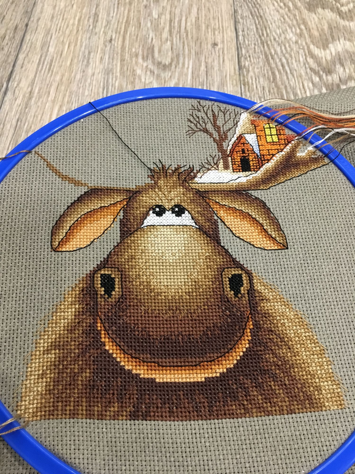 26 марта 2019 Вот и готов мой Рождественский лось, 28х33см,18 цв мулине Гамма хб , аида 16 графит( по моему цвет),3 цв бисера и шерсть,2иголочки,счетный крест-моя любовь любовь Кач во набора хорошее( как и у всех наборов от Панны - мне нравится ,претензий нет! )Только показалось ,что канва тоньше,нитки почему то немного пушились в конце -но это не критично!Осталось ниточек-нормально,бисер тоже остался ,а шерсти -куча )еще на 20 лосей хватит)Вышивала с 23.01.-25.03. Почти каждый день по 2ч примерно.Процесс очень интересный ,даже бэк ( который не люблю) в этой работе за радость был) Дробила его ,по 3 кл максимум стежки -дабы) не провис при стирке ( был такой опыт(( )Бисер и дым начала сначала пришивать по схеме ,потом уже сама примерно на глаз по превью-так легче показалось .И ещё от себя в неск х местах добавила бэк,где его не было по схеме.Захотела чтоб Лосяшка был в снегу)-наляпала снежинок ( кажется переборщила немного) -шерсть Риолис 1нить Серебро металлизированная китай нить( конечно это была жесть)-этот тандем рвался ,пушился-но я это сделала!!!)Вообщем вышивался этот Чудик) на одном дыхании ! До сих пор смотрю и вздыхаю -как я его обожаю! Оформлю позже . maui сказал(а) спасибо Поделиться сообщением Ссылка на сообщение