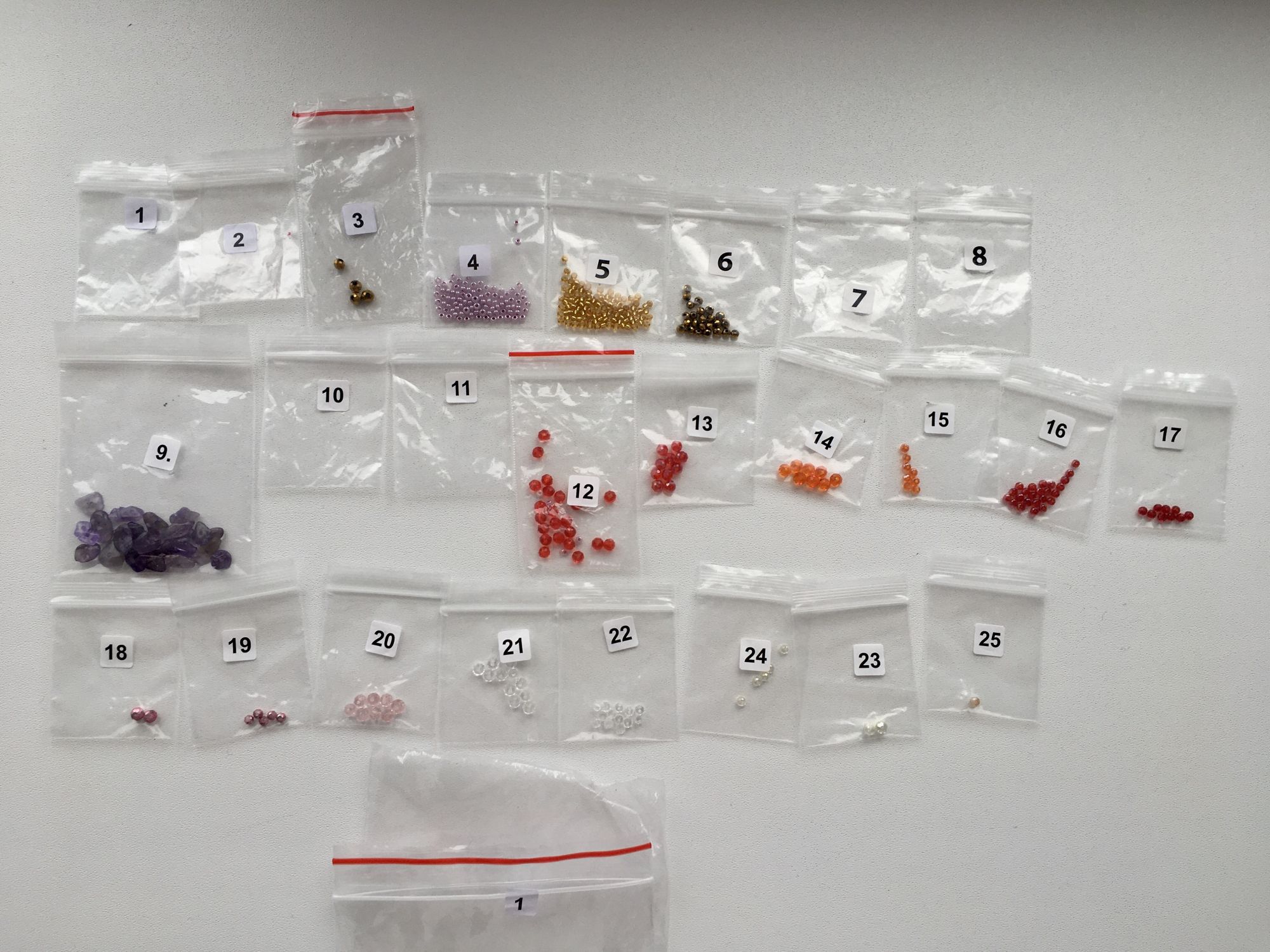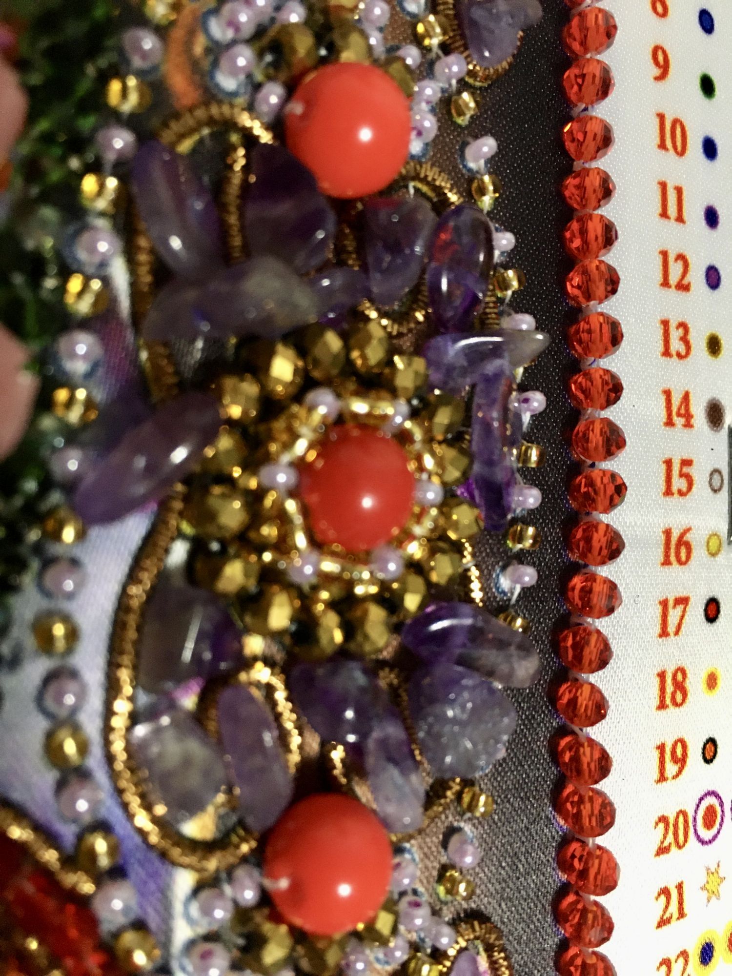 30 января 2021 С пришиванием трунцала тоже проблем не возникало, но бывали такие моменты когда поперечные стежки почему-то не ложились и нить было видно, либо же наоборот как бы он перерезала нить трунцал и получались как бы такие промежутки ,большие крупные бусины вышивала в две нити мелкие все бусины бисер пришивала в одну нить ,также камни неровные вот эти фиолетовые и какие-то железные элементы пришивала мононитью а остальное пришивала ниткой то что входила в комплект ,по остаткам -крупных бусин всех положено без запаса ,а так фото остатков есть в теме Lady_flame_))) сказал(а) спасибо Поделиться сообщением Ссылка на сообщение