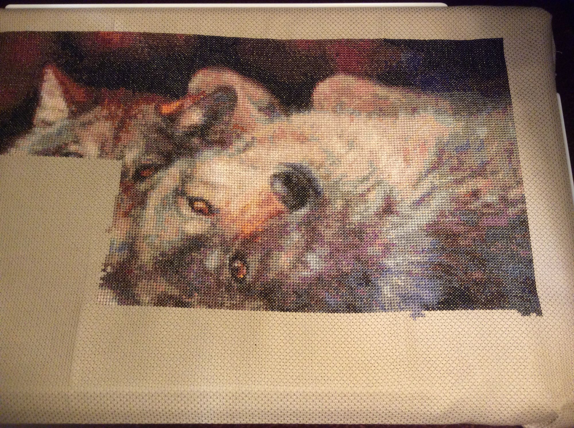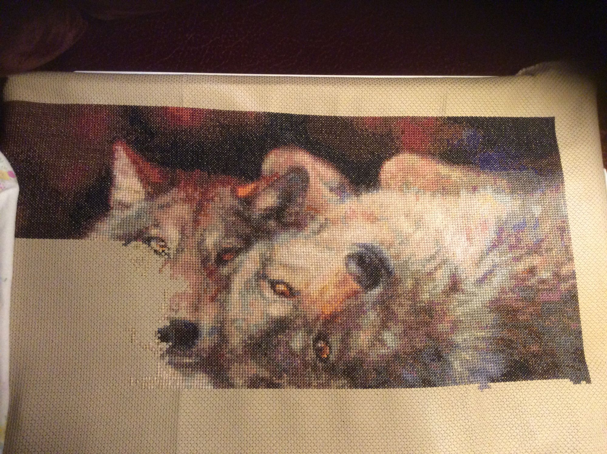 18 апреля 2016 1 час назад, Текил@ сказал: Девочки, всем здравствуйте! Хочу вам представить свой текущий процесс от КК 35027, Emerald Forest. Схемы из всемирной паутины, канва - 14 каунт, как заявлен производителем, цвет - не по фен-шую, а простенький серенький. Ну да ладно. Вот такой он у меня сейчас - одноглазый бандит! 14 не очень люблю, если честно. Рыхловата она на мой взгляд, а я грешу затягиванием крестиков. На ней приходится себя очень сильно контролировать, дабы не наделать дыр. А что там будет? Тигр, который зеленоглазый? Антонина di и Сэйко сказали спасибо Поделиться сообщением Ссылка на сообщение