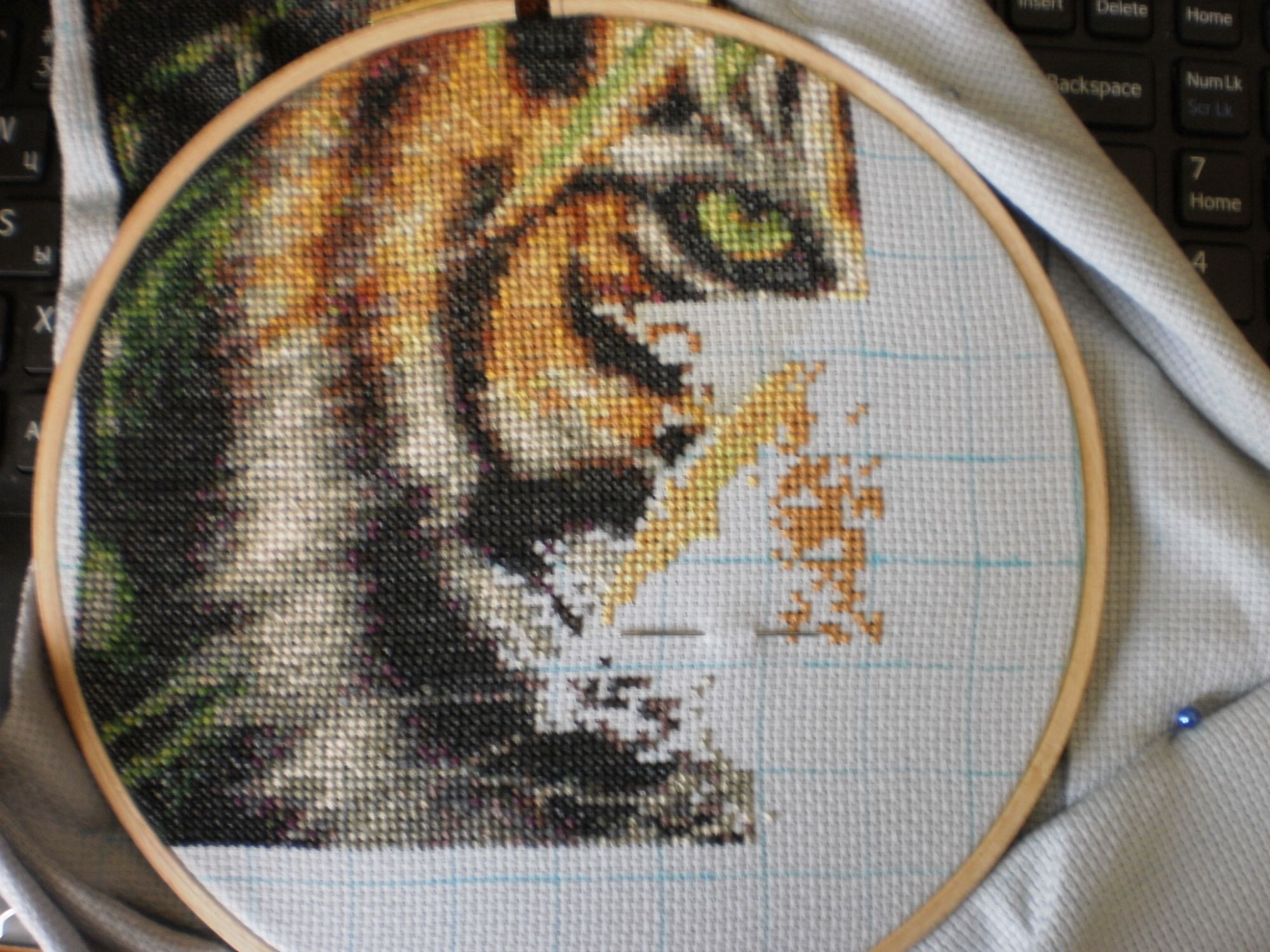 18 апреля 2016 2 часа назад, Текил@ сказал: Девочки, всем здравствуйте! Хочу вам представить свой текущий процесс от КК 35027, Emerald Forest. Схемы из всемирной паутины, канва - 14 каунт, как заявлен производителем, цвет - не по фен-шую, а простенький серенький. Ну да ладно. Вот такой он у меня сейчас - одноглазый бандит! 14 не очень люблю, если честно. Рыхловата она на мой взгляд, а я грешу затягиванием крестиков. На ней приходится себя очень сильно контролировать, дабы не наделать дыр. Красивый тигр должен получиться!! Текил@ и Сэйко сказали спасибо Поделиться сообщением Ссылка на сообщение