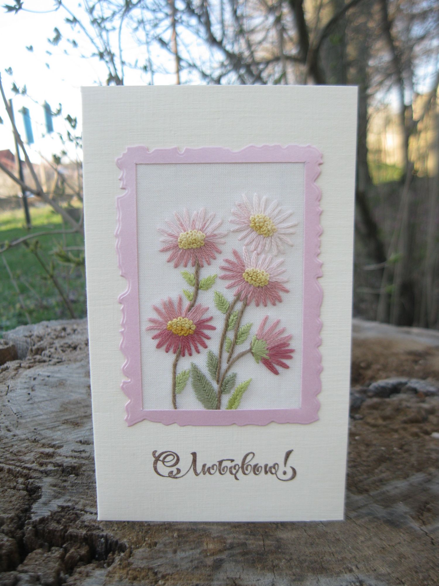 30 апреля 2019 Дорогие девочки, всех с Праздником Пасхи! Вовсю цветут тюльпаны! Сирень. Вишня уже сейчас отцвела, а была такая. И поделюсь своими первыми попытками освоить эмбоссинг (правда, это совсем не вышивка...) Фена пока нет, так что на свой страх и риск пользовалась спичкой. Сделала своим открыточку к Празднику с подвижным элементом (яйцо двигается). И поделюсь такой важной информацией: если нужны штампы с желаемой надписью, то их можно заказать в мастерской Ивана Сказкина https://vk.com/ivan_skazkin_workshop. Может кого-то это заинтересует. И вот, я очень старалась! makalicha1970, Veta, Lenara и 1 другой сказали спасибо Поделиться сообщением Ссылка на сообщение