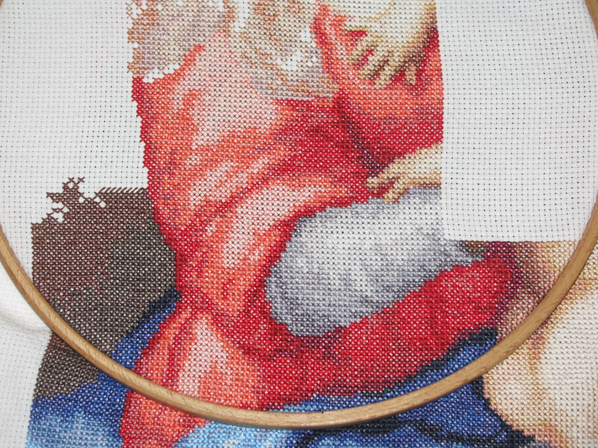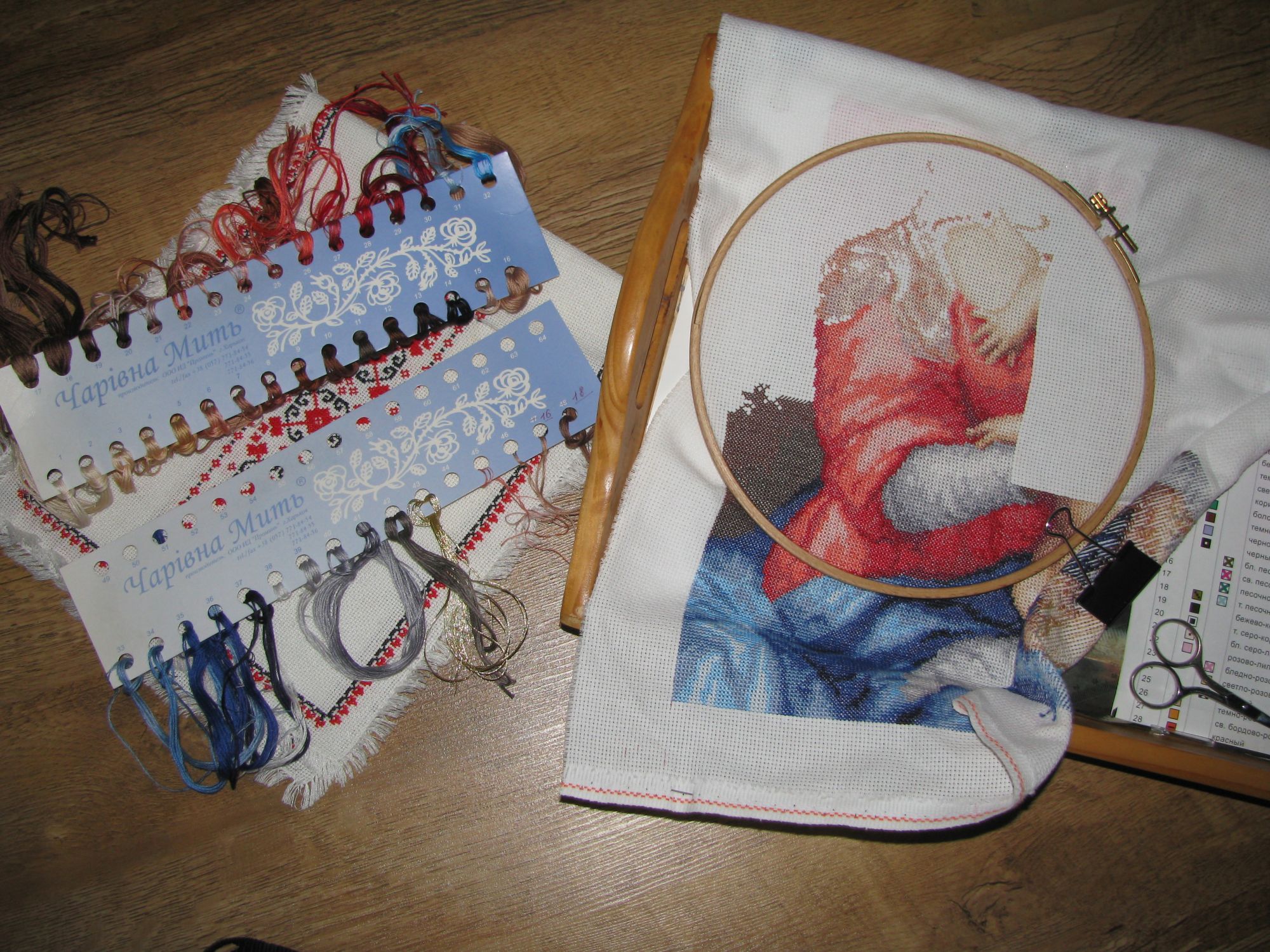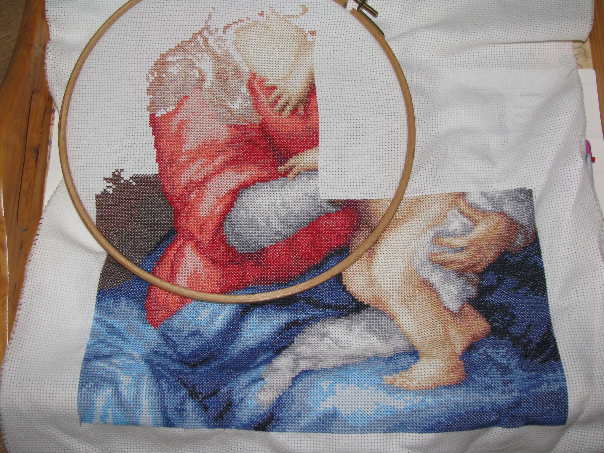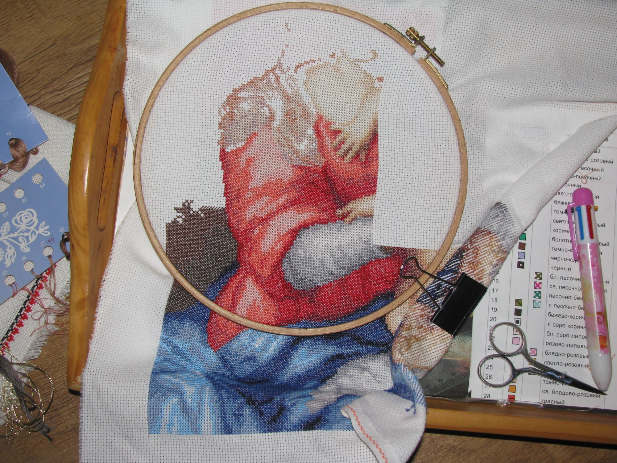 16 сентября 2016 Я сейчас вышиваю набор "Чаривны мить" "Рождение Венеры". Набор большой, поэтому вышивать буду ещё очень-очень долго. Это одна из моих самых любимых картин и найти дизайн крестиком по ней было моей мечтой. Дизайнов на самом деле достаточно, но вот именно этот меня пленил своей проработанностью, красотой и да, размером. Ирина Наниашвили, конечно, сотворила чудо. Схема идеальная, никаких лишних одиночных крестиков. Даже удивительно, как с помощью нескольких цветов и блендов можно передать такой объём, глубину цвета, складки одежды, расступающееся море. Работать с такими однообразными тонами серо-голубыми трудновато, глаза устают от сумрачных цветов, поэтому я и не могу работать только над этой вышивкой, приходиться брать другие "отдыхалочки". Теперь о самом наборе - размер 117*79 указан производителем неверно, там вниз сантиметра 82 точно есть, в ширину пока не знаю. В общем, я поленилась крестиками посчитать длину работы, отмерила рулеткой, отступила 5 см от краёв, и это было зря. Вниз мне канвы не хватило. Пришлось сократить схему крестиков на 5 и придётся пришивать канву внизу и, наверное, сбоку тоже. Значит фирма Чаривна мить оставила для такой большой работы очень мало канвы на отступ, порядка 2,5 - 3 см. Очень жаль. Надеюсь, они одумаются и отрезы канвы в следующих партиях станут больше. Канва, кстати Цвейтгард, не рыхлая, 14-я, хорошая такая канва. Нитки тоже немецкие Мадейра, плотные, работать ими приятно, редко путаются, на краях чуть-чуть пушатся только некоторые цвета, не рвутся. Надеюсь, мне их количества хватит на всю работу. Кстати, нитки разной длины, и когда приходится смешивать их в бленды, это очень неудобно, остаются длинные концы. Бисер чешский, ровный, на первый взгляд никаких дефектов не увидела. К иголкам никаких претензий нет, они идеально подходят для работы. Ещё один момент для меня странный - отсутствие инструкции, как таковой, т.е. начинающей вышивальщице, не знакомой с техникой вышивания крестом, нечего даже браться за эту работу. У меня много наборов, разных фирм, и ни разу не было такого, чтобы инструкция ограничивалась только обозначением значков на схеме и номеров ниток, производители всегда пишут, как закреплять нитку, делать крестики и т.д. Ещё немного о схеме, она глянцевая, цветная, карандашом на ней не почеркаешь, ручки тоже не все пишут, но со временем привыкаешь и к ней. Неудобно то, что когда ты с одного листа схемы переходишь на другой, сам лист постоянно приходится переворачивать и соотносить значки, квадратики и т.д. Вот об этой состыковке листов производители ну вообще не подумали. Переворачиваешь туда-сюда, схему сгибаешь, она изнашивается, да и ошибиться легко, неудобно ужасно. Вот вроде и все впечатления, за результат не сомневаюсь ни сколечки, он будет сногсшибателен, но вот эти мелочи, они, конечно, затрудняют работу порядочно. Надеюсь, кому-нибудь пригодиться мой отзыв. А так у "Чаривны мить" есть много дизайнов, которые мне нравятся и которые я хотела бы вышить. Это и огромный "Натюрморт" на чёрной канве, и дуэт "Влюблённые на качелях" и "Гроза", и забавная "Няня". В общем, выбрать есть из чего. yuss, LudmilaB, Ninnele и 24 других сказали спасибо Поделиться сообщением Ссылка на сообщение