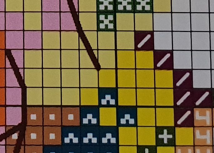 18 января 2019 Из хорошего. Принтованная канва отлично ведет себя при вышивании на пяльцах, нет проблем. Цвета на обложке чуть бледнее реальных, но по теплоте совпадают, ожидания оправдываются. Из проблем. Делать черно-белую ксерокопию бессмысленно. Цветные квадратики без символов различить с моим цветовосприятием невозможно. И вот еще про цветные квадратики без символов Здесь видно два оттенка желтого в квадратиках - при взгляде на обложку все становится понятно. Внимание! Не забывайте, что картинки увеличены! Тогда вот вам еще кусочек схемы Уже интереснее, да? Aleksacha , махно, Vika71 и 13 других сказали спасибо Поделиться сообщением Ссылка на сообщение