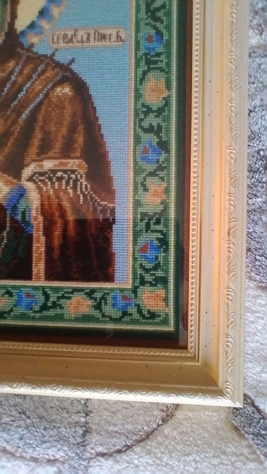 28 февраля 2018 Людмила! Спасибо за добрые слова. С оформлением две проблемы, конечно, денюжка, вернее ее отсутствие, и здоровье, чтобы можно было ехать. Правда мы едем не очень далеко, иногда по Москве больше времени потратишь, чтобы добраться. Насчет иконы, как получится. Дело в том, что возникла одна проблема. В нимбе используется два цвета: основной фон и узор. Так вот, когда зашила фон, то рисунка почти не видно. Размышляю, что делать. Шила нитками по схеме, причем теми, которые прислал производитель. Но увы... Думаю, может вышить нитками потемнее, чем есть, чтобы лучше выделялось. Выпарывать или прошить сверху? Пока никак не решусь. Хотела лики шить в конце, но пока нет решения, пиидется шить лики, а там посмотрим. Посмотрела отшитую работу. Там все нормально. Ничего не понимаю. На следующей неделе встресаемся с нашим батюшкой. Возможно он подскажет решение. А пока сфотографирую эти места, чтобы было понятно, о чем говорю. . Причем наяву рисунок на нимбе на картинке еще четче, а на самой вышивке еще менее выделяется. Может посоветуете что? -Solovey-, BlueeYeS, Ксен40 и 5 других сказали спасибо Поделиться сообщением Ссылка на сообщение